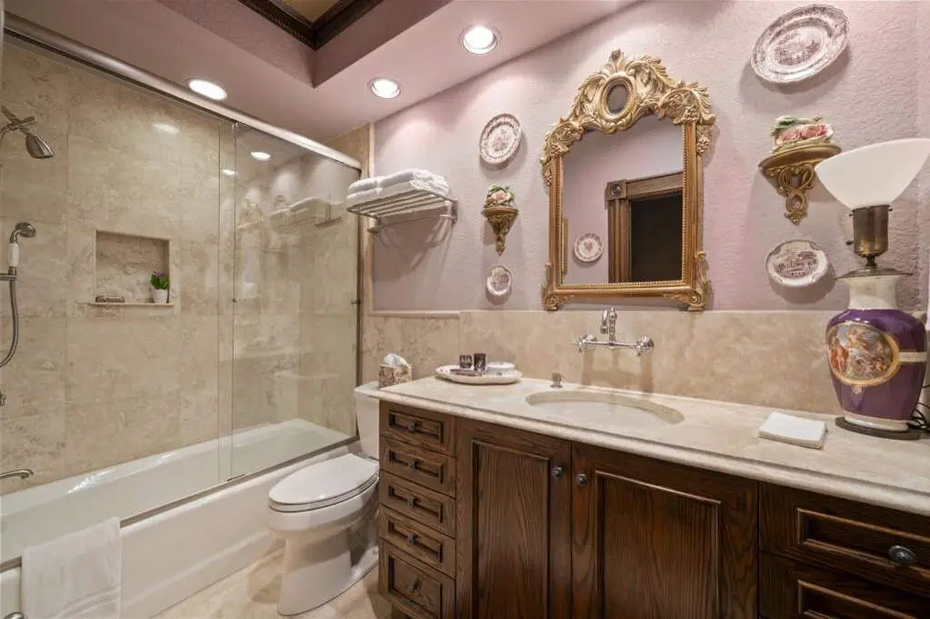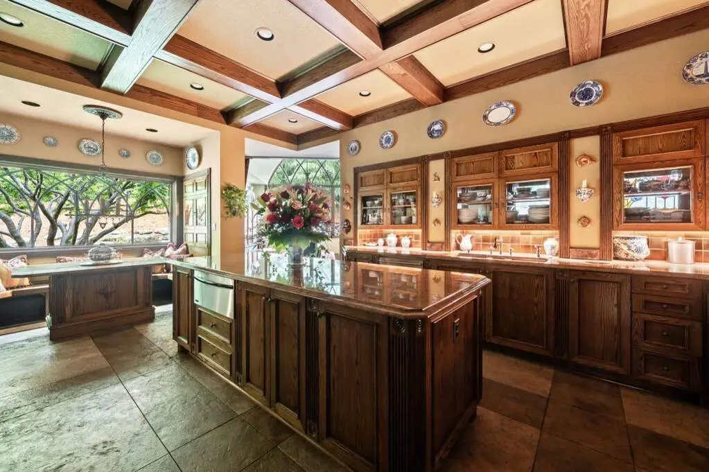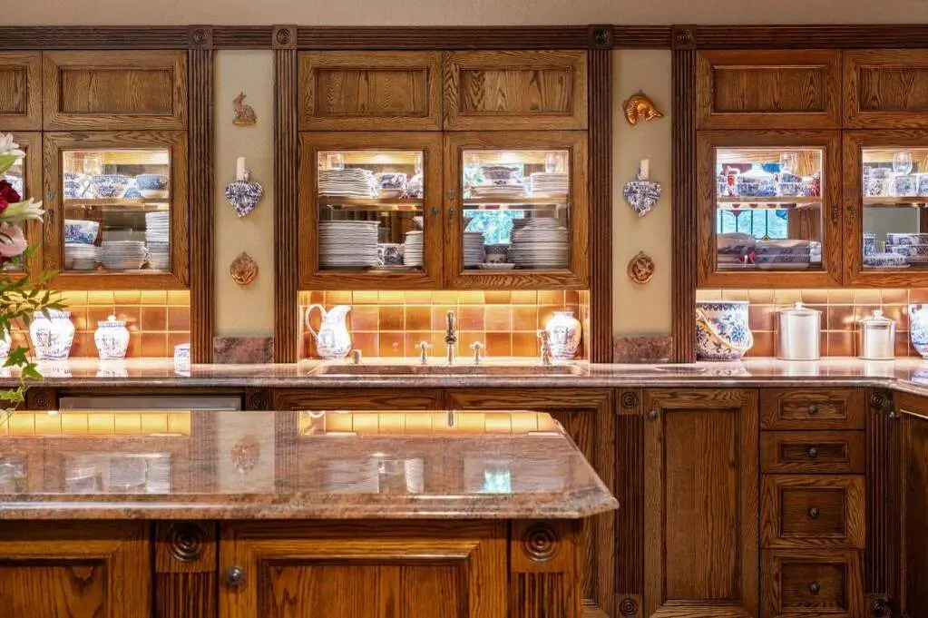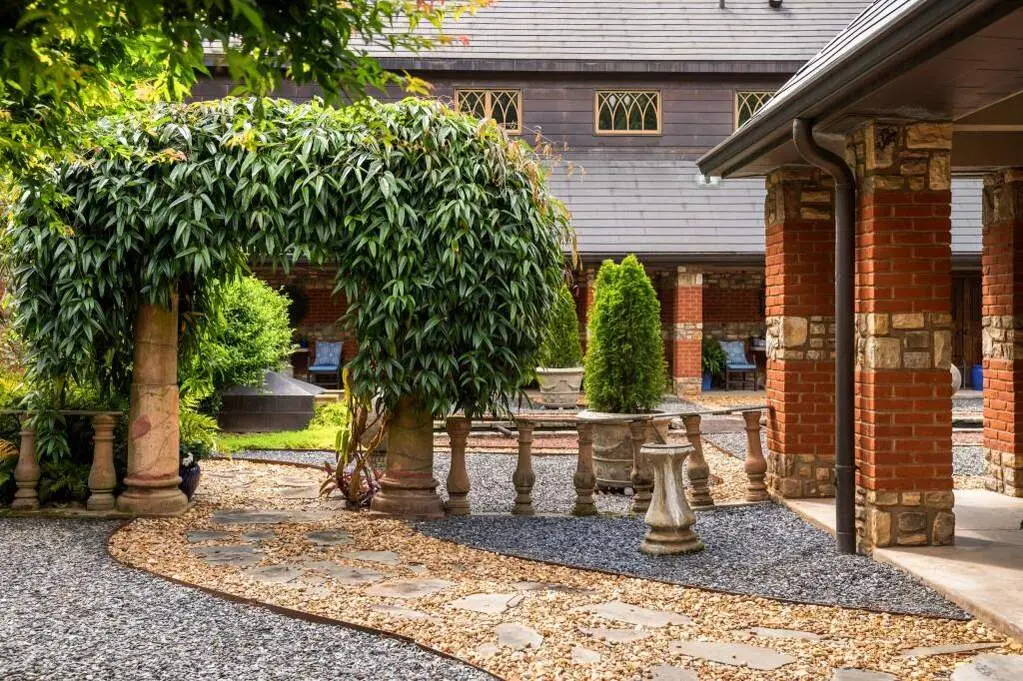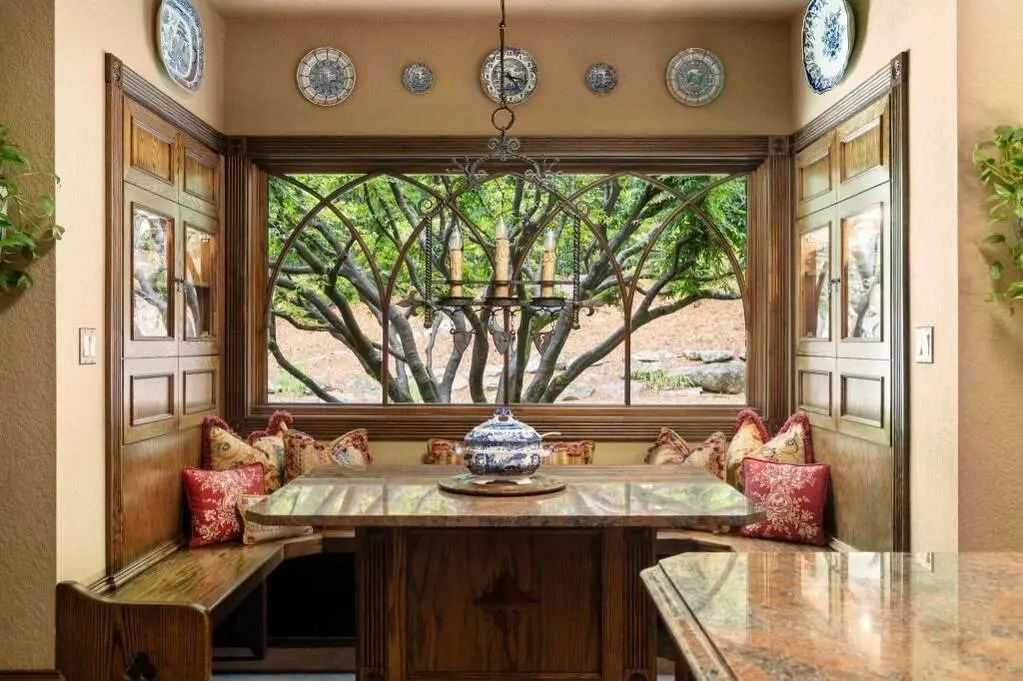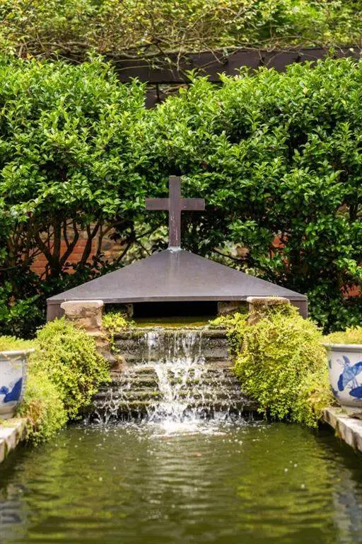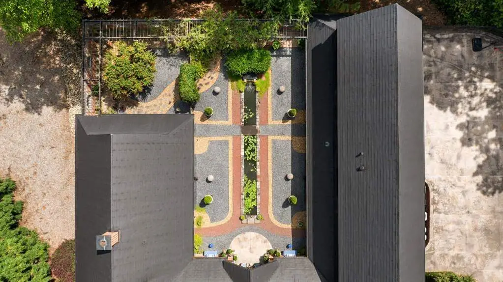 Nestled on approximately 8 private, gated acres, this extraordinary architectural masterpiece blends timeless elegance with luxurious, modern amenities. With 4 bedrooms, 4 full baths, and 2 half baths, the estate is a sanctuary of bespoke design and enduring craftsmanship at every turn. From the moment you arrive, you're greeted by a showstopping copper roof, fascia, and gutters - a stunning and enduring feature that sets the tone for the home's unmatched quality. The maintenance-free exterior offers beauty and peace of mind. Step inside to heated concrete floors on the main level and gleaming hardwoods upstairs, complemented by solid oak doors, hand-cut oak trim, and custom woodwork throughout. The heart of the home is a gourmet kitchen designed for both everyday luxury and effortless entertaining. A Wolf range framed by stone and brick is paired with a striking copper backsplash that echoes the home's distinctive exterior. High-end appliances include a Sub-Zero refrigerator, a separate Sub-Zero freezer, and a Thermador warming drawer. The adjacent scullery and butler's pantry - a caterer's dream - offer custom built-in cabinetry, a wine rack, and generous prep space. The scullery opens directly to the private courtyard, allowing for seamless indoor-outdoor entertaining centered around the stunning 35-foot reflecting pond. The primary suite is an indulgent retreat, offering his and hers separate bathrooms - one with a steam shower - and a show-stopping two-story custom closet complete with a rolling library ladder. A private office with a built-in safe room provides both function and security. Every feature in this home was thoughtfully designed - from the commercial-grade drainage system beneath the surface to the custom cabinetry, antique lighting, and artisan details throughout. Antique European chandeliers, including a grand entryway piece imported from France, add dramatic charm, while locally painted stained-glass windows bring a distinctive artistic touch.