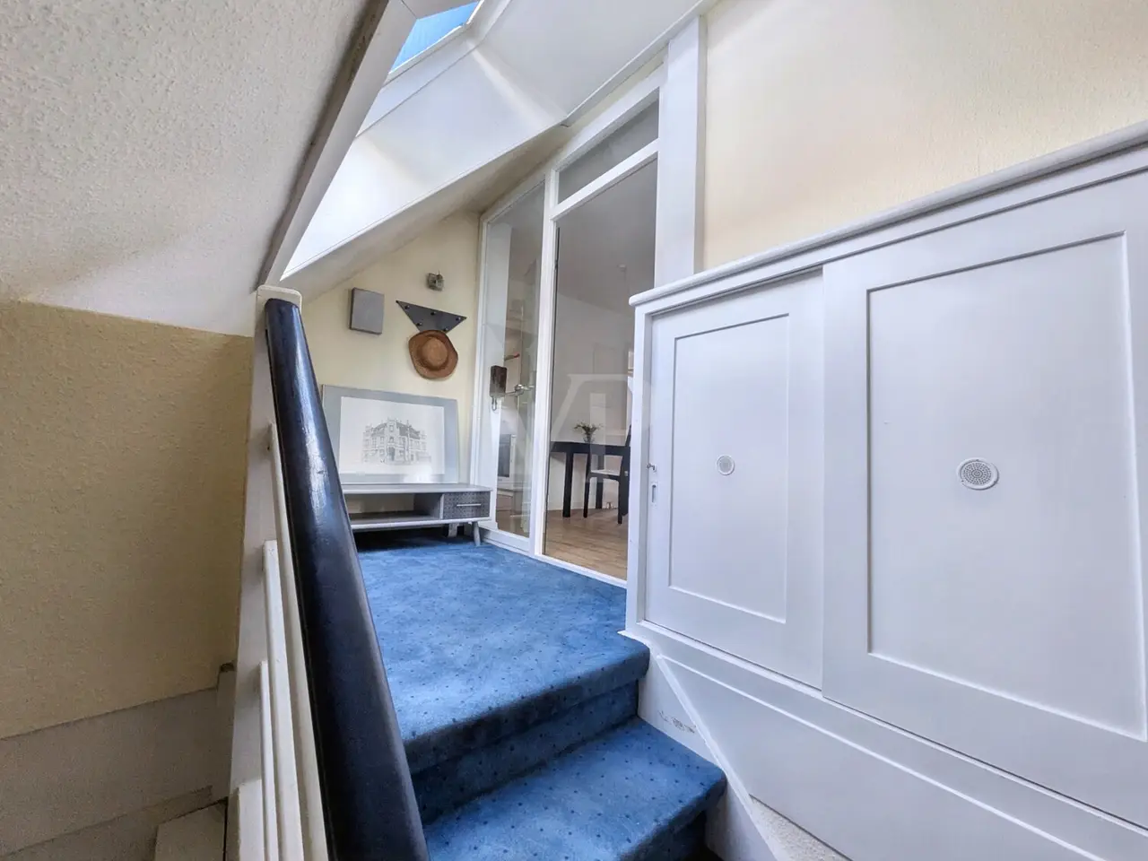 This well-kept townhouse, in the heart of Fellbach, impresses with its central city location on a very beautiful, secluded garden plot. It is very rare to find this combination of good accessibility and a haven of peace in a well-kept garden with plenty of privacy. The house consists of three apartments: - First floor: 3.5 rooms, 97.59 m² living space with terrace (rented). - Second floor: 4.5 rooms, 109.45 m² living space with large balcony and garden access. - Top floor: 2.5 rooms, 52.52 m² living space. The basement has a usable area of 88.34 m². In addition, there is a further usable area of 9.66 m² on the top floor. Both apartments on the upper floor and attic are currently used by the owner's family. The top floor functions as a separate guest area. The layout of the apartments is based on the typical floor plan of the turn of the century with large bedrooms, separate WC and spacious kitchen area with adjoining pantry, which was later converted into a bathroom. The purchase price includes an underground parking space in the neighboring building. This property is ideal for investors or owner-occupiers who want to live in a central and spacious location. Part-letting is also an option. A multi-generation house is also conceivable. The two apartments on the upper floor and top floor are available for immediate occupation upon sale. The entire house can also be easily occupied by a family. The garden with its large lawn, mature trees, swings and climbing tower is an absolute paradise for children. The house is very well-kept and has been constantly maintained. We would be happy to show you around the property and present this attractive townhouse to you.