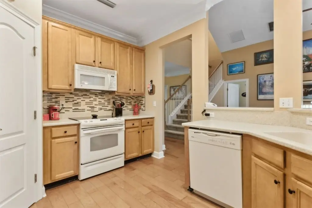 AFFORDABLE SOUTH ISLAND LIVING.......ATTRACTIVE AMELIA ISLAND HOME at 95184 Mackinas Circle with SOUGHT AFTER FEATURES: WOOD FLOORING, FIREPLACE, vaulted ceiling, tranquil backyard space.....GATED COMMUNITY located between Ritz-Carlton and Amelia Island Plantation....Original owner home in EXCELLENT CONDITION......four Bedrooms, two and a half baths, DOWNSTAIRS PRIMARY SUITE, dining room, living room plus GREAT ROOM....OPEN KITCHEN with light wood cabinetry, breakfast bar and breakfast area....SCREENED BACK PATIO to expand your living space....5 MINUTES to: BEACH ACCESS, golf, tennis, miles of walking/biking paths, multiple south end restaurants, Harris Teeter grocery/pharmacy/gas station....Located in smaller comfortable Summer Beach neighborhood with tree canopied streets.
