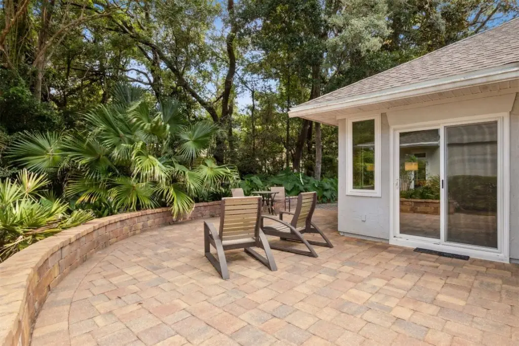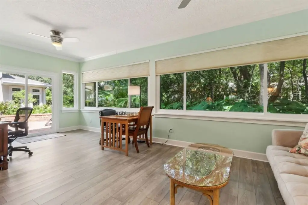 POPULAR & UNIQUE OCEAN VILLAGE....GATED Amelia Island OCEANSIDE COMMUNITY - EVERY HOME IS WALKABLE TO THE OCEAN....Single story home WITH LONG LIST OF OWNER UPDATES....AMELIA ISLAND'S MOST SUBSTANTIAL HOA AMENITIES: 2 swimming pools - one oceanfront - one heated, 3 CONVENIENT EASY ACCESS BEACH WALKWAYS, Tennis & pickleball courts, ENHANCED YARD CARE including irrigation...HOME IMPROVEMENTS INCLUDE: New ROOF and solar skylighting (2018), wood grain luxury vinyl plank flooring, carpeting, PAVERS for driveway, walkway & wraparound patio, sliding doors, Florida Room windows, exterior painting...KITCHEN REMODELING included: CABINETRY, Silestone countertops, stainless appliances, lighting, plantation shutters in breakfast nook...OWNERS BATHROOM REMODEL(2022) included: LARGE DUAL ENTRANCE WALK-IN SHOWER with bench seating, dual vanities with granite counters, cabinets, tile flooring....22x11 VERSATILE ENCLOSED FLORIDA ROOM with WOODED BACKYARD VIEW....South Amelia Island location near Ritz Carlton, bike/walk pathways, golf, restaurants and Harris Teeter grocery/pharmacy/gas.