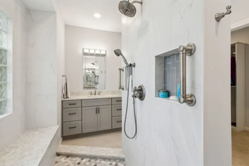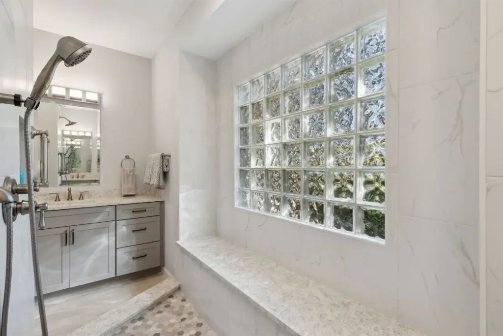 Dual entrance walk-in shower Pavers for driveway, walkway & wraparound patio
