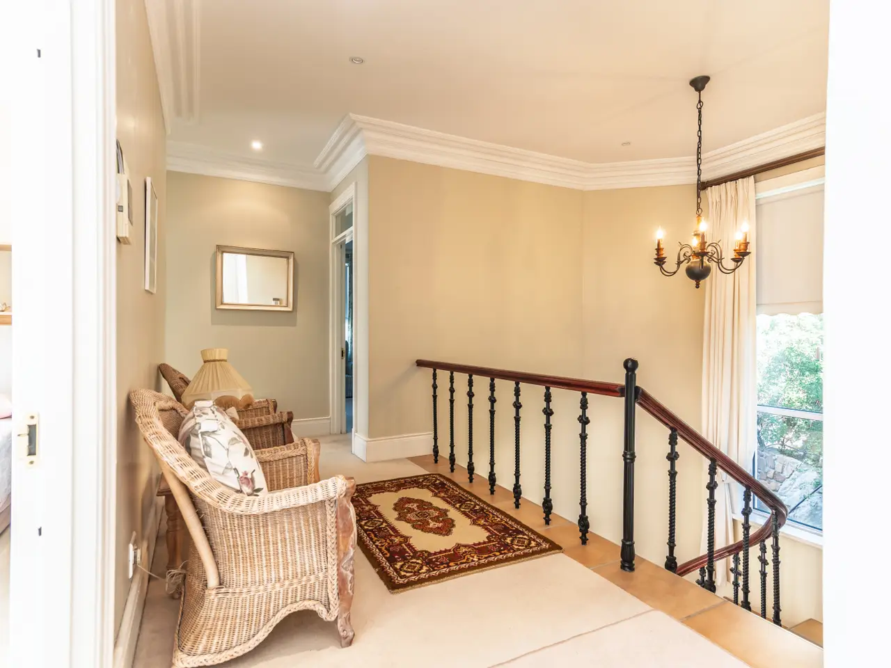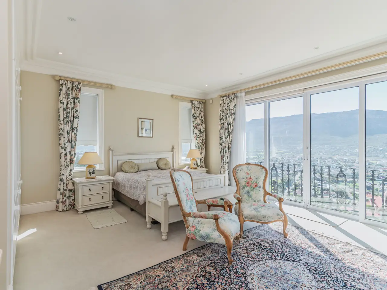 Situated on the mountainside, with stunning breathtaking views of both mountains and the ocean across False Bay. The elegant architectural touches along with warm, inviting interiors makes this far more than a home – it’s a retreat, a sanctuary, a place where timeless design meets natural elegance. Wake up to the sunrise over the ocean or unwind under the evening stars. The 4 generously sized bedrooms, each with their very own en suite bathroom, create ultimate comfort and privacy. The main and second bedroom have their own Juliet balconies, and a walk-through dressing room completes the elegance / luxury of the main bedroom. The living areas are north facing and comprise of a TV lounge and a formal lounge both with wool carpets and underfloor heating completed by a gas fireplace in the formal lounge. These areas open out on to an extra spacious patio with a splash pool and overwhelming views. The dining area leads into the kitchen, which is complete with induction hob, eye level oven, ample cupboards all of which can enhance and maximize your culinary wishes - an entertainer’s dream. This home has been meticulously maintained to a high standard and including floor tiles from Spain and roof tiles from Italy and the rockery gardens on the property are low maintenance. There is garaging for four cars and a security system that comprises of remote access to CCTV alarm system, indoor passives and external beams, intercom system, automated gate and garaging. Whether you are looking for a classic peaceful permanent residence or a luxurious vacation escape, this home offers the best of both worlds.