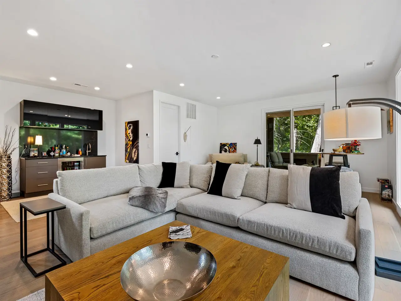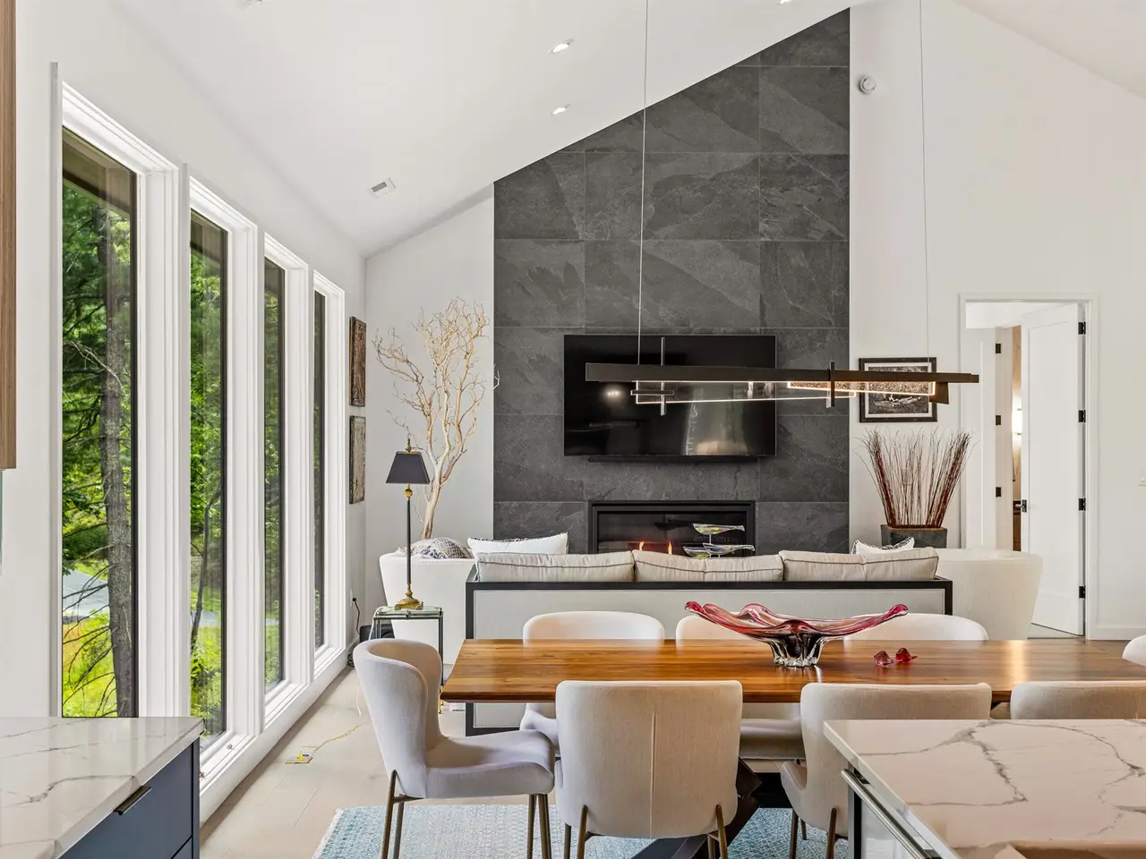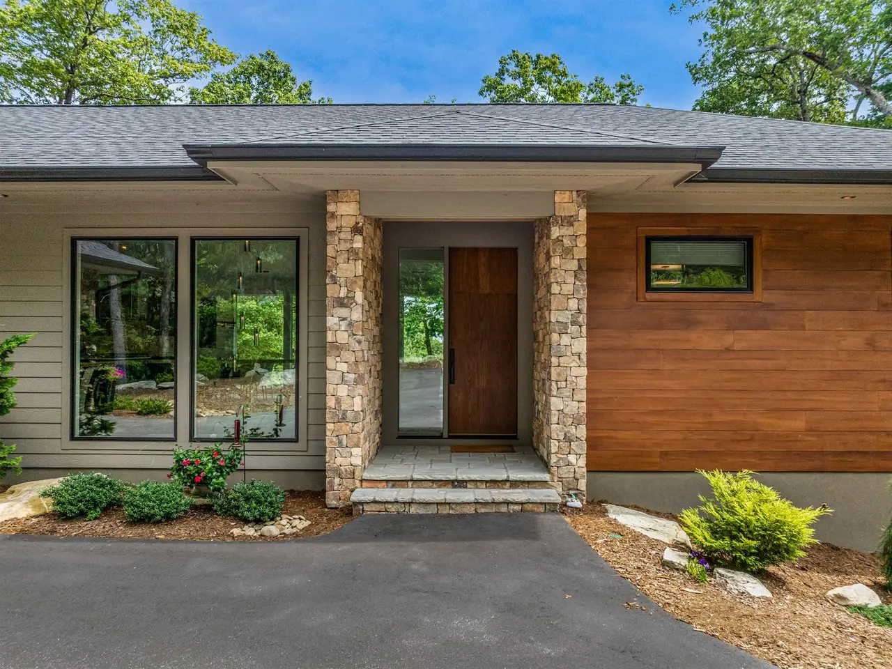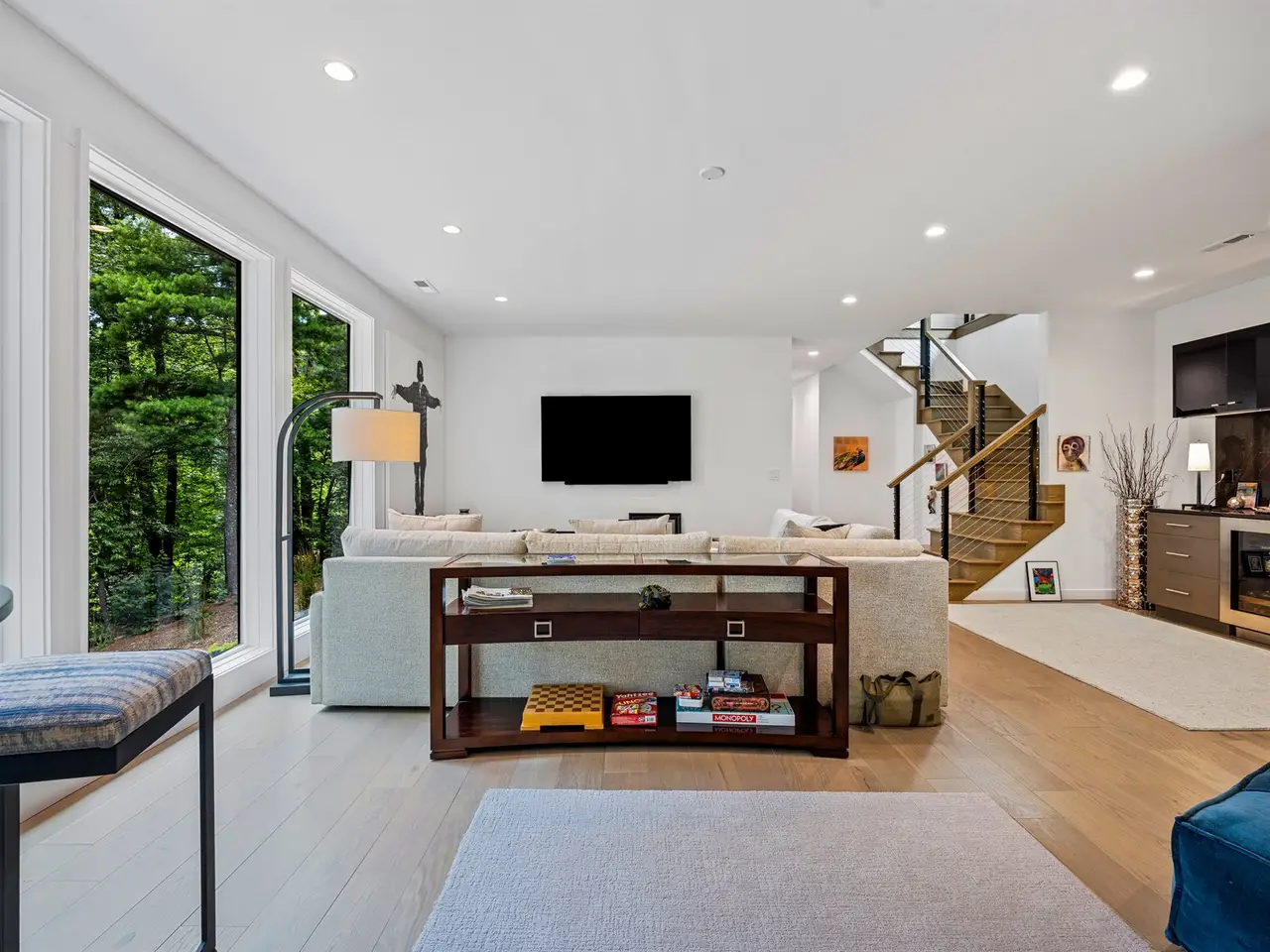 Step into this stunning modern home a true life-size treehouse with unparalleled privacy. The open-concept great room features soaring 18' ceilings and a striking fireplace wall that anchors the space. Walls of floor-to-ceiling picture windows flood the home with natural light while immersing you in nature's serene surroundings. At the heart of the home is a chef's kitchen designed for entertaining, showcasing custom Cabico cabinetry, quartz countertops and dramatic island, and premium SubZero, Wolf, and Cove appliances. Retreat to the home office a serene space for creating or peaceful reflection. The terrace level offers well appointed guest spaces with premium tile and designer finishes. Enjoy comfort year-round with three zoned HVAC one per level and one dedicated to the primary suite and a whole-house Generac generator. Designer lighting enhances each space, adding warmth and ambiance throughout. Blending sleek design with warmth and comfort, this home inspires at every turn.