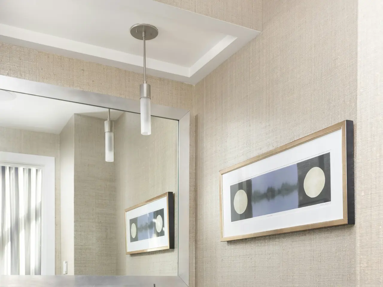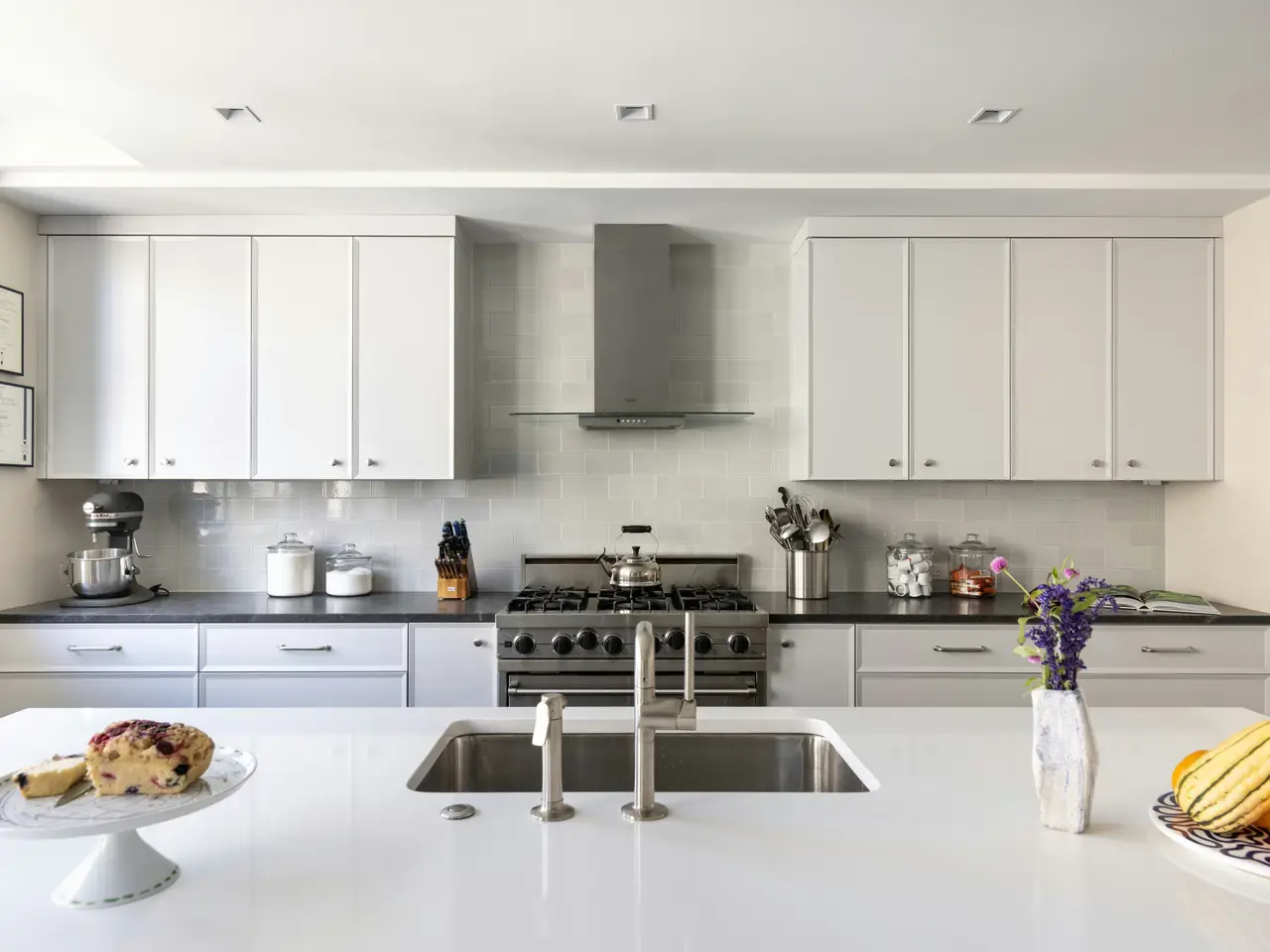 Snow quartz countertops and floor-to-ceiling white Bilotta cabinets
