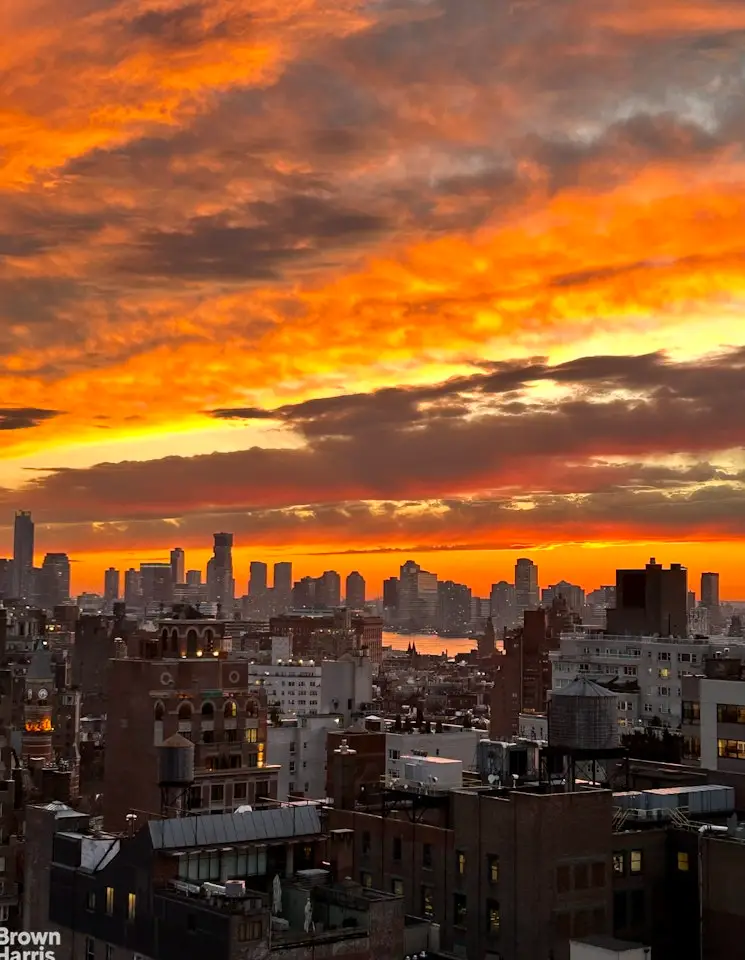 Located at the crossroads of Union Square, the Flatiron district and Greenwich Village, apartment 22A offers modern condo living with breathtaking southern views of the downtown skyline. A gracious entry foyer leads to a generous living and adjoining dining room, with landmarked views. The open kitchen is fully renovated. The living room and dining room face south over all of downtown, and a magnificent balcony provides the ideal setting for enjoying magical sunsets. Refined details abound-from pristine Brazilian walnut wide-plank floors to oversized windows framing stunning city vistas. The gourmet eat-in kitchen is equipped with premium appliances, including a Sub-Zero refrigerator and Miele dishwasher. The primary suite offers open views, abundant natural light, a large walk-in closet with custom shelving, and an additional closet for extra storage. The luxurious en suite bathroom features a soaking tub and a generous glass-enclosed shower. Additional conveniences include a Bosch washer/dryer and Fios high speed internet. Grosvenor House is a full-service luxury condominium with 135 units. Residents enjoy an elegant attended lobby, a fitness center, and one of downtown's finest rooftops with panoramic views of Manhattan.