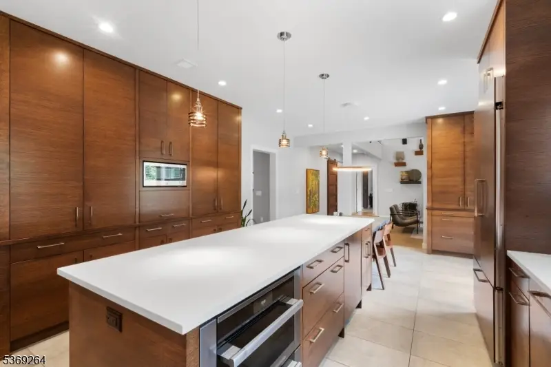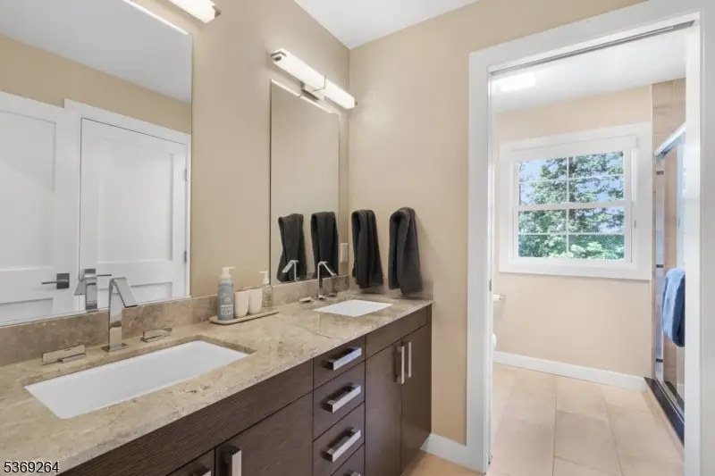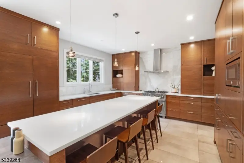 The ultimate in luxury and performance, this custom home in one of Florham Park's most desirable neighborhoods is loaded w/high-end upgrades and distinctive benefits rarely found at any price point. Approx. 7000 + sq. ft including the LL and featuring 4+ spacious bedrooms and 6 baths, it also offers a separate lower-level guest suite w/full bath and direct garage access, ideal for guest or remote work space. A first-floor office, finished basement w/gym and wet bar, and a heated 3-car gar complete the flexible layout. What sets this home apart is its blend of luxury, efficiency, and wellness. Geothermal heating/cooling, fully owned solar panels, and participation in NJ's SREC program resulted in a net energy profit in 2024. Solid wood flooring and molding (no MDF), mineral wool insulation, and low-VOC finishes meet EPA Indoor airPLUS standards for healthier living. Air is continuously refreshed by a HEPA-ready ERV system, and a whole-house water filtration system removes PFAS, heavy metals, and more. Smart home wiring (Cat5e), wine refrigerators in the dining room and basement, and an instant hot/filtered water tap elevate convenience and entertaining. The kitchen features a Wolf dual-fuel range, Miele combi-steam oven, Bosch dishwasher, and KitchenAid built-in fridge. Additional highlights include radiant heat in kitchen and baths, steam shower, whole-house generator, EV plugs, motorized shades, fenced yard with fire pit, and solar-equipped shed.