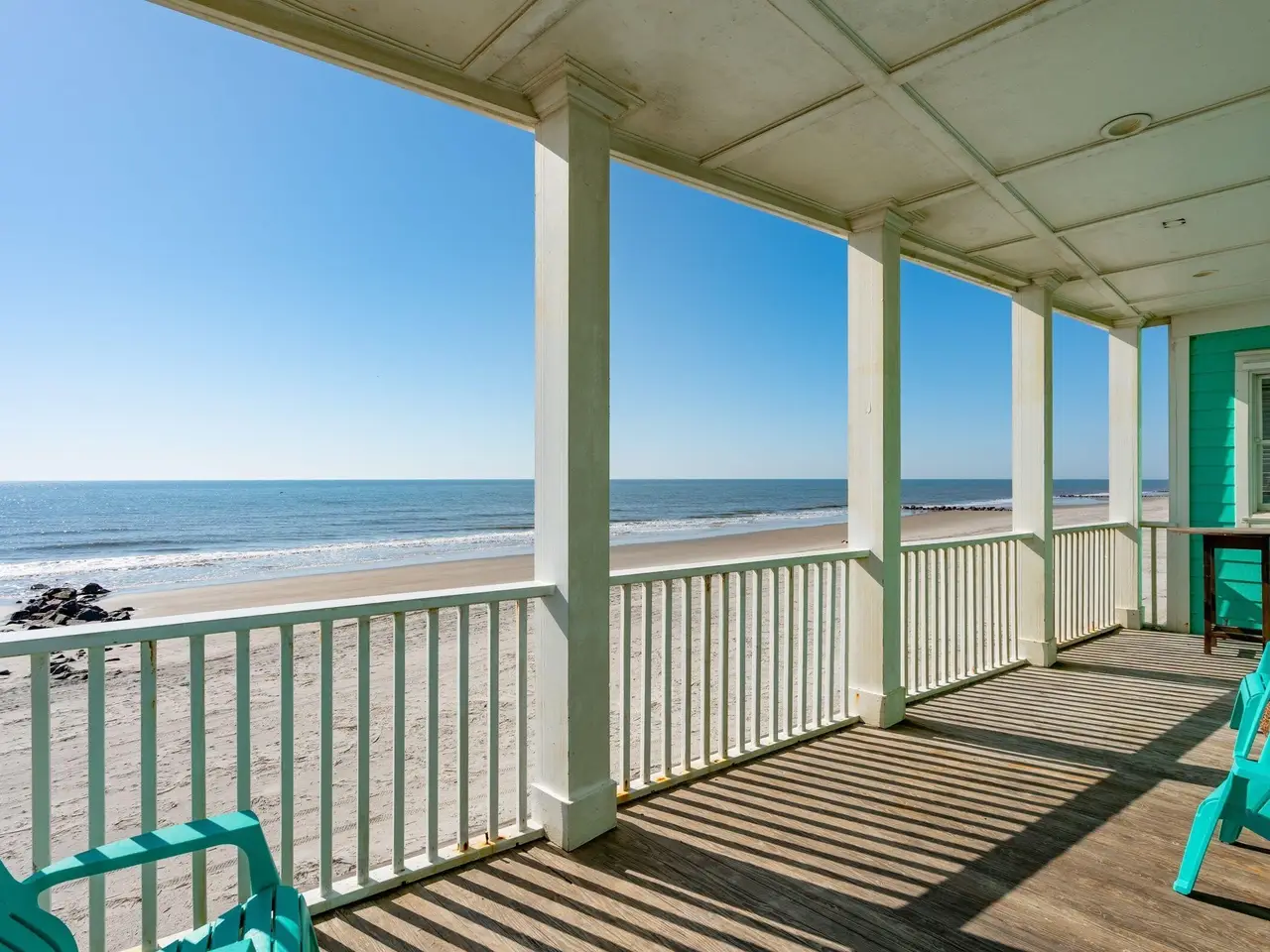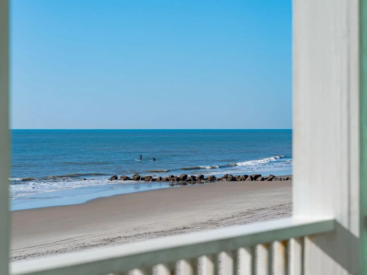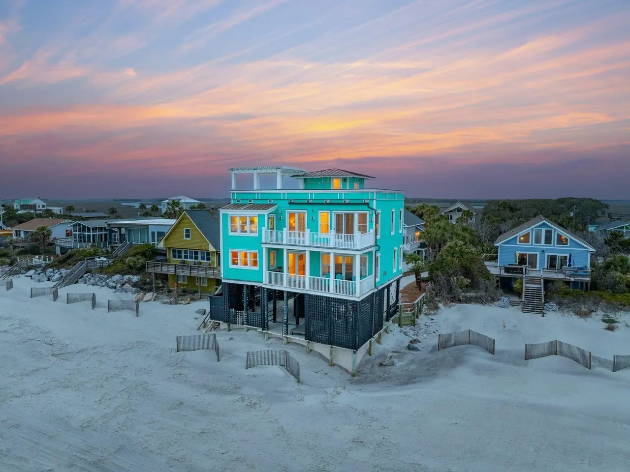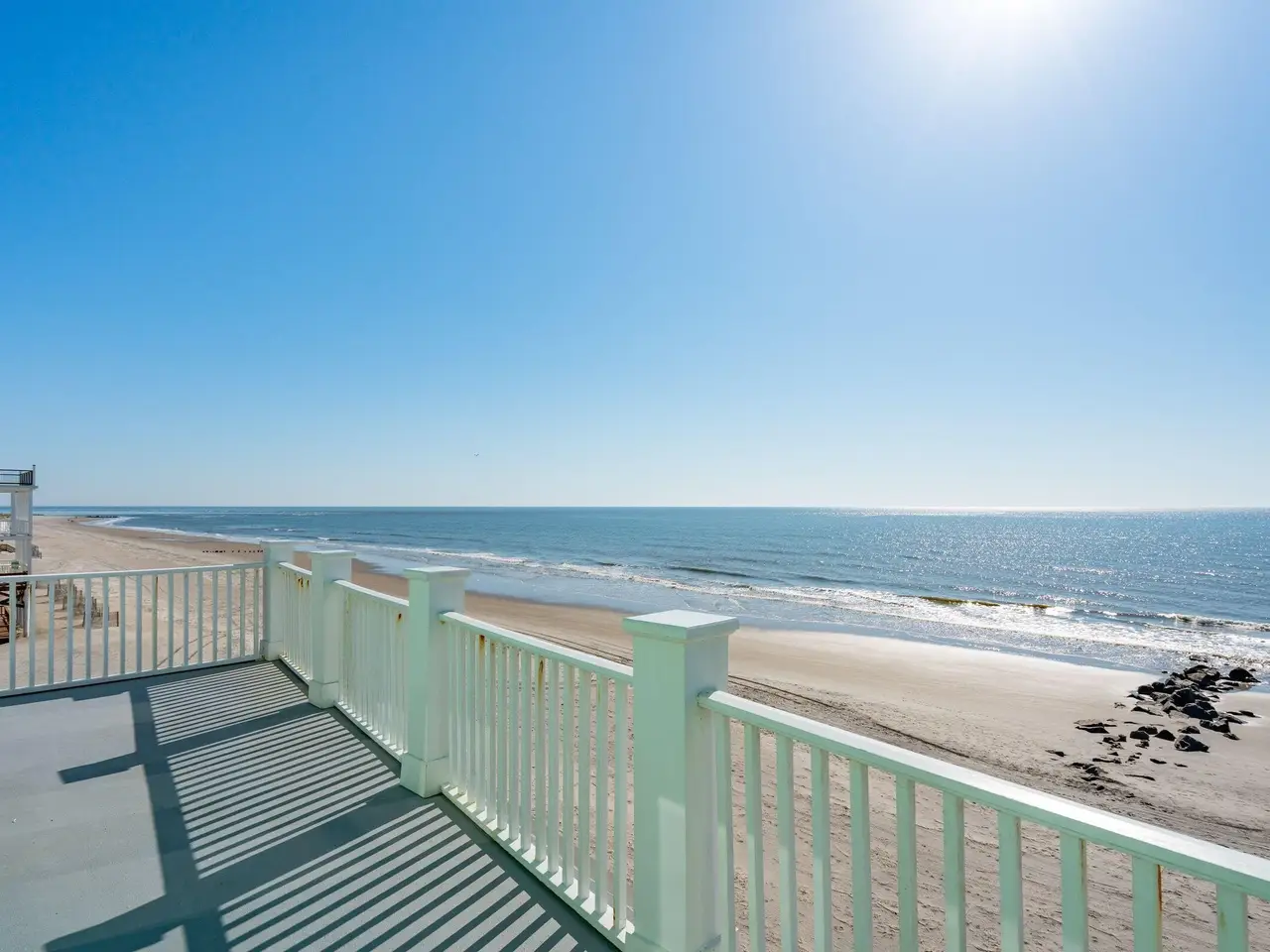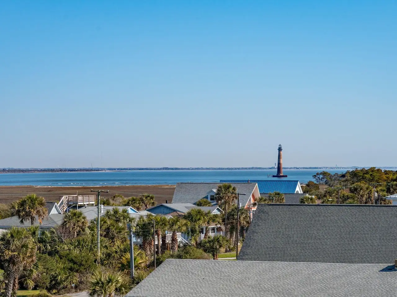 Captivating oceanfront home nestled on the eastern end of the island with sweeping views of the Atlantic, Charleston Harbor, Ravenel Bridge, and Morris Island Lighthouse. Greeted by a long driveway bordered with towering palms, this property features a ton of outdoor entertaining space, including double porches and a roof top terrace with panoramic views of the ocean and marsh. An open light-filled floor plan is perfect for large gatherings. The living room features double sets of doors leading out to the covered porch, along with a gas fireplace and custom built-ins on either side. The kitchen comes equipped with nice cabinetry, stainless appliances, granite countertops, and an oversized pantry. There are dual Master bedrooms, one on each floor, and both with large en-suite baths.The hardwood floors were recently sanded and refinished throughout the entire house. There is an elevator that can be accessed on the ground level which services all three levels of the home, including the rooftop terrace. Come see why this beachfront gem has been a VRBO favorite on The Edge of America!