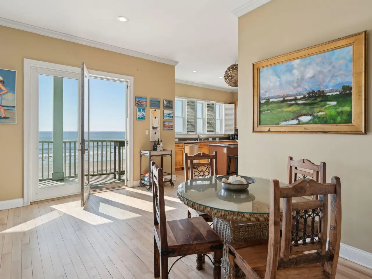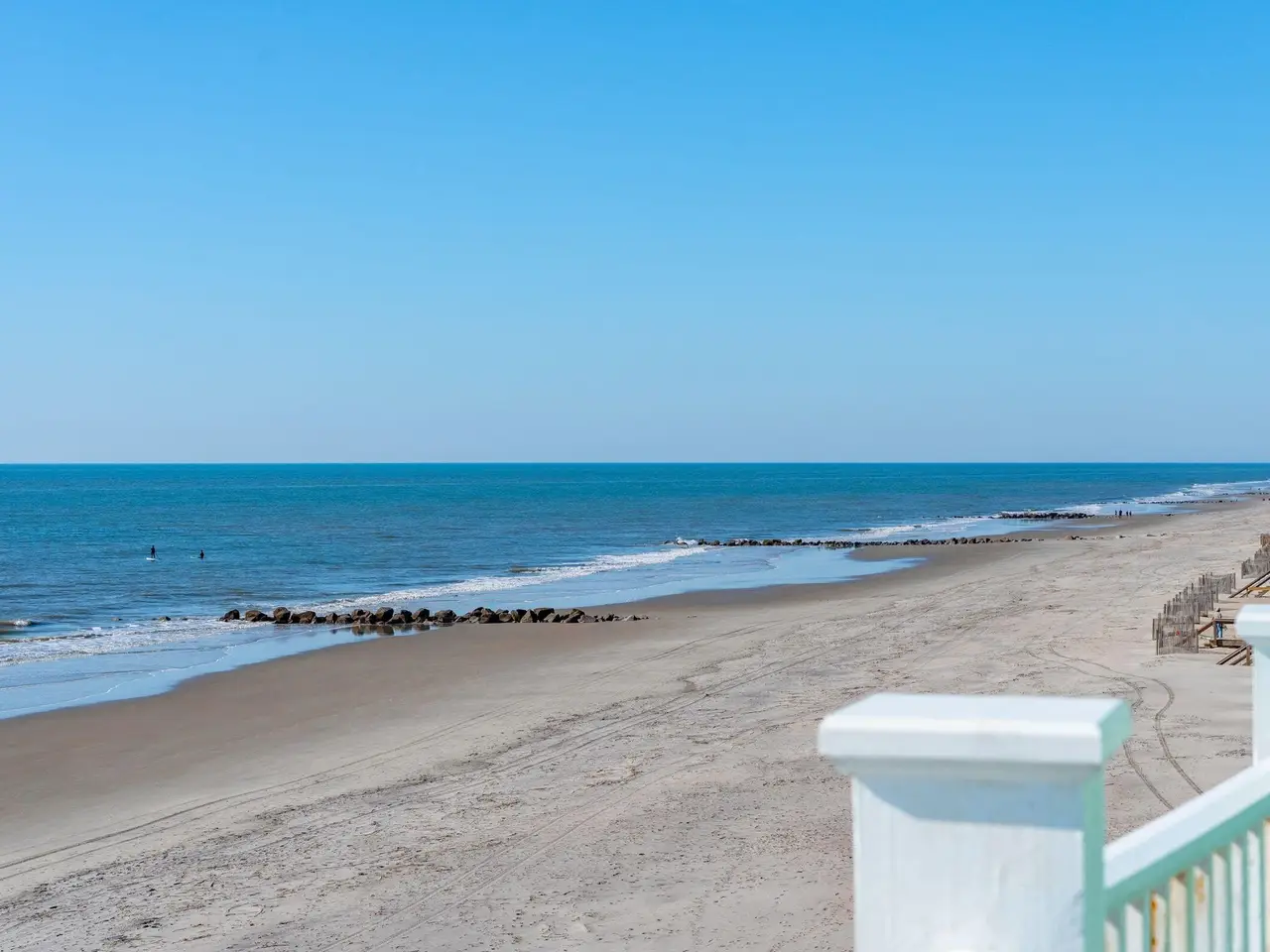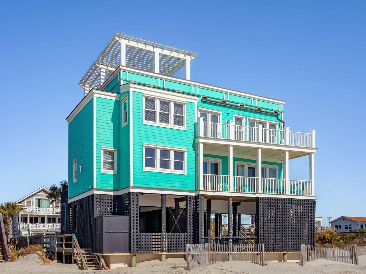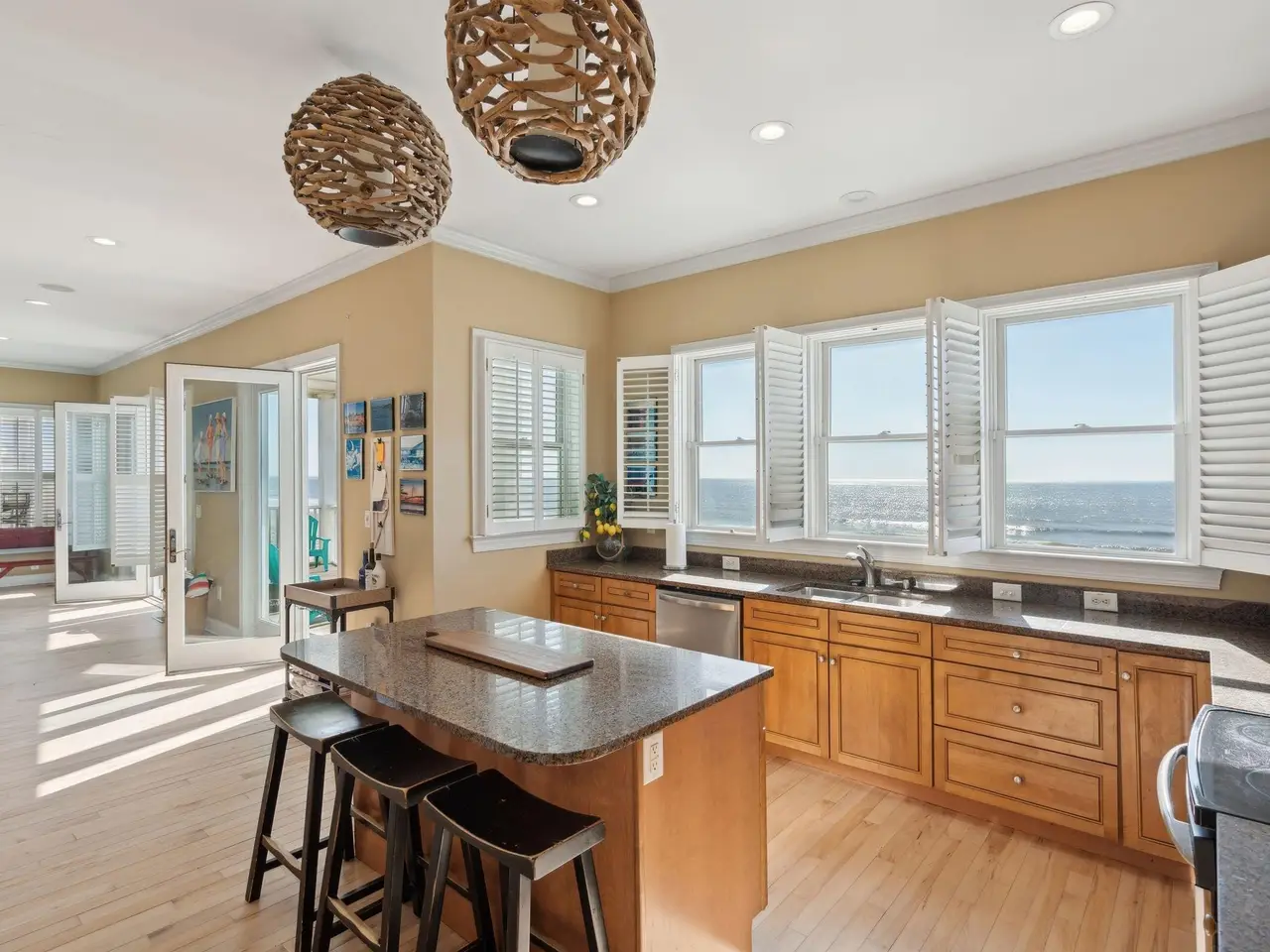 Captivating oceanfront home nestled on the eastern end of the island with sweeping views of the Atlantic, Charleston Harbor, Ravenel Bridge, and Morris Island Lighthouse. Greeted by a long driveway bordered with towering palms, this property features a ton of outdoor entertaining space, including double porches and a roof top terrace with panoramic views of the ocean and marsh. An open light-filled floor plan is perfect for large gatherings. The living room features double sets of doors leading out to the covered porch, along with a gas fireplace and custom built-ins on either side. The kitchen comes equipped with nice cabinetry, stainless appliances, granite countertops, and an oversized pantry. There are dual Master bedrooms, one on each floor, and both with large en-suite baths.The hardwood floors were recently sanded and refinished throughout the entire house. There is an elevator that can be accessed on the ground level which services all three levels of the home, including the rooftop terrace. Come see why this beachfront gem has been a VRBO favorite on The Edge of America!