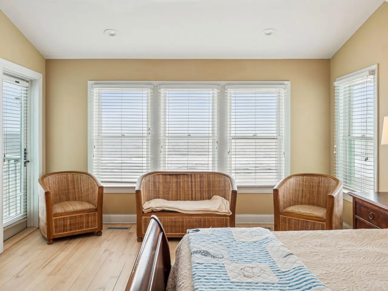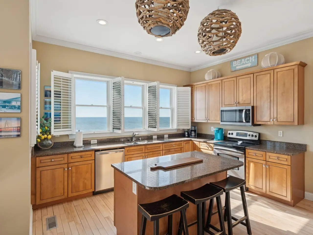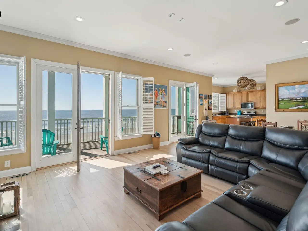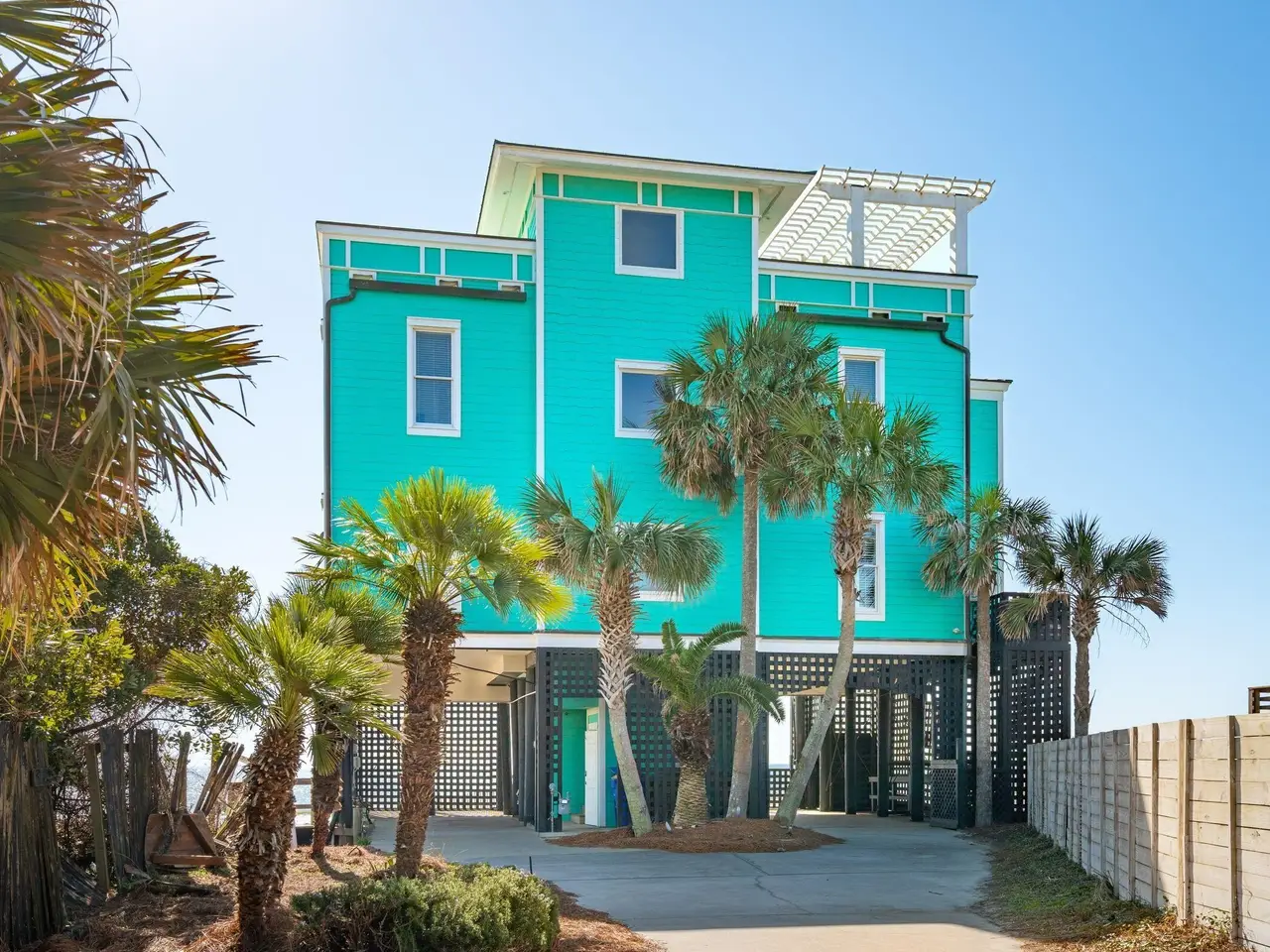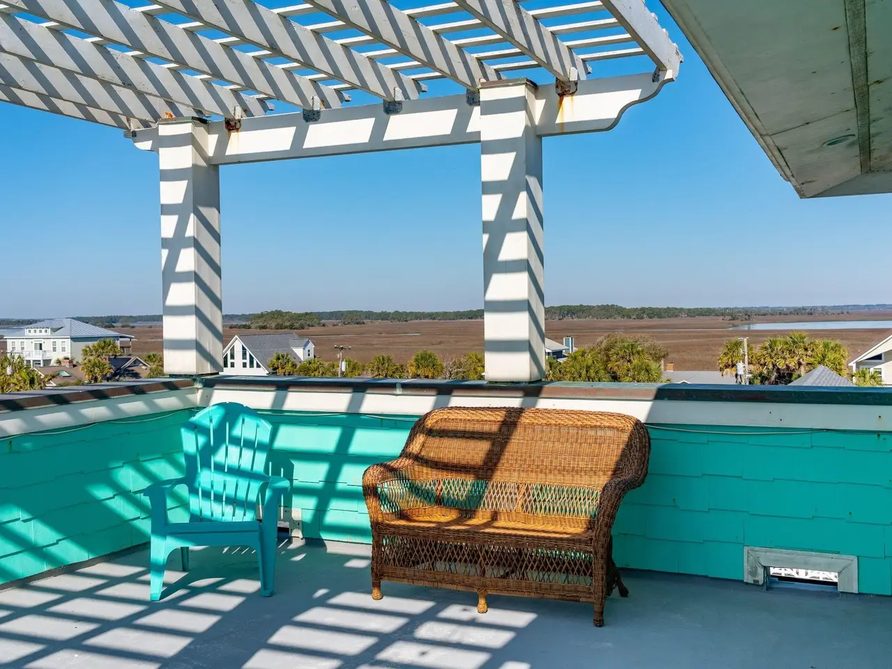 Captivating oceanfront home nestled on the eastern end of the island with sweeping views of the Atlantic, Charleston Harbor, Ravenel Bridge, and Morris Island Lighthouse. Greeted by a long driveway bordered with towering palms, this property features a ton of outdoor entertaining space, including double porches and a roof top terrace with panoramic views of the ocean and marsh. An open light-filled floor plan is perfect for large gatherings. The living room features double sets of doors leading out to the covered porch, along with a gas fireplace and custom built-ins on either side. The kitchen comes equipped with nice cabinetry, stainless appliances, granite countertops, and an oversized pantry. There are dual Master bedrooms, one on each floor, and both with large en-suite baths.The hardwood floors were recently sanded and refinished throughout the entire house. There is an elevator that can be accessed on the ground level which services all three levels of the home, including the rooftop terrace. Come see why this beachfront gem has been a VRBO favorite on The Edge of America!
