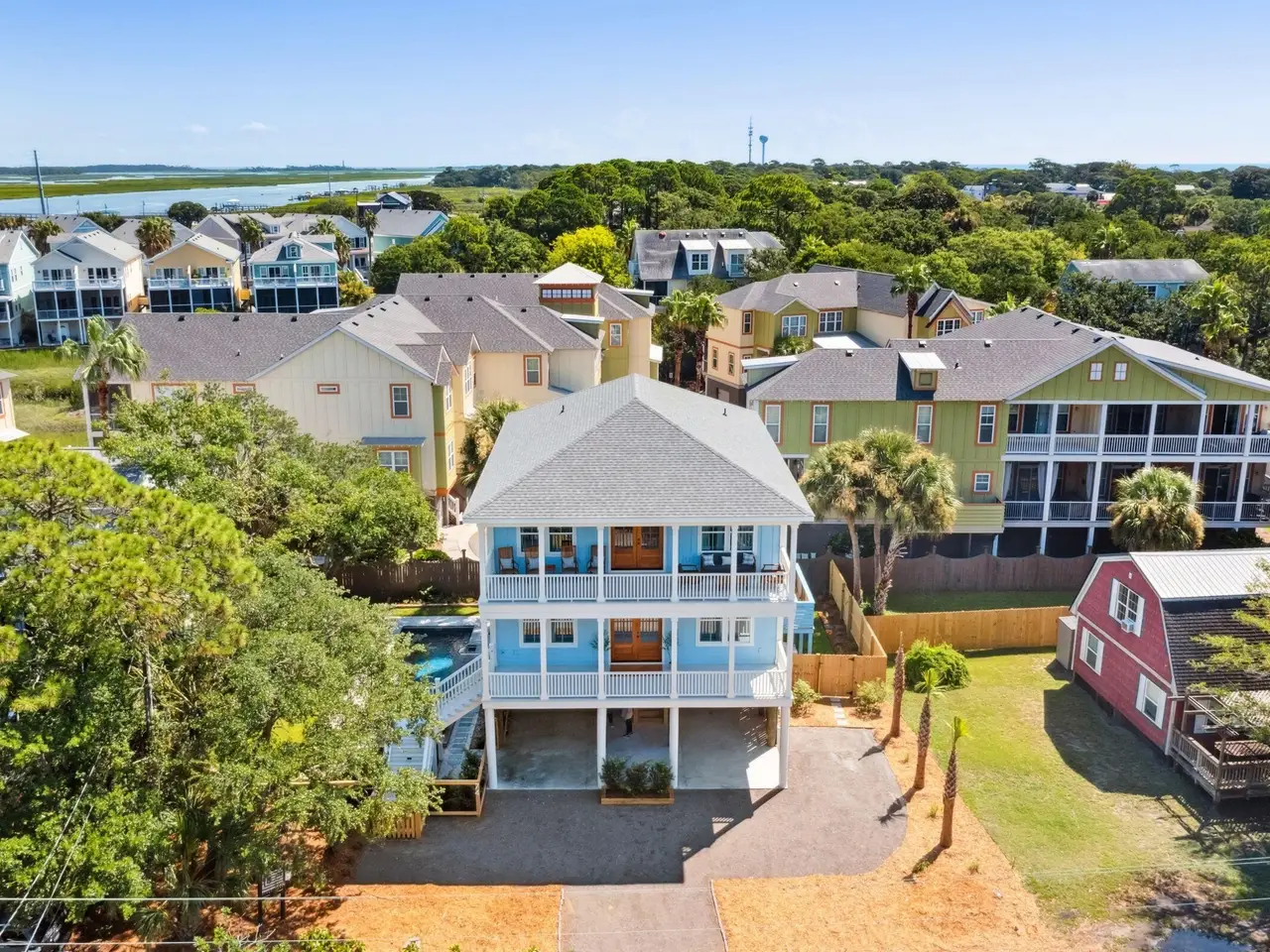 Luxury Island Living on Folly Beach! Inspired by a Mediterranean lifestyle, this stunning new construction 5BD/4.5BA home (2,833 sq ft) was completed in 2023 and offers a private heated saltwater pool and layers of indoor & outdoor living spaces. Enjoy double front porches with sunset views, spacious lounge decks, a gourmet kitchen, and custom European Oak floors. Designed with coastal elegance, the home features custom baths, spray foam insulation, and ample parking. FULLY FURNISHED and move-in ready, this retreat is just steps from the beach and the heart of Folly Beach! Don't miss this rare opportunity to own a dream coastal getaway! Highlights of the home: -Spacious primary bedroom and a large luxurious primary bathroom with free-standing tub and stunning walk-in shower with amazing tile work and multiple shower heads -2nd primary bedroom with ensuite bathroom -Two downstairs bedrooms where one could easily be turned into a home office. -Home currently maintains a high speed internet connection -Heated saltwater pool with walls of Star Jasmine surrounding the pool along with an outdoor entertaining area -Elegantly appointed bedrooms for a restful night's sleep -Gourmet kitchen with high-end appliances, custom cabinets and waterfall quartz counters -Double front porches that welcome the evening sunset with a great 2nd floor porch sunset view over the Folly River -Comes fully furnished with meticulously appointed interiors, combining modern amenities with coastal charm -During construction, the builder framed out an elevator shaft for the home but an elevator was not installed. A new buyer could add an elevator at his/her leisure. -Lot is zoned Island Commercial (commercial zoning). Buyer would need to inquire with the City of Folly Beach for any additional uses on the currently unused strip of land that is part of the property. Let's walk you through the home floor-by-floor: Main Floor: Fully Equipped High End Kitchen, Dining Area for Twelve, Living room with Board Games & TV, Half Bath, Bedroom #1: King Bed, Jack & Jill Bathroom, Bedroom #2: Queen Bed Upper Floor: Bedroom #3: Two Bunk Beds with Four Twin Mattresses and TV & ensuite Bathroom, Bedroom #4: King Bed with TV & ensuite Bathroom, Bedroom #5: King Bed with TV & ensuite Bathroom, Spacious Front Porch with Seating & Rocking Chairs Ground Floor: Heated Saltwater Pool, Fenced Yard, Outdoor Shower, Shaded Outdoor Seating Area with Grilling area, Plenty of parking under the home This home was constructed with the highest level of finishes and is the perfect beach retreat. Lounge on the deck, take a dip in the sparkling pool, or stroll down to the beach for a refreshing swim in the ocean. An ideal location allows for an easy stroll to all the shops & restaurants of downtown Folly Beach as well. Embrace the epitome of coastal luxury with this stunning home, offering an unparalleled escape for those seeking tranquility, beauty, and the "beach-life." Folly Beach offers a wealth of recreational activities for all. Spend your days surfing the waves, kayaking through the marshlands, or simply lounging on the beach with a good book. Explore the vibrant local dining scene, browse the shops and galleries along Center Street, or venture into nearby Charleston for a taste of history and culture.