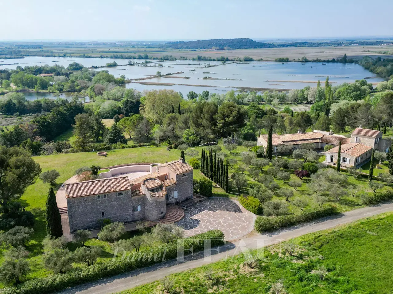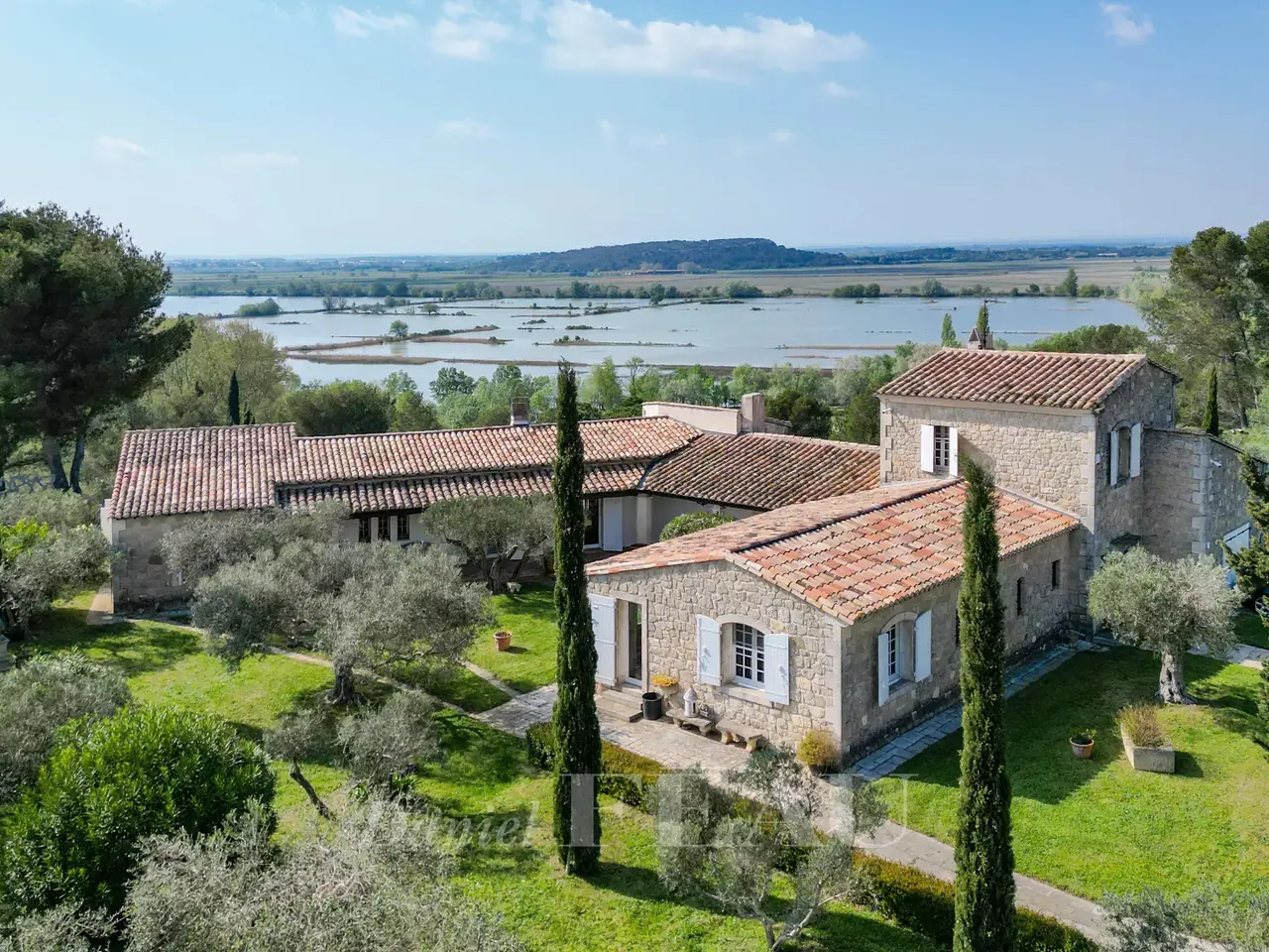This relatively recent property in an elevated setting surrounded by olive trees commands an exceptional view of a peaceful lake renowned for its migratory bird population, and notable pink flamingos. Mainly on a single floor and in a “U”-shape, it offers about 270 sqm of living space bathed in sunshine and including spacious living/reception rooms and three bedrooms. A guest house benefiting from independent access comprises three further bedrooms, as well as potential to create a home cinema, recreation room etc. With several garages (up to ten cars), a studio apartment and a caretaker’s lodge. A rare opportunity just 5 minutes from delightful Fontvieille and under 10 minutes from the amenities and roads accessing Arles.