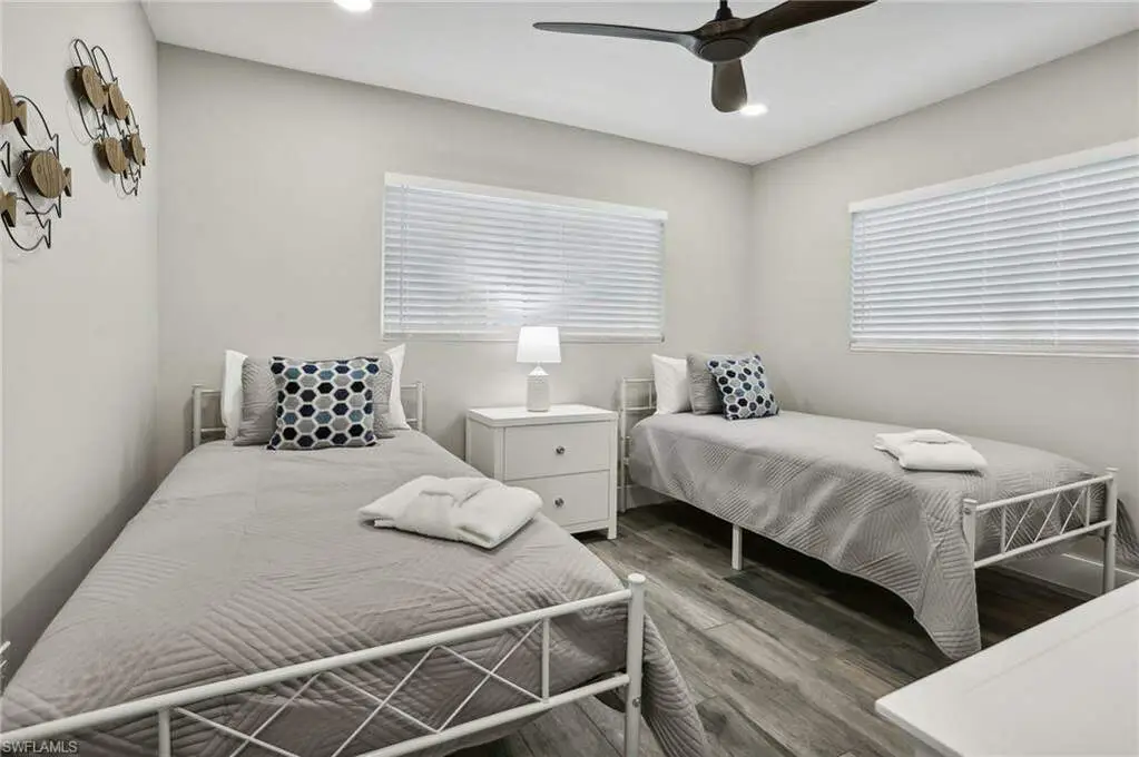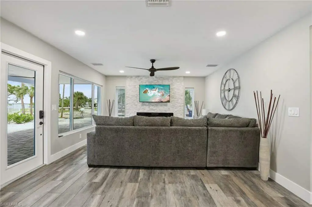 Welcome to this furnished and move in ready 3/2 direct gulf access pool home on Ft Myers Beach with amazing BAY views and only steps to the white sand of the Gulf! This home has been completely remodeled with all permits in place and positive air quality results. The interior features porcelain plank tile throughout, neutral decor and the desired split floor plan. The bright white kitchen has upgraded stainless appliances, convenient wine refrigerator, gorgeous quartz counters and opens up to both the living and dining areas, perfect for entertaining. The custom cabinetry and tile work in both bathrooms is sure to impress! Step outside to your private oasis and enjoy your pool or jump in your boat off your private dock to explore all that Ft Myers Beach has to offer. Perfect for your new Beach getaway, investment or a combination of the two.
