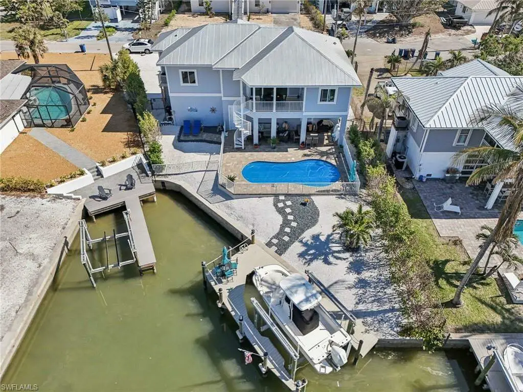 Welcome home to this gorgeous, elevated TURNKEY FURNISHED 3/2/2 direct gulf access pool home only steps to the white sands of the Gulf via your deeded Beach access. As you enter through the front doors you will be immediately wowed by the two-story entry way. The interior of this home features porcelain wood plank tile, soaring ceilings and an open floor plan. The beautiful white shaker kitchen with stainless appliances and stunning granite counter tops overlooks the main living area, great for entertaining. The ample sized master bedroom with walk in closet space also boasts an en-suite bath with dual sinks and a custom tiled walk-in shower. The second story enclosed balcony directly off the main living area is perfect for enjoying the serene canal views. In addition to the large 2 car garage on the main level there is an additional huge bonus area with so many possibilities. Step outside to your Florida oasis and enjoy relaxing by the pool, amazing fishing, or jump on your boat with your own private boat dock with a 14K lift to explore all SW Florida has to offer. Don't wait for new construction, you can move right into this 6-year young home! Huge price reduction!
