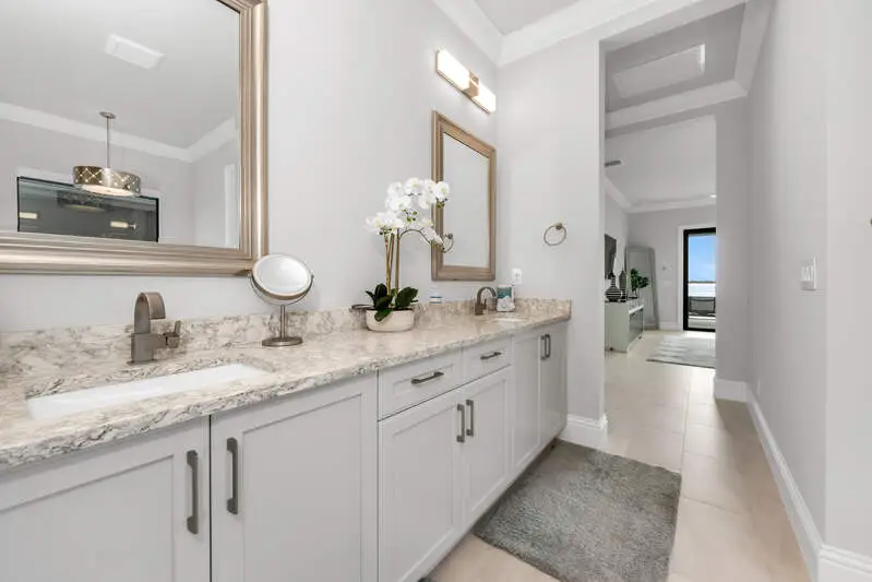 Welcome to 3924 W Riverside Drive - an architectural masterpiece newly constructed in 2023 by acclaimed luxury builder PGI Homes. This custom estate offers over 4,600 square feet of refined living space with 5 spacious bedrooms, a private den, and 5 luxurious bathrooms - all thoughtfully designed to showcase panoramic views of the Caloosahatchee River. From the moment you arrive, the grand pavered motor court and stately facade set the tone for the elegance that continues inside. Soaring ceilings and walls of glass fill the interiors with natural light, while the open-concept layout offers seamless flow between the living, dining, and chef's kitchen - all framed by breathtaking riverfront vistas. The home features two luxurious primary suites - one upstairs and one downstairs - ideal for multi-generational living or hosting long-term guests. Both offer spa-inspired en suites, with the main-level retreat boasting a freestanding soaking tub and oversized walk-in shower. Wellness and relaxation are taken to the next level with not one, but two private saunas - a rejuvenating steam sauna and a traditional dry sauna - providing a true spa experience at home. Indulge in Southwest Florida's indoor-outdoor lifestyle with disappearing sliders that lead to a resort-style lanai, featuring a custom pool and elevated spa overlooking the water. Enjoy sunrise coffee or sunset cocktails from your private dock with tiki hut, offering direct boating access to the Gulf of Mexico. Every finish has been meticulously selected to combine modern elegance with coastal luxury. Situated on one of Fort Myers' most prestigious waterfront streets, this is not just a home - it's a lifestyle. A rare opportunity to own a brand-new, move-in-ready riverfront estate with world-class craftsmanship and unmatched views.