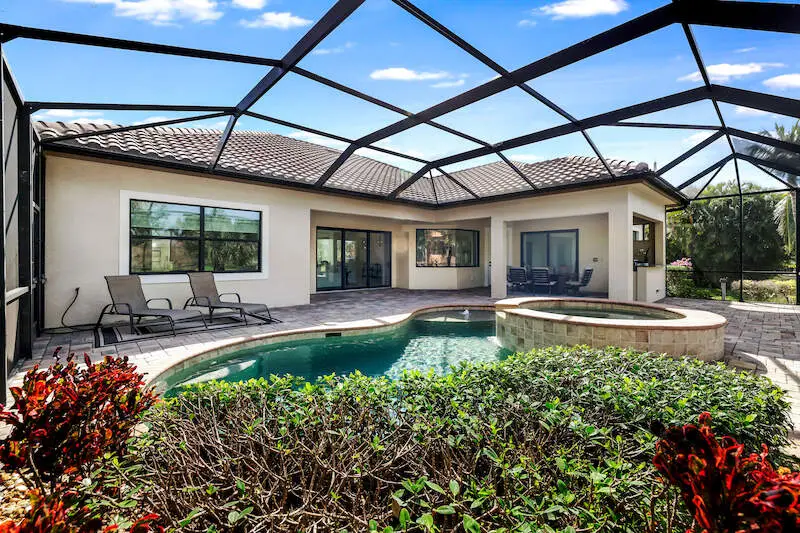 IMMEDIATE GOLF AVAILABLE!! Newly updated! Experience modern elegance in this 3128 sq ft. single family home, perfectly situated on a premium golf course lot. Featuring over 400,000 in upgrades, this light and modern home offers the perfect blend of sophistication and comfort. Home features high-end appliances, walk-in closets, coiffured ceilings, new lighting throughout with a contemporary design, resort style backyard with inground pool and spa and breathtaking views, newly cleaned roof for peace of mind, spacious three car garage for ample storage and parking. This home offers open-concept layout, ideal for entertaining and everyday living, come take a look you will be impressed!! Beach club available, no wait list for golf, bocce, tennis and pickleball.