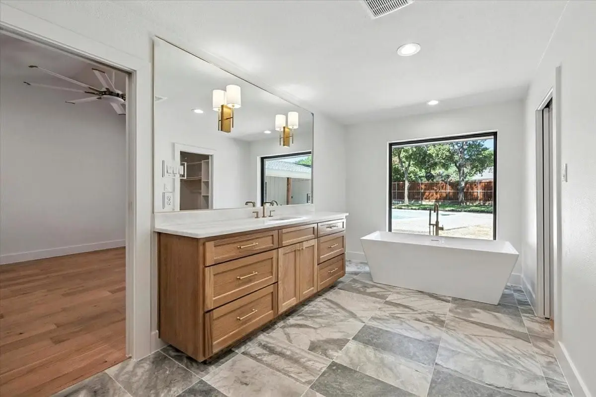 Located on a half-acre lot beneath mature oaks in the heart of Overton Park, this fully renovated mid-century modern home remodeled by Encore Builders offers the perfect blend of timeless architecture and modern design. Clean lines, expansive windows, and an open layout create a bright, airy feel throughout. Inside, you'll find wide-plank wood floors, high ceilings, and a designer kitchen with custom cabinetry and premium appliances. A sleek bar area and spacious living areas provide great flow for everyday living and entertaining. The primary suite features backyard access, a luxurious bath with dual showers, a soaking tub, and a generous walk-in closet. Out back, enjoy a private setting with a pool and plenty of space for gathering with family and friends. Just a short walk to Overton Park Elementary and minutes from shopping and dining in Clearfork.
