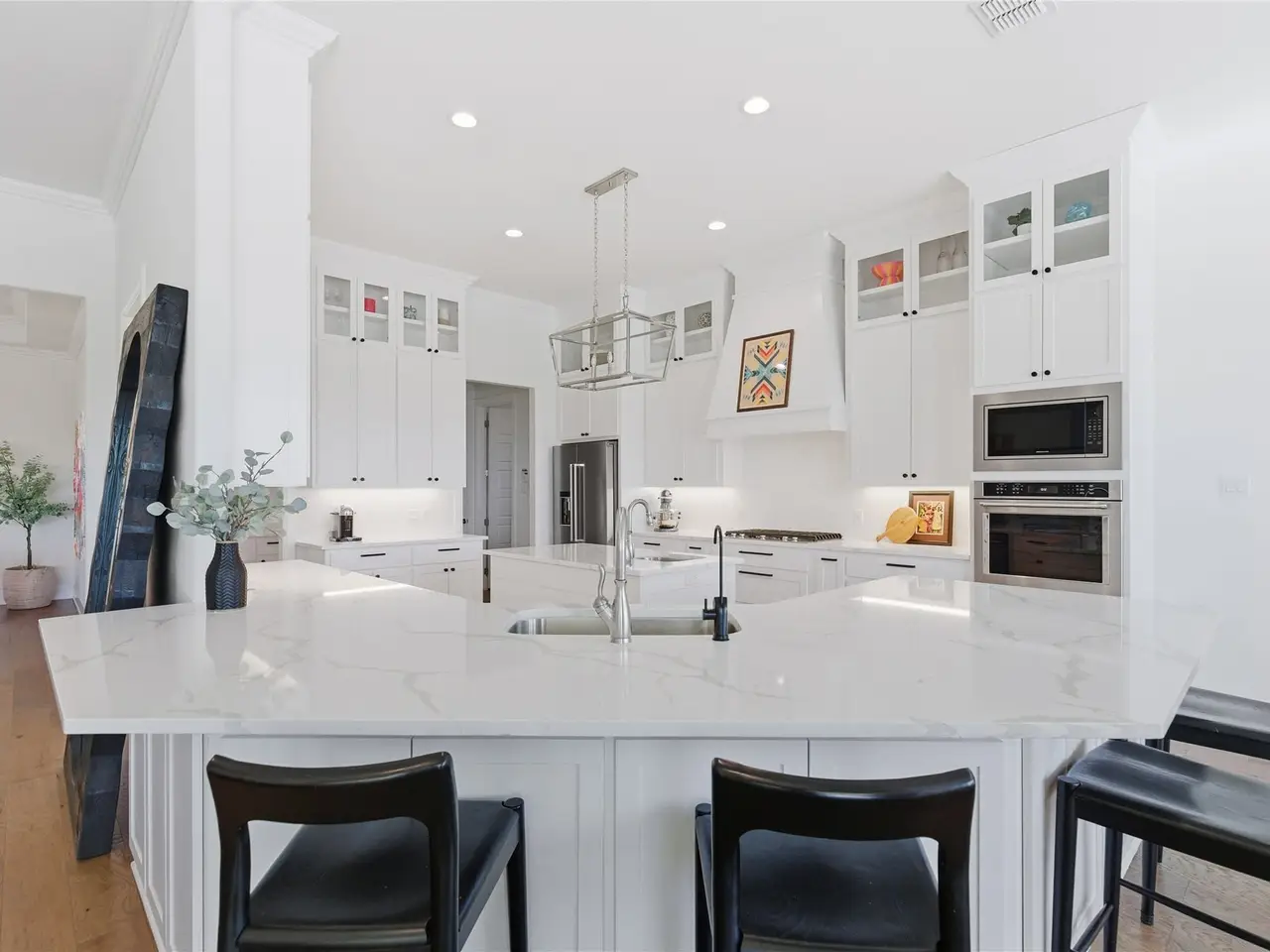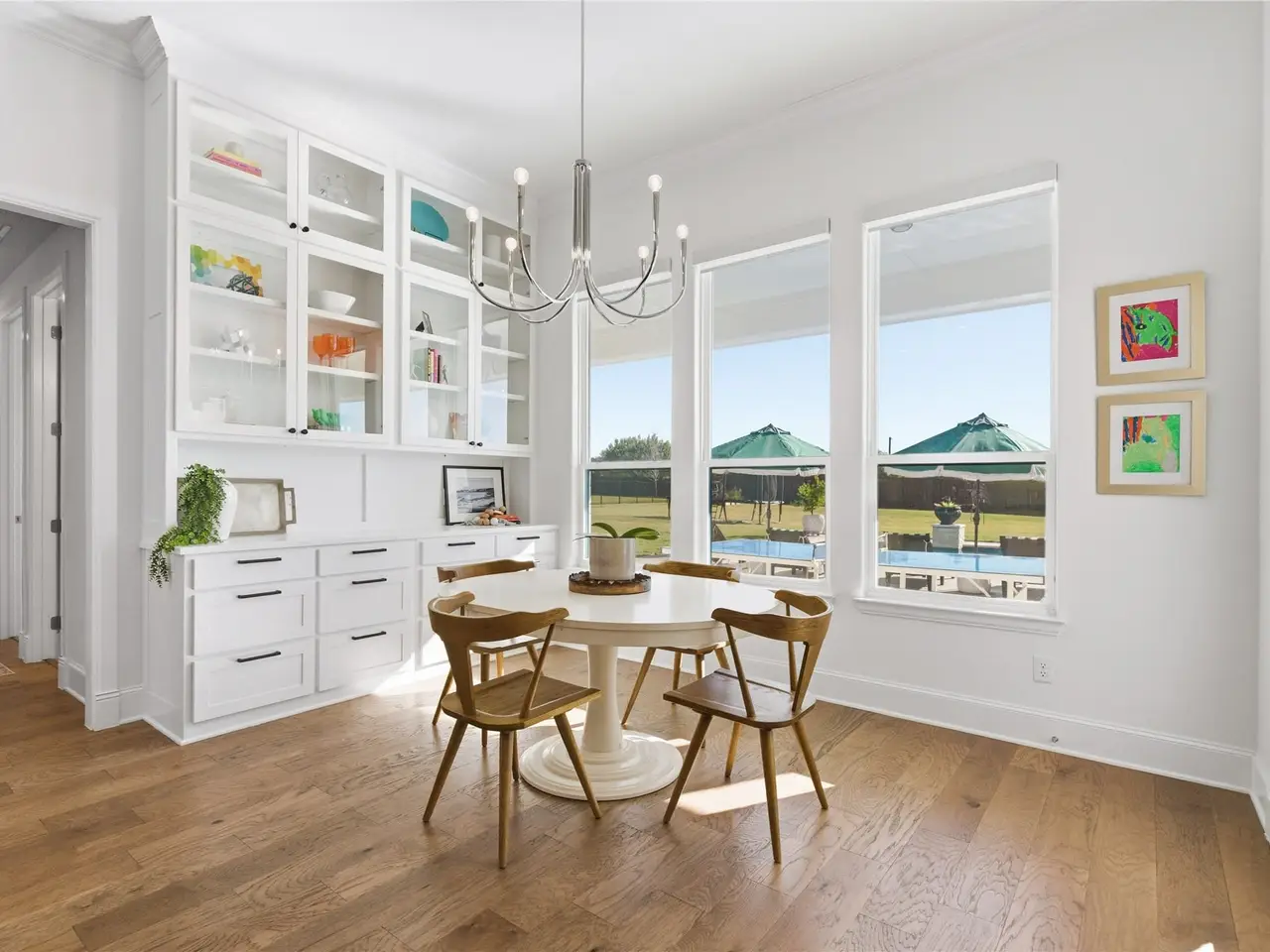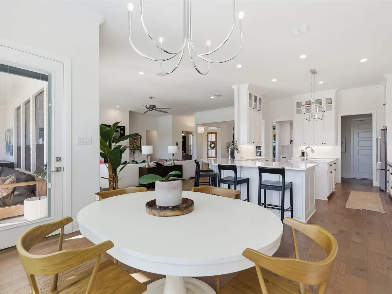 Experience luxury living on over an acre in Aledo ISD with this beautifully appointed home designed for comfort, style, and spacious indoor-outdoor living. A sweeping covered patio overlooks the resort-style pool and lush fenced yard, offering an ideal backdrop for entertaining or unwinding. The light-filled interior embraces an open layout anchored by a grand living room with a fireplace framed by custom built-ins. The elegant dining room showcases coffered ceilings, while the chef-inspired kitchen features quartz countertops, stainless appliances, gas cooktop, double ovens, butlers pantry, and a walk-in pantry. The breakfast room, with its charming built-in buffet and expansive backyard views, is the perfect everyday gathering space. A refined home office with French doors and full wall of built-ins provides the ideal work-from-home setting. The serene primary suite includes vaulted ceilings, a generous sitting area, and a spa-style bath with double vanities, soaking tub, separate shower, and a walk-in closet that conveniently connects to the oversized laundry room. Additional highlights include a second living room with a custom wet bar, a large storage closet, and a flexible bonus room that functions beautifully as a second office, nursery, or home gym.