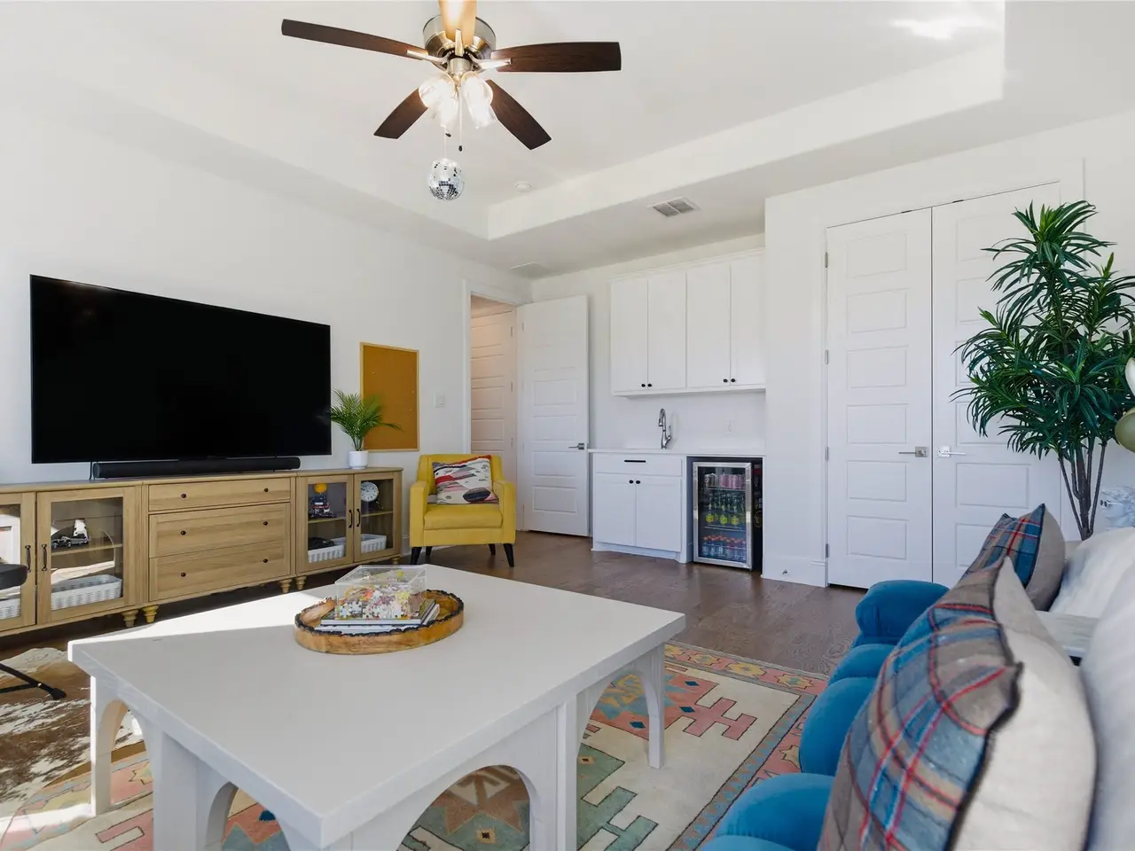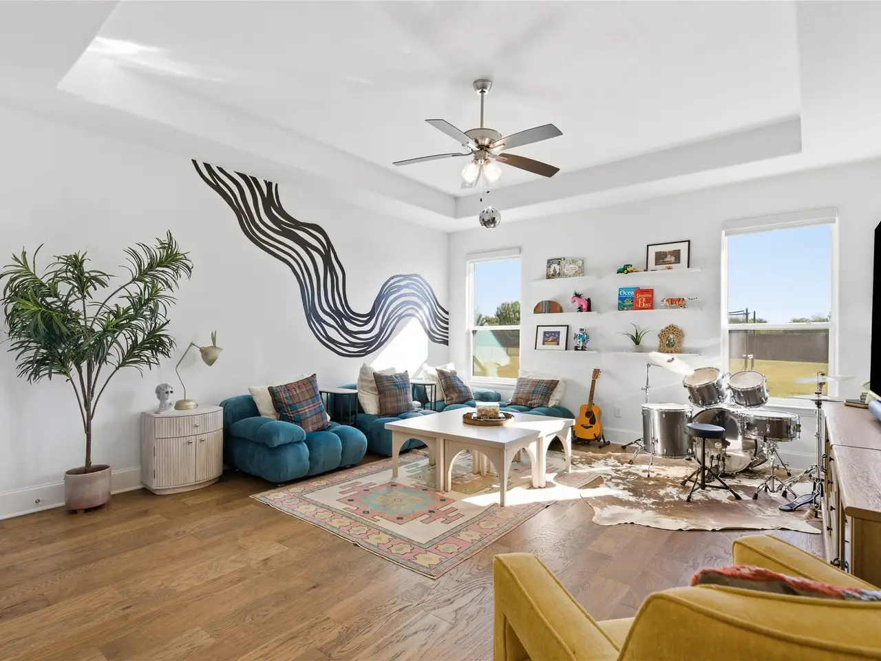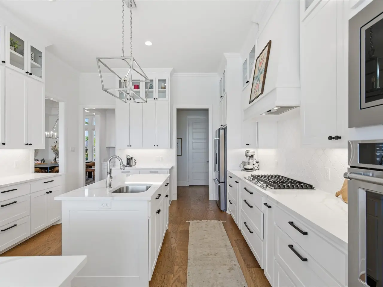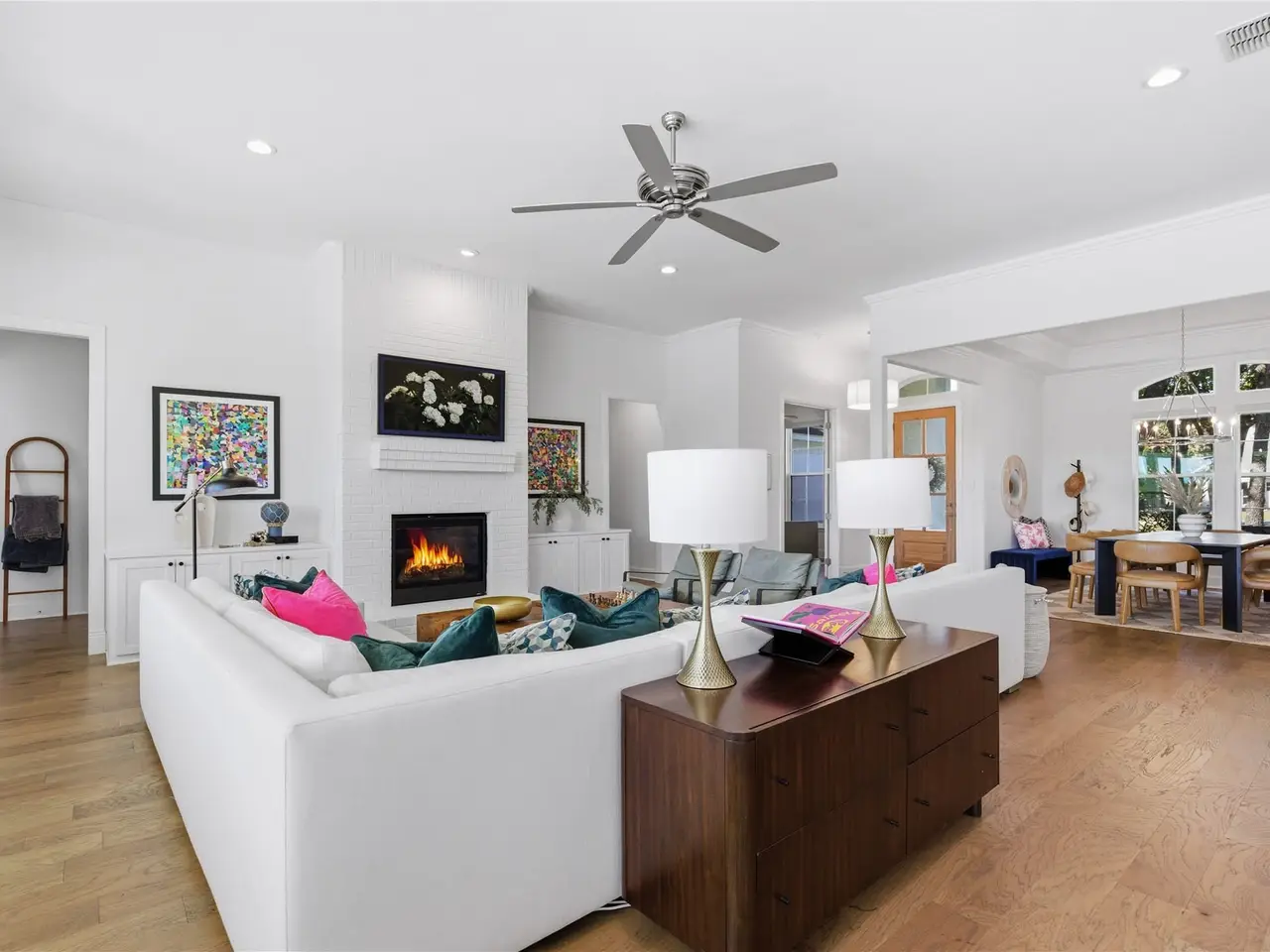Experience luxury living on over an acre in Aledo ISD with this beautifully appointed home designed for comfort, style, and spacious indoor-outdoor living. A sweeping covered patio overlooks the resort-style pool and lush fenced yard, offering an ideal backdrop for entertaining or unwinding. The light-filled interior embraces an open layout anchored by a grand living room with a fireplace framed by custom built-ins. The elegant dining room showcases coffered ceilings, while the chef-inspired kitchen features quartz countertops, stainless appliances, gas cooktop, double ovens, butlers pantry, and a walk-in pantry. The breakfast room, with its charming built-in buffet and expansive backyard views, is the perfect everyday gathering space. A refined home office with French doors and full wall of built-ins provides the ideal work-from-home setting. The serene primary suite includes vaulted ceilings, a generous sitting area, and a spa-style bath with double vanities, soaking tub, separate shower, and a walk-in closet that conveniently connects to the oversized laundry room. Additional highlights include a second living room with a custom wet bar, a large storage closet, and a flexible bonus room that functions beautifully as a second office, nursery, or home gym.