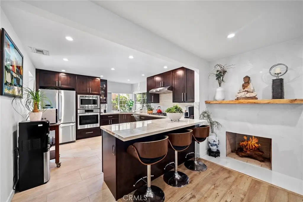 Absolutely stunning and completely remodeled with modern luxury finishes, this show-stopping 4 Bedroom, 3 Bath executive home boasts 2,006 square feet of living space plus a huge 448 square foot enclosed patio for additional living and entertaining, a Brand New Roof and a "finished" 3-car garage with custom storage cabinets; ideally situated on an interior lot in a sought-after neighborhood just steps to award-winning Allan Elementary School and Mile Square Park, it offers central A/C, dual pane French-style windows and sliders, crown molding, extensive recessed lighting, wood laminate flooring, rich dark wood raised-panel interior doors, custom frosted glass closet doors, and dramatic clear-glass staircase railings, while the completely remodeled oversized chef's kitchen is a dream with polished stone countertops and backsplash, breakfast bar, custom dark wood cabinetry with stainless hardware, and stainless appliances including a DCS 5-burner cooktop with vent hood, Bosch oven, built-in microwave, and dishwasher; all 3 bathrooms have been reimagined with modern vanities, designer tile with mosaic inlay surrounds, and frameless glass enclosures, with the primary bath showcasing dual sinks and the downstairs bath a stylish glass vessel sink; the four spacious bedrooms include a primary suite with retreat area and private balcony patio; this exceptional home boasts beautiful curb appeal with manicured landscaping, brick raised planters with flowering gardens, brick-accented driveway and walkway leading to double entry doors with beveled glass, and inside the open flowing floorplan features a formal living room with dining area, spacious family room with fireplace and breakfast nook, all open to the kitchen and the enclosed patio making it perfect for entertaining, while the park-like backyard is an oasis with a huge lawn, brick patio, block wall fencing, stately palms, and lush gardens--all centrally located near shopping, restaurants, top schools, parks, golf, the beach, and with easy freeway access.
