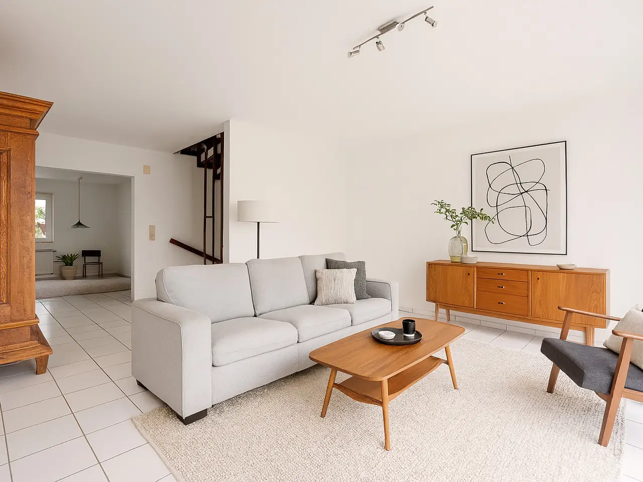 A charming mid-terrace house is for sale, which was built in 1988 and is characterized by an appealing room layout and well-kept furnishings. The house is situated on a plot of approx. 154 m² and offers enough space for a family with a living area of approx. 151 m². The property has a total of five rooms, including four spacious bedrooms, which offer a variety of uses. The room layout is functional and makes ideal use of the available space. A highlight of this property is the light-flooded living room, which invites you to spend cozy hours and serves as a central meeting point for the family. The property is furnished to a normal quality standard and offers a pleasant living atmosphere. Two well-equipped bathrooms offer plenty of space for the whole family and guarantee a stress-free start to the day. The outside area of the house is also well designed and offers possibilities for individual use and design. Whether as a play area for the children or as a cozy seating area - the private garden offers numerous options for relaxing outdoors or planning activities. The location of the house impresses with its excellent connections to the surrounding infrastructure. Shopping facilities, schools and public transport are within easy reach and guarantee a high level of living comfort. The surrounding area offers a wide range of leisure activities and invites you to relax and explore. In summary, this property offers an attractive combination of generous living space, a practical room layout and well-maintained fixtures and fittings. It is ideal for families looking for a home in a pleasant and well-connected residential area.