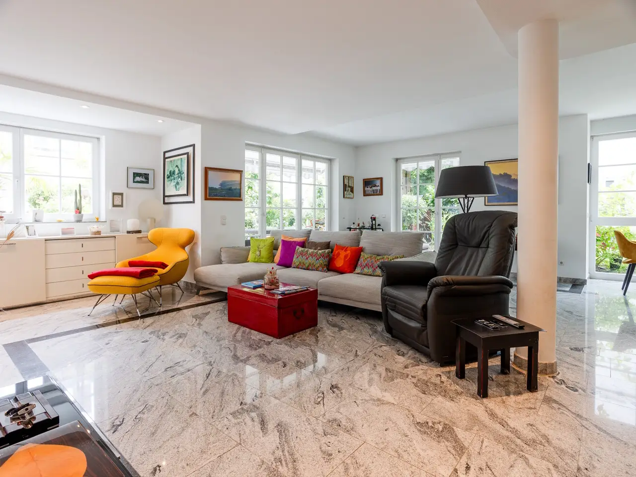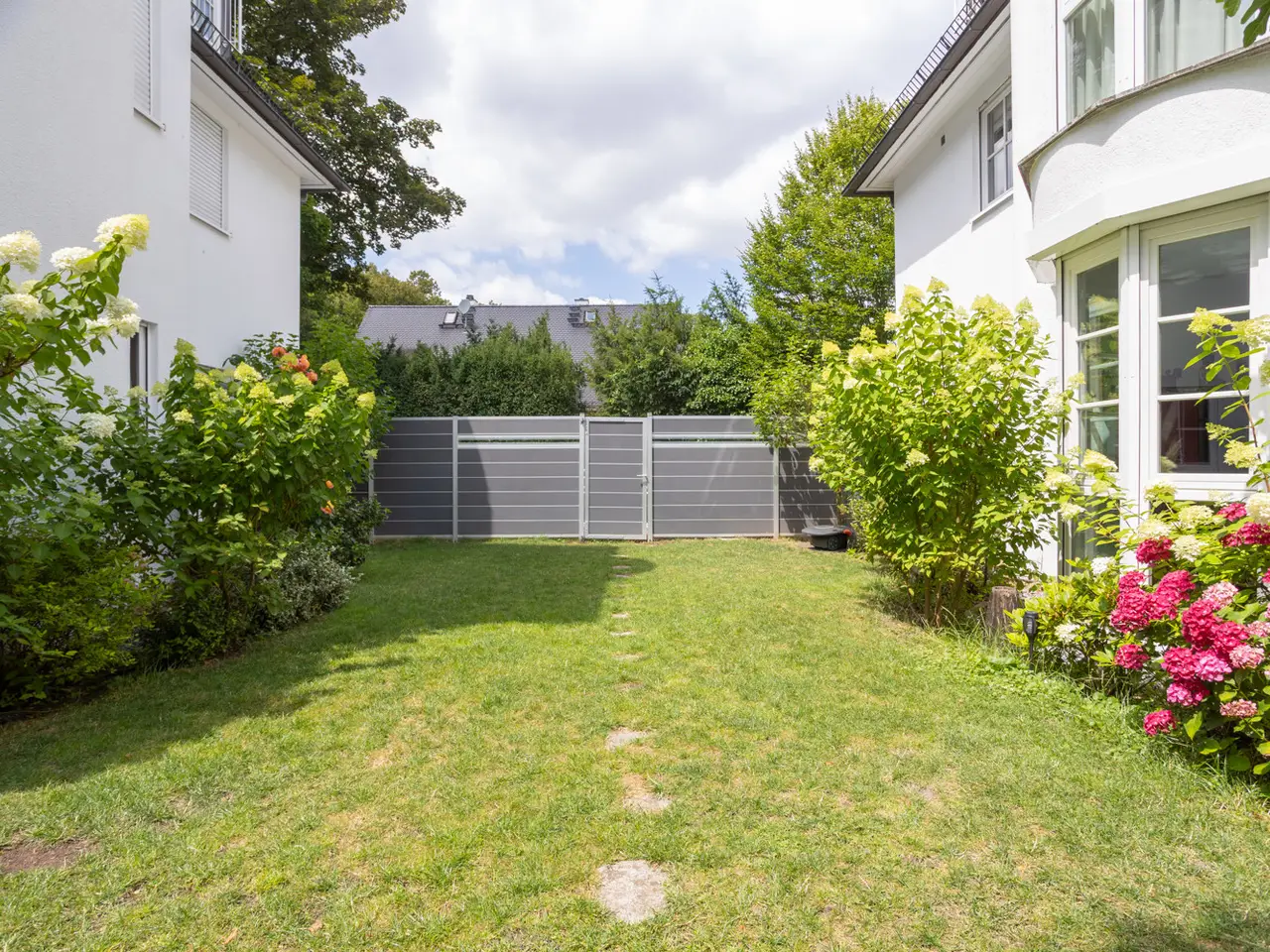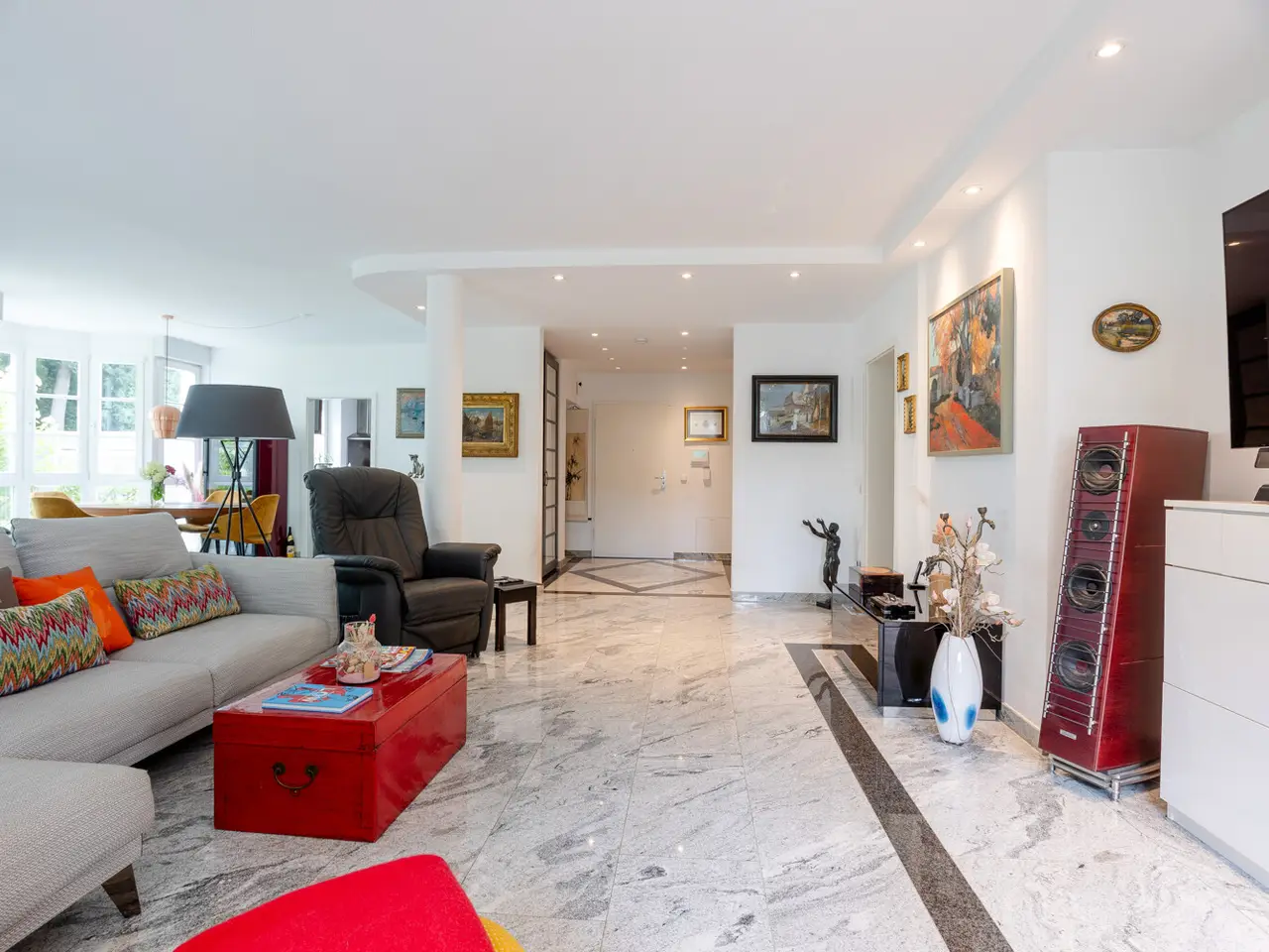 This exclusive three-bedroom garden apartment is located in a luxurious villa built in 1998 and offers a high-quality and spacious living ambience on approximately 138 m² of living space. The open-plan living/dining area is fitted with elegant marble flooring and impresses with floor-to-ceiling windows that create a bright, friendly atmosphere. From here, you have direct access to the terrace and the spacious, well-kept garden of around 300 m² - an ideal place to relax or socialize outdoors. The apartment has a comfortable bedroom and a further room that can be used flexibly as a children's room or office. The stylish daylight bathroom is equipped with a double washbasin, a bathtub and a separate shower; there is also a guest WC. A fitted kitchen is available and blends harmoniously into the elegant living concept. Two practical storage rooms within the apartment offer additional storage space. The apartment also has two underground parking spaces. The entire property is located in a quiet, upmarket residential area and combines privacy with stylish living at a high level. Two cellar rooms round off this offer. This garden apartment is the perfect choice for anyone looking for an exclusive home with generous space and high-quality fixtures and fittings in a quiet location.
