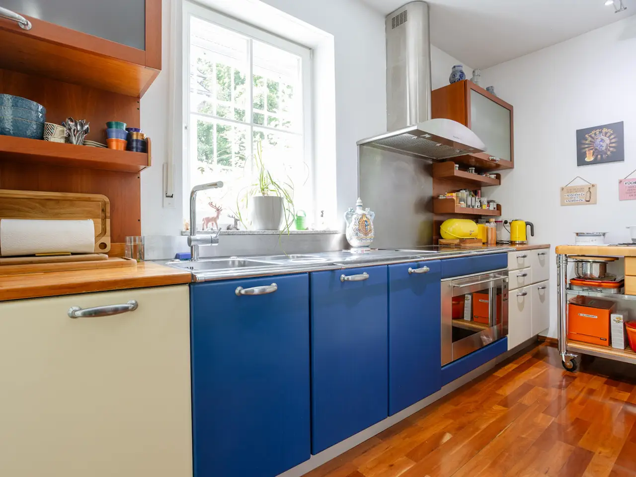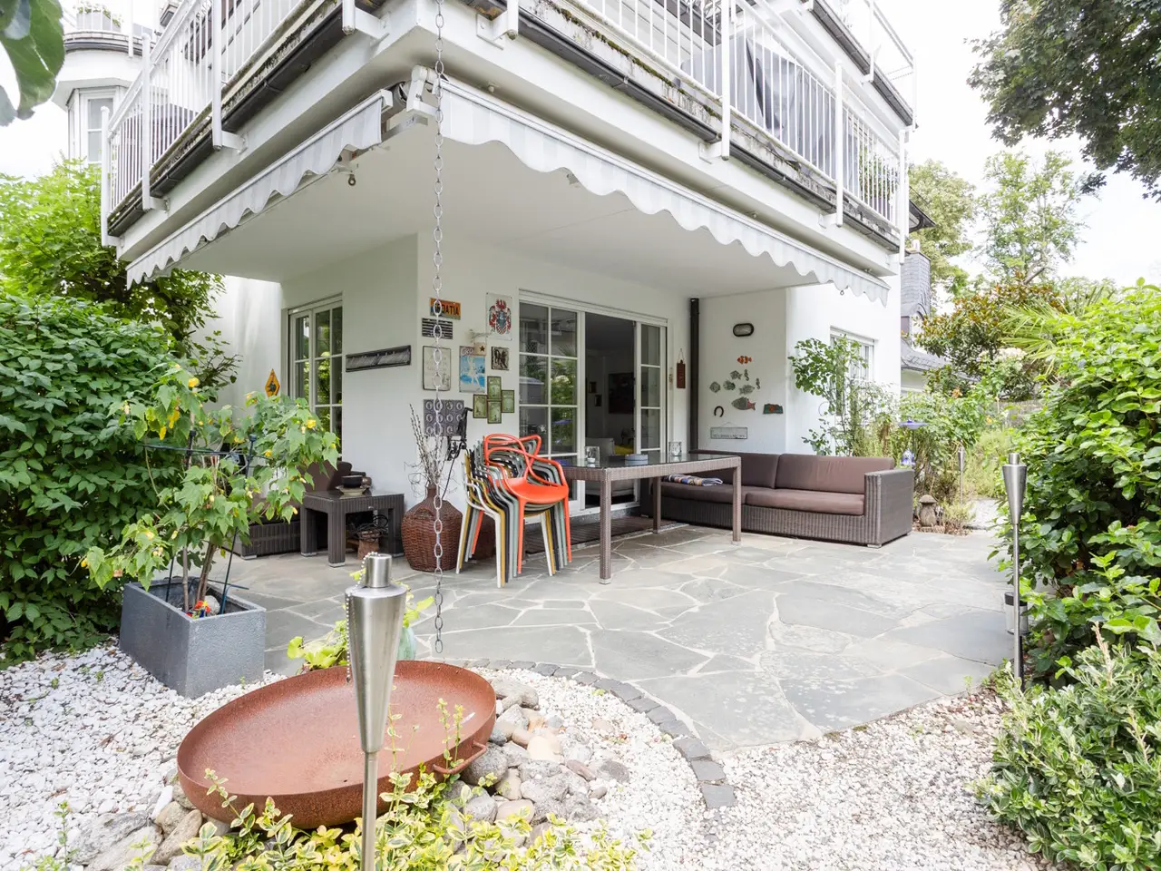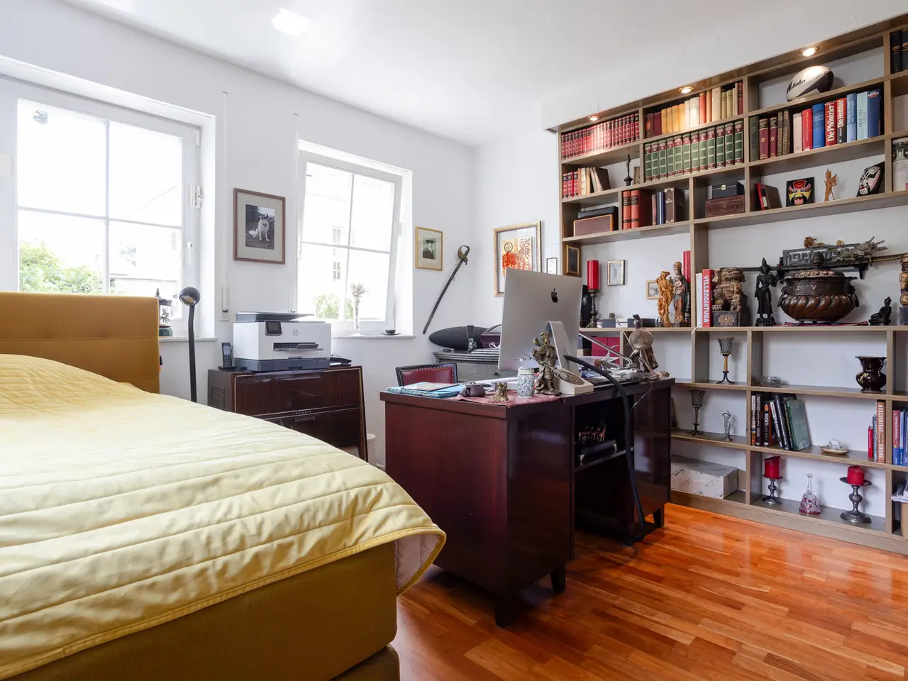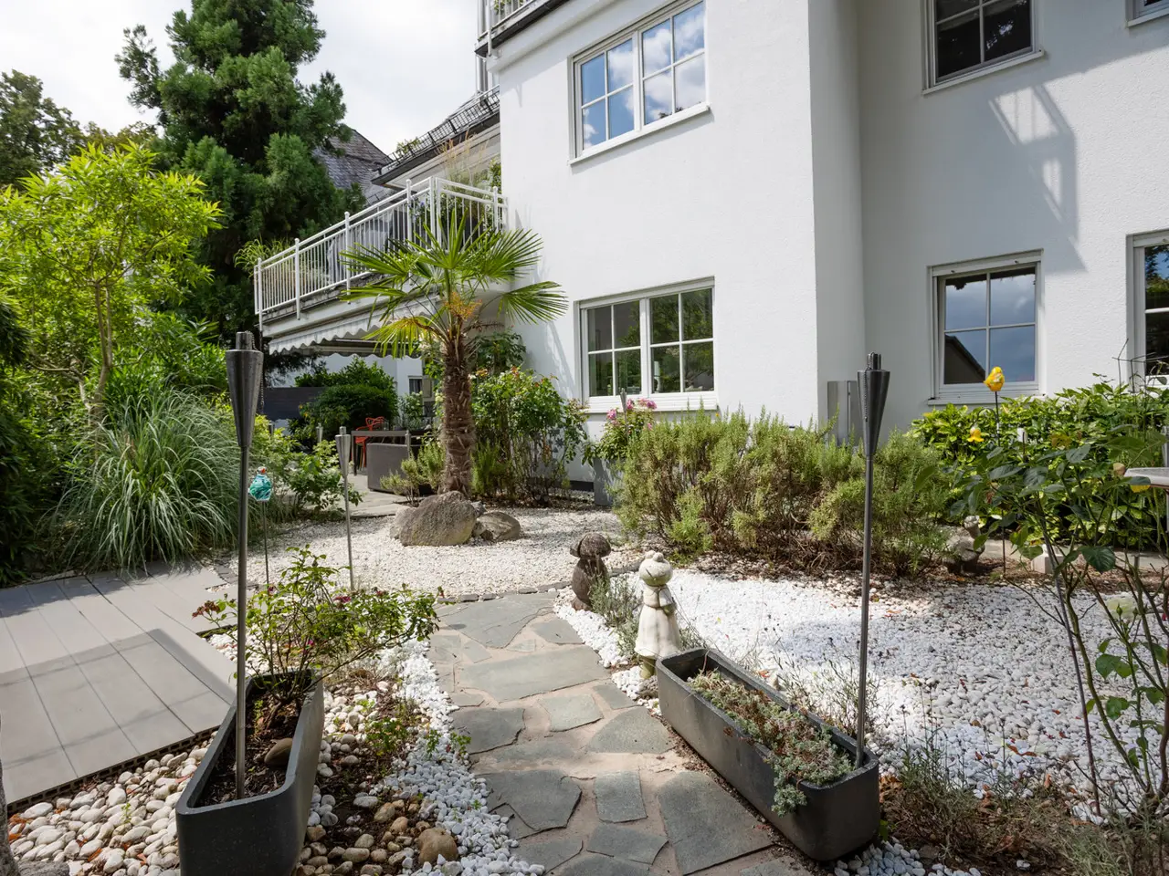 This exclusive three-bedroom garden apartment is located in a luxurious villa built in 1998 and offers a high-quality and spacious living ambience on approximately 138 m² of living space. The open-plan living/dining area is fitted with elegant marble flooring and impresses with floor-to-ceiling windows that create a bright, friendly atmosphere. From here, you have direct access to the terrace and the spacious, well-kept garden of around 300 m² - an ideal place to relax or socialize outdoors. The apartment has a comfortable bedroom and a further room that can be used flexibly as a children's room or office. The stylish daylight bathroom is equipped with a double washbasin, a bathtub and a separate shower; there is also a guest WC. A fitted kitchen is available and blends harmoniously into the elegant living concept. Two practical storage rooms within the apartment offer additional storage space. The apartment also has two underground parking spaces. The entire property is located in a quiet, upmarket residential area and combines privacy with stylish living at a high level. Two cellar rooms round off this offer. This garden apartment is the perfect choice for anyone looking for an exclusive home with generous space and high-quality fixtures and fittings in a quiet location.
