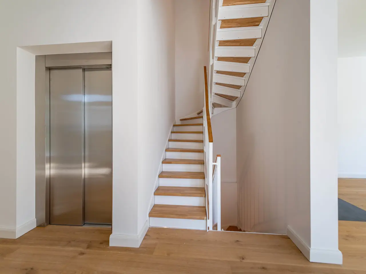 In an exclusive villa location in the sought-after Dichterviertel district, this stylish detached to semi-detached house was completed in 2024 and offers modern living comfort on first occupancy. The property boasts classic architecture combined with contemporary technology and high-quality fixtures and fittings. Generous living space extends over four floors, complemented by an elegant, barrier-free elevator that conveniently connects all levels. The house has a converted basement of around 53 m² and an attic studio of around 21 m² - both areas have high-quality fittings, heating and parquet flooring and are ideal for offices, hobbies, fitness or wellness. The division into two residential units allows for flexible use - whether as a spacious family home for a large family, as a multi-generational home or for a combination of living and renting. The furnishings leave nothing to be desired: Fine materials such as marble, porcelain stoneware and real wood parquet create an elegant ambience. Designer bathrooms, triple-glazed wooden windows, a fireplace and spacious terraces underline the high-quality character of the property. In terms of technology, the house boasts a smart home system, underfloor heating, an energy-efficient heat pump and an A+ energy rating. The charming mansard roof with natural slate and dormers is not only visually appealing, but also excellently insulated. The garden borders on the well-tended green spaces of neighboring city villas and offers a peaceful, green oasis for families, children or guests. The large terrace on the second floor offers a beautiful view of the greenery. A garage with electric door and an outdoor parking space offer additional convenience. This property is ideal for families, couples or senior citizens looking for a high-quality, ready-to-occupy new-build property with a garden in a quiet yet central location - both for owner-occupation and as a future-proof investment with rental potential.