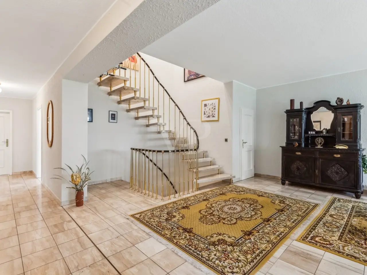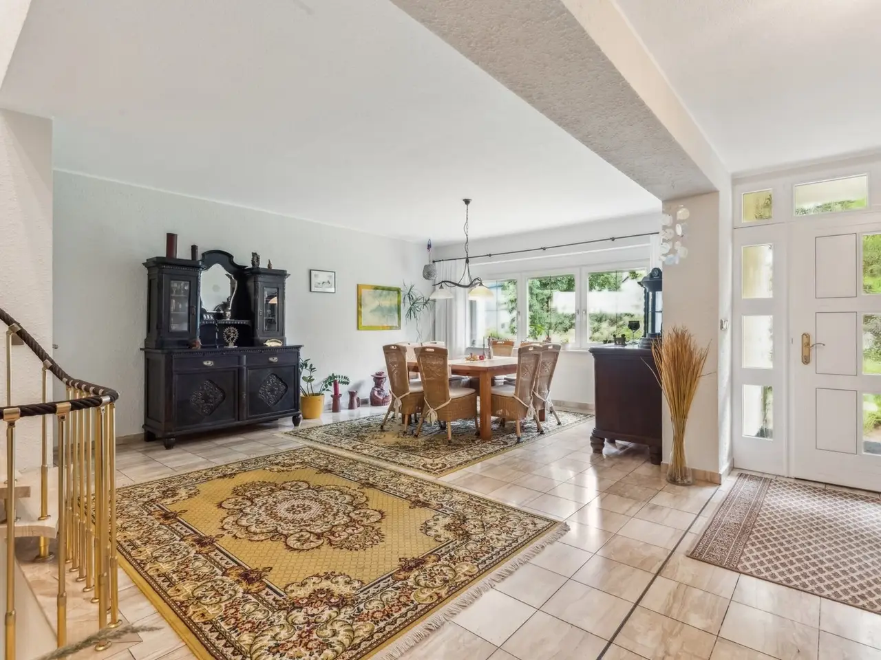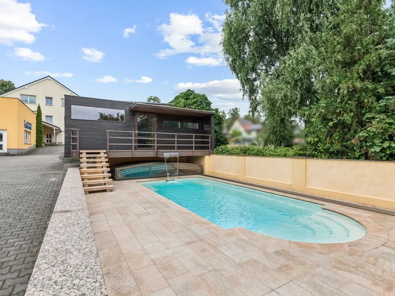 This attractive and prestigious detached house stands on a generous 2,151 m² plot and has a living space of approx. 257 m². Built in 1972 and extensively modernized in 1992, the property offers space for individual living and numerous other possible uses. There is an outbuilding with a usable area of approx. 260 m², which was previously used commercially. The property is ideal for large families or a multi-generational household. It is also possible to combine living and working under one roof and thus conveniently combine both areas. There are no limits to the imagination. The property comprises a total of five rooms spread over two floors. They offer a high degree of flexibility in terms of use. On the first floor there is a spacious entrance area and the living room. There is also a well-equipped kitchen with enough space for a dining area and direct access to the large terrace. This serves as a central meeting point for family and guests. The outdoor area leaves nothing to be desired. The well-tended garden offers numerous retreats and plenty of space for leisure activities. A heated saltwater swimming pool allows swimming all year round. A garden sauna completes the offer for relaxing hours in your own home. A double garage and a garden shed with storage space are available for vehicles. There are also seven additional parking spaces. The house is located in a residential area with good public transport links and close to shops, schools and leisure facilities. The spacious garden is quiet. This ensures a high quality of life and easy access to everyday amenities. In summary, this detached house offers an excellent opportunity for families looking for a spacious and well-located place to live or for people who want to run a business close to home. Thanks to its solid construction and the modernizations carried out, it is ready to welcome future occupants with its many benefits. A viewing is well worthwhile to experience the versatile charm of this property in person and discover its many possibilities. For further information or to arrange a viewing appointment, please do not hesitate to contact us at any time.