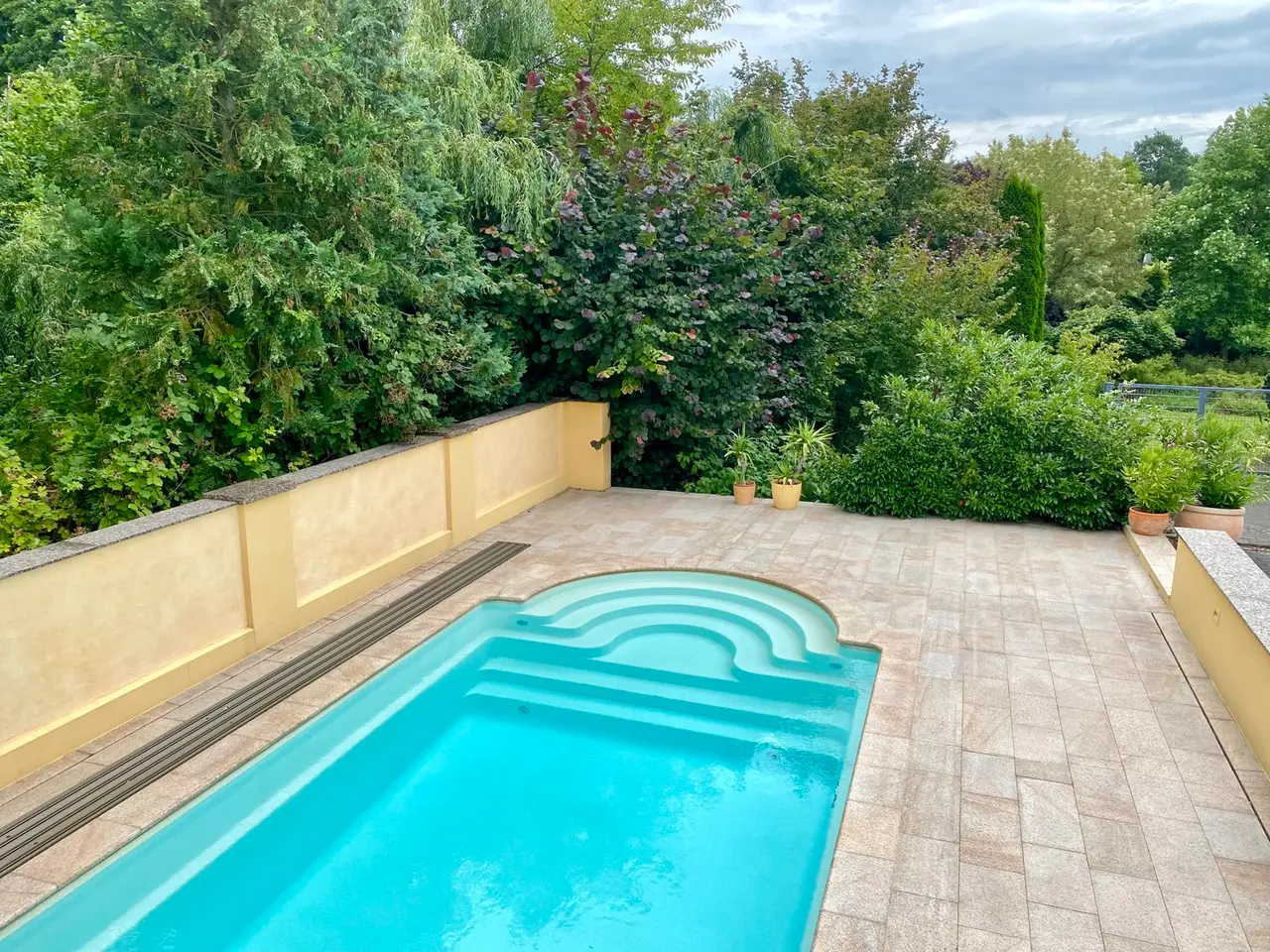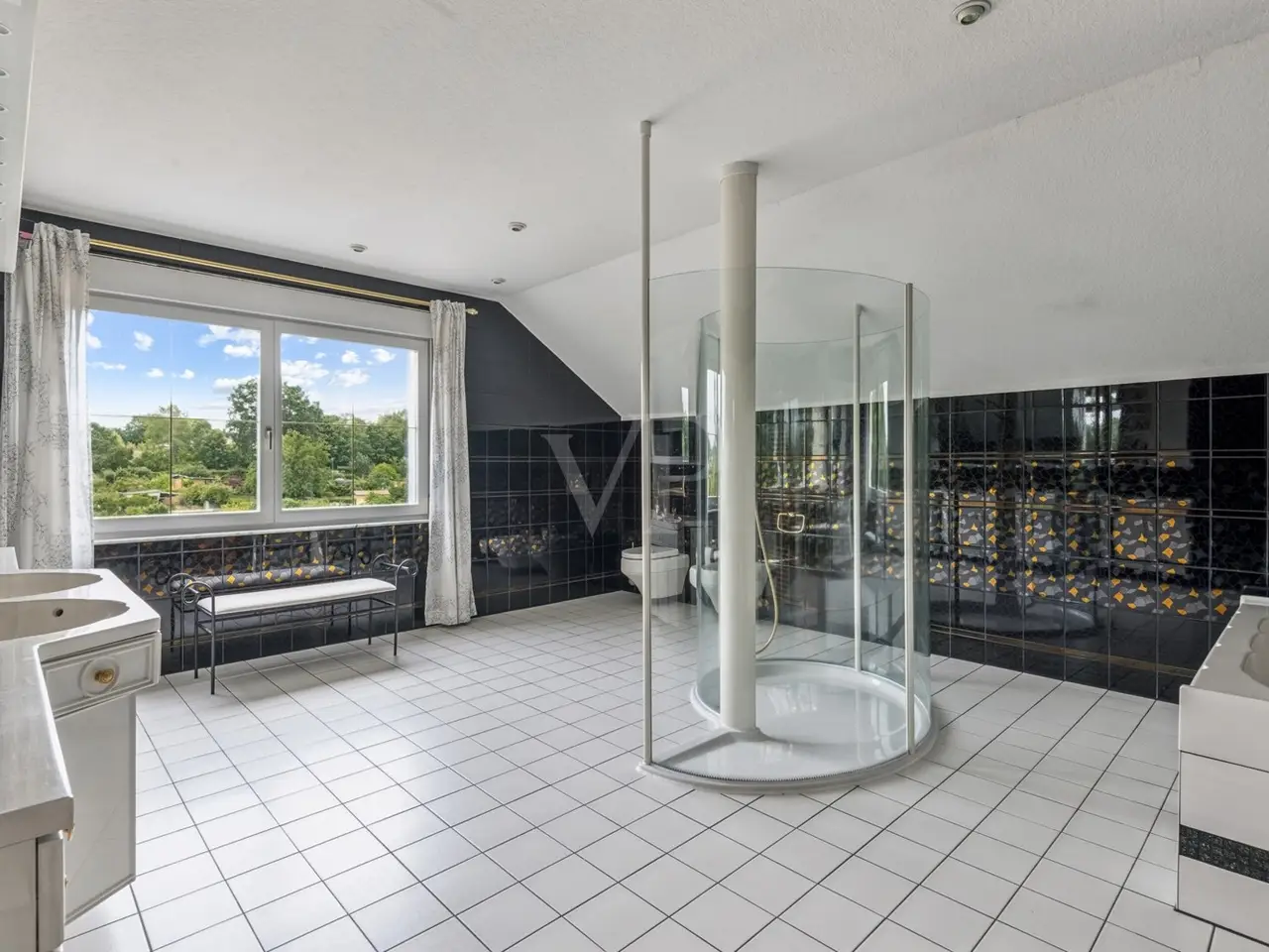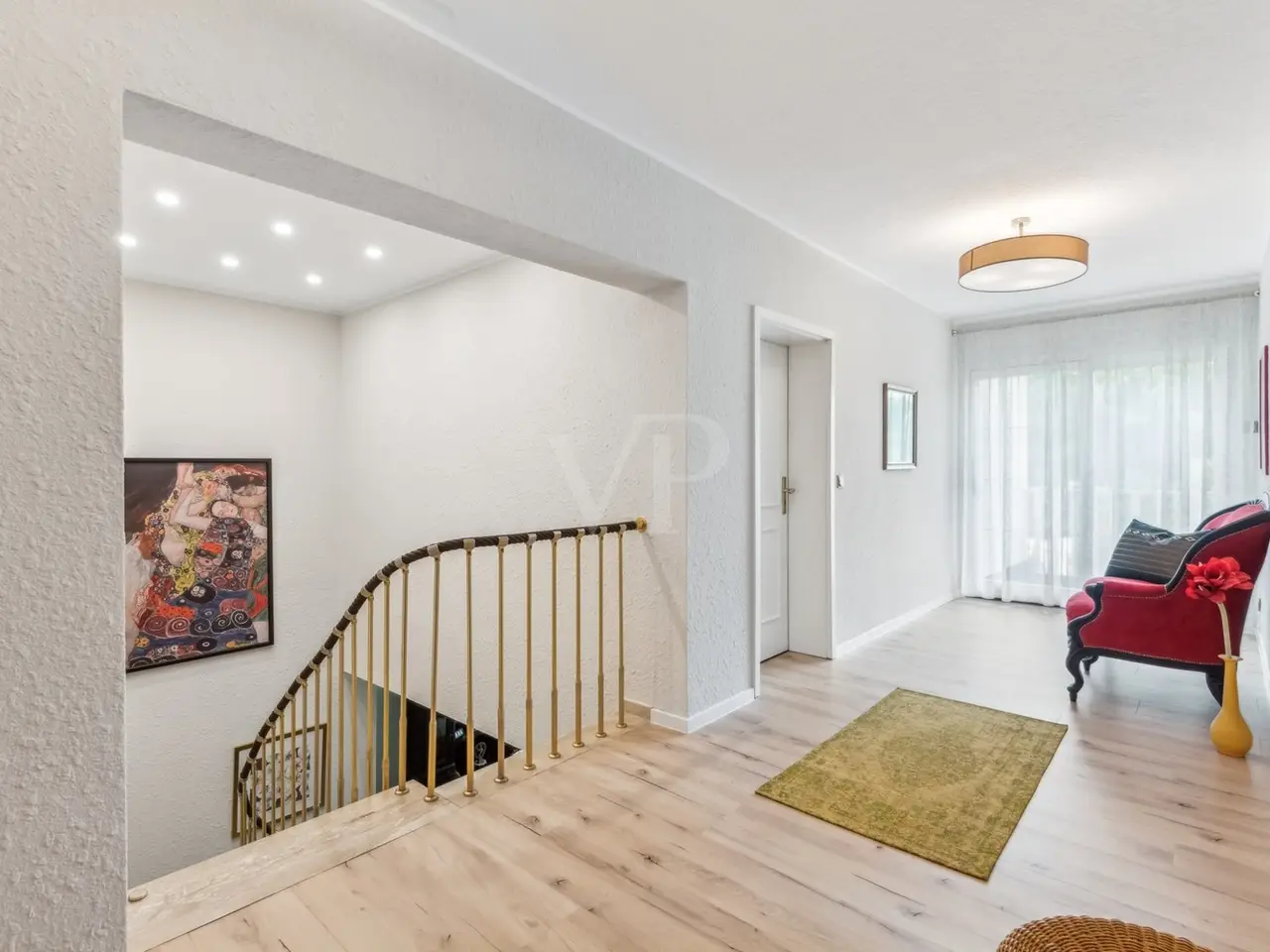 This attractive and prestigious detached house stands on a generous 2,151 m² plot and has a living space of approx. 257 m². Built in 1972 and extensively modernized in 1992, the property offers space for individual living and numerous other possible uses. There is an outbuilding with a usable area of approx. 260 m², which was previously used commercially. The property is ideal for large families or a multi-generational household. It is also possible to combine living and working under one roof and thus conveniently combine both areas. There are no limits to the imagination. The property comprises a total of five rooms spread over two floors. They offer a high degree of flexibility in terms of use. On the first floor there is a spacious entrance area and the living room. There is also a well-equipped kitchen with enough space for a dining area and direct access to the large terrace. This serves as a central meeting point for family and guests. The outdoor area leaves nothing to be desired. The well-tended garden offers numerous retreats and plenty of space for leisure activities. A heated saltwater swimming pool allows swimming all year round. A garden sauna completes the offer for relaxing hours in your own home. A double garage and a garden shed with storage space are available for vehicles. There are also seven additional parking spaces. The house is located in a residential area with good public transport links and close to shops, schools and leisure facilities. The spacious garden is quiet. This ensures a high quality of life and easy access to everyday amenities. In summary, this detached house offers an excellent opportunity for families looking for a spacious and well-located place to live or for people who want to run a business close to home. Thanks to its solid construction and the modernizations carried out, it is ready to welcome future occupants with its many benefits. A viewing is well worthwhile to experience the versatile charm of this property in person and discover its many possibilities. For further information or to arrange a viewing appointment, please do not hesitate to contact us at any time.