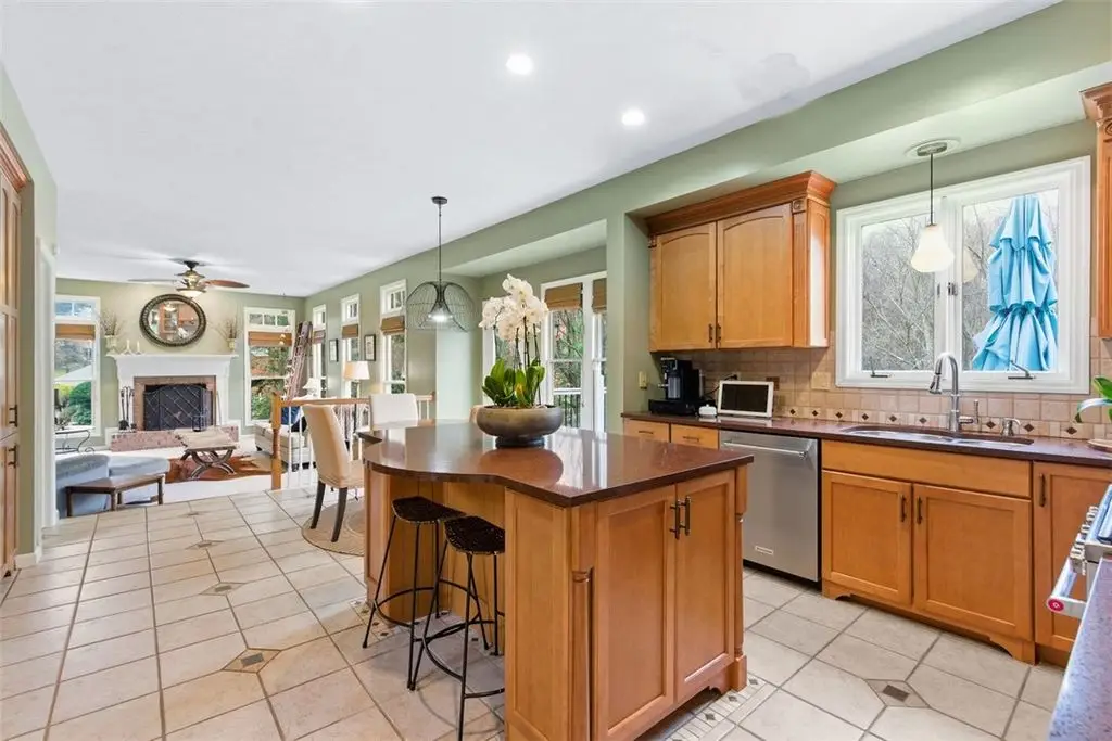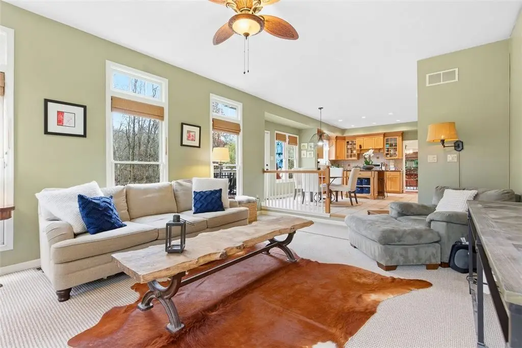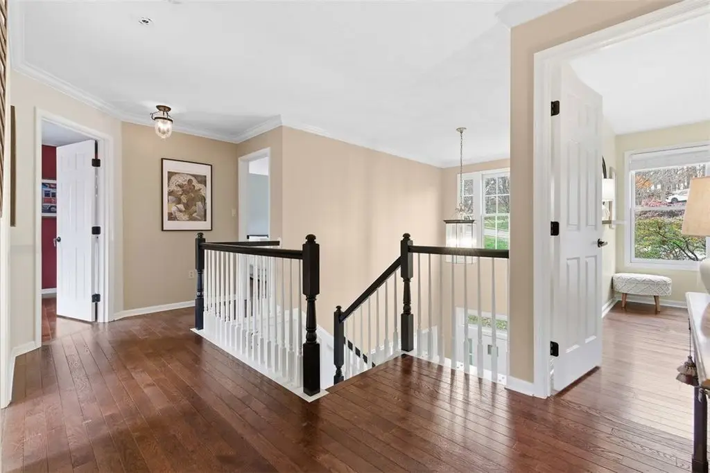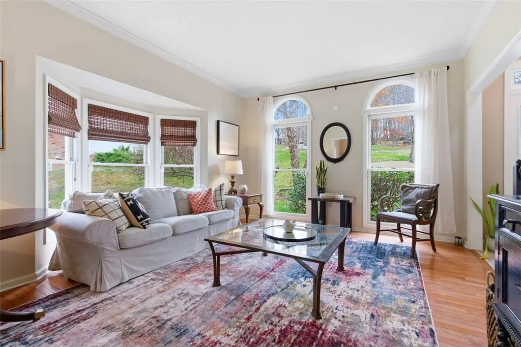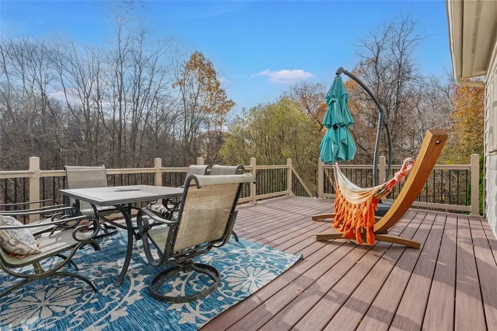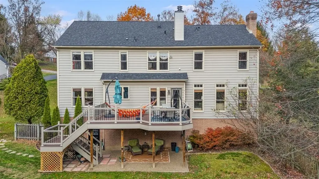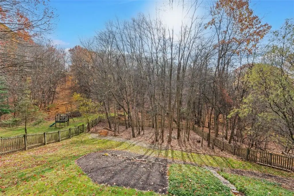 This beautiful 4 bedroom home is perfectly nestled in a private cul-de-sac pool community in Franklin Park and North Allegheny schools. The adjoining living room and dining room areas are elevated by 2 bay windows and hardwood floors, while the designated office/den serves perfectly for working at home. The nicely appointed kitchen,with custom cabinetry, flows openly to the family room and provides access to the large deck overlooking the private fenced yard and manicured woods. The mudroom is also conveniently located off the kitchen and is accessed directly from the attached garage. The grand 33x16 owner's suite features a vaulted ceiling, sitting area with custom book shelves and a cozy gas fireplace. The en-suite bath features double walk-in closets,dual vanities,a whirlpool tub and a walk-in shower. The guest bedroom also provides a private en-suite bath. Minutes to I-79/279, downtown and Whole Foods. New roof,new deck,new gutter guards and fresh landscaping below the deck