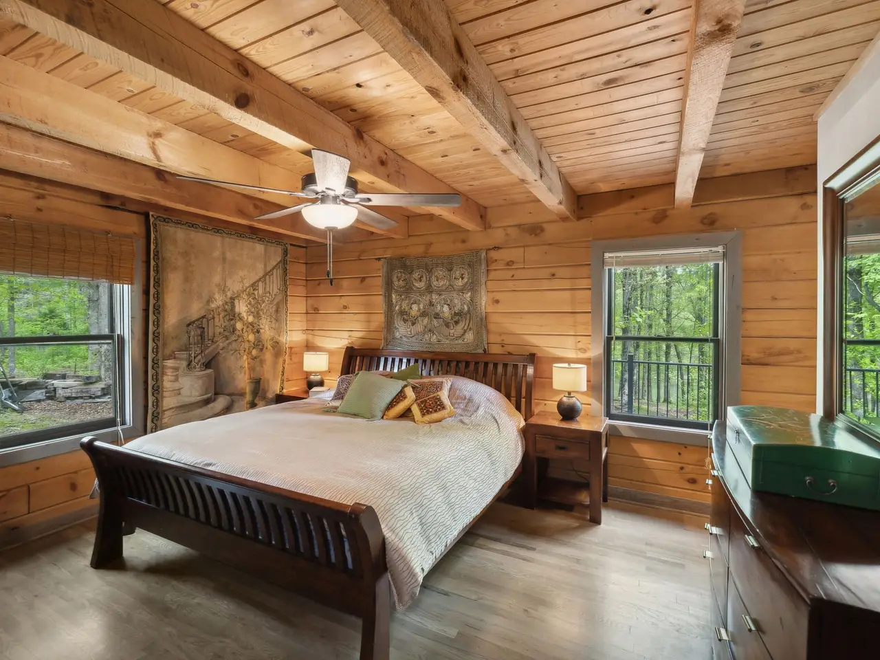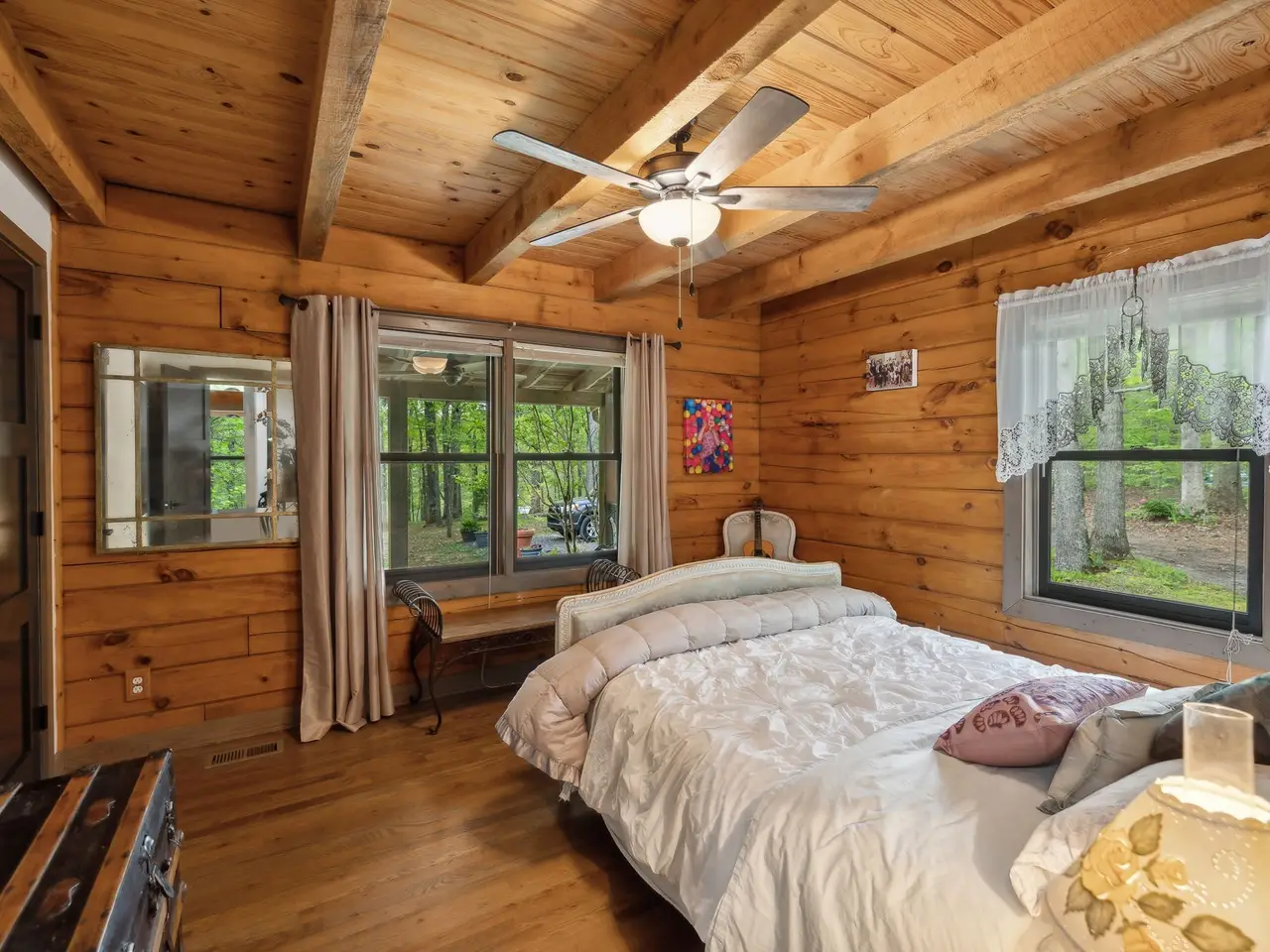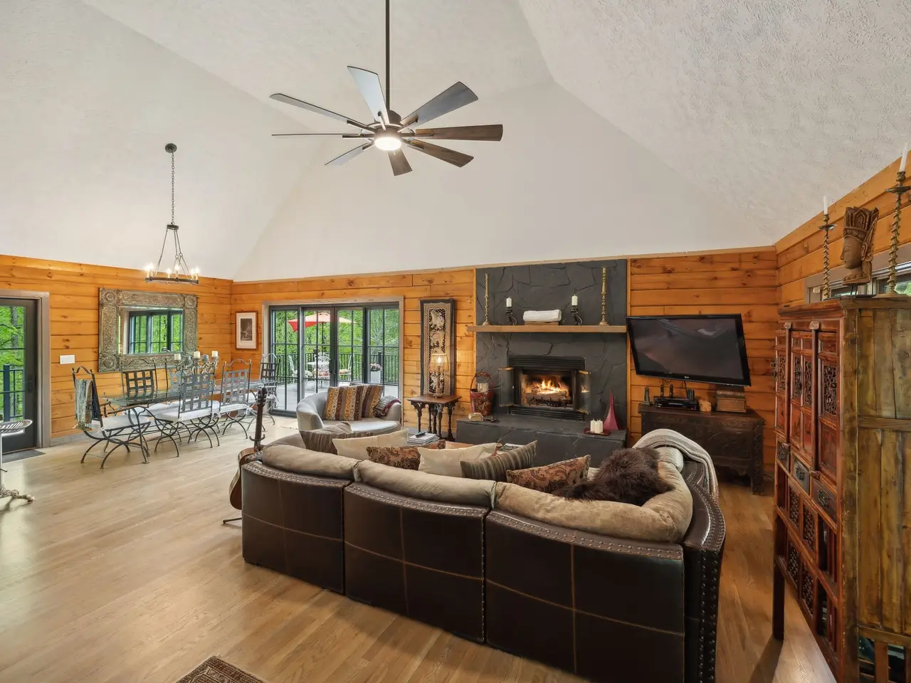 Incredible lake views!! Countryside serenity meets luxury living in this immaculately restored and fully renovated Leiper's Fork log home. Tucked into a coveted rural location in Middle Tennessee that rarely sees homes like this one hit the market, enjoy curated details and modern amenities built into a flowing masterpiece design that retains classic aesthetics and hand-selected vintage accents like salvaged barn wood and farmhouse fixtures. The main level features an open floor plan for shared moments with guests, plus bedrooms and full baths. Also enjoy a luxury chef's kitchen with all-new Dacor appliances, custom maple and oak cabinetry, quartz countertops, a cozy fireplace, oversized windows, and full-lite sliding doors that wash the home's interior in warm natural light. The upper level has inviting private accommodations with a work-from-home office & open flex space. The lower level boasts a fully finished suite with private entry, a full kitchen and bath, and a game room, perfect for weekend guest stays or separate living quarters. With primary suites and en suite baths on both the main and upper levels, options abound for the owners to choose their private sanctuary. Septic permitted for 3 bedrooms -- home includes additional flexible spaces that could be used as an office, bonus, or guest room. Outdoors, the almost 6-acre parcel at the end of a private drive on a shaded knoll features peaceful, wooded terrain and views of a 3-acre aquamarine lake, all of which can be enjoyed from the home's outdoor living amenities like the welcoming fire pit, 60ft of covered porch space, sun-kissed backyard deck, and relaxing spa pool. At 5 minutes to Leiper's Fork, 25 minutes to downtown Franklin, 45 minutes to downtown Nashville, and 50 minutes to BNA, your perfect country life awaits.