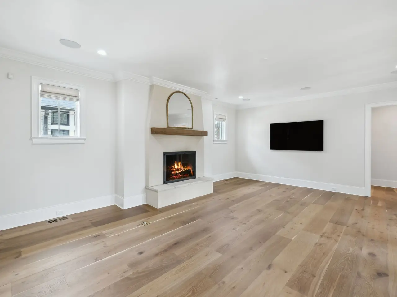 • Floor-to-ceiling stone fireplace