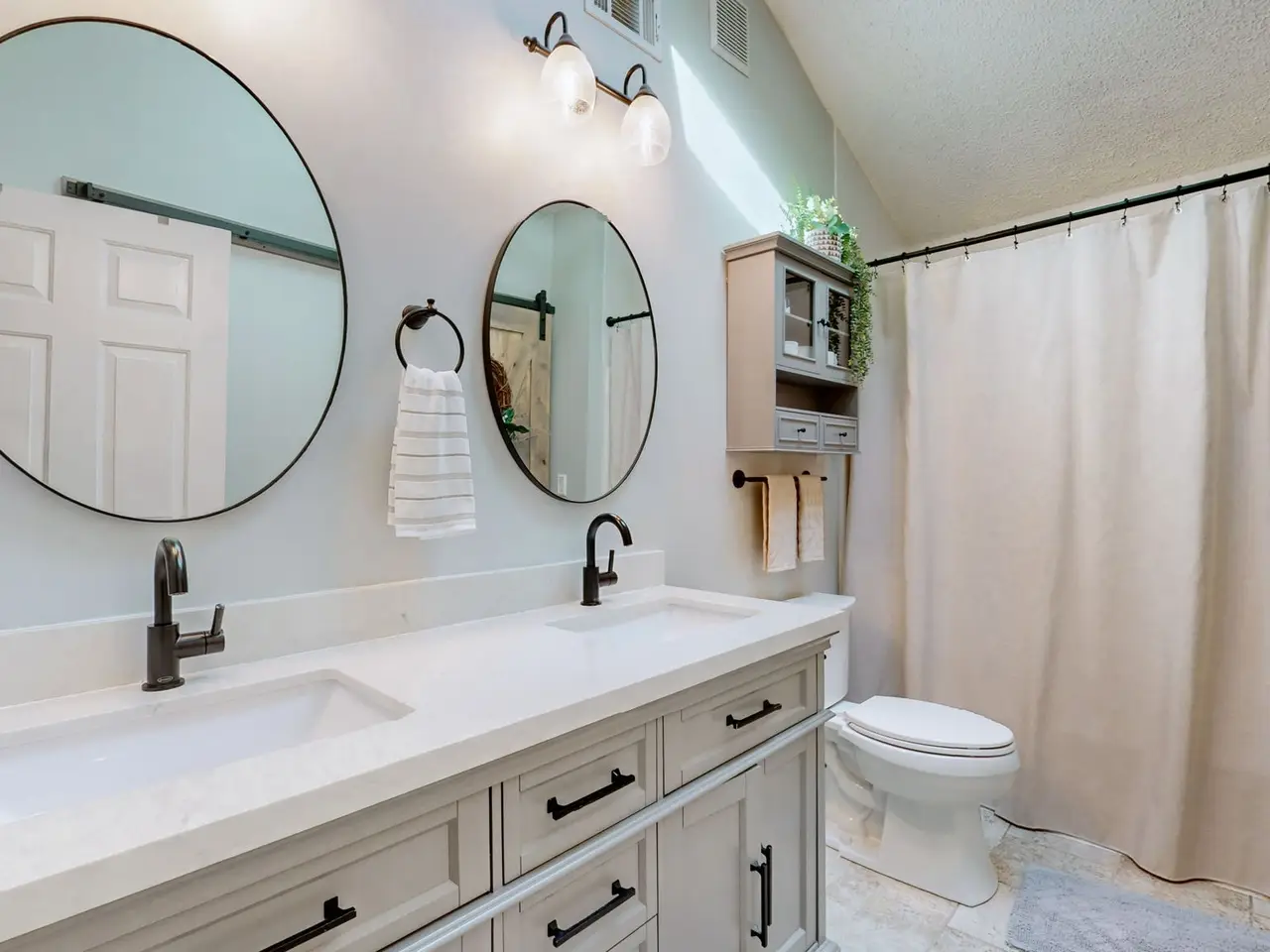 Fabulous updated home with stunning separate in-law home! A front porch invites you into this completely renovated interior that is Amazing opportunity to live in one house and rent the other! Two homes thoughtfully attached for in-laws or separate living* Updated throughout with on trend colors* Soaring ceilings in the elegant and functional Kitchen, custom cabinetry and upscale appliances make cooking a delight* Amazing theatre room makes movie time an unforgettable experience with the magic of cinema in your own home* Enjoy outdoor entertaining on the massive deck with a grilling area and the covered patio and hot tub overlooking plush plants and private sanctuary* Enter the separate in-law home through iron gates and be welcomed with vaulted ceilings and a stacked stone fireplace! A Chef's delight Kitchen with custom cabinets, quartz countertops, stainless appliances and tons of storage* Open and airy great room that is drenched in natural light and extends to a screened porch overlooking the lush lawn* A luxurious Primary retreat with a spa-like bath enhances this separate home* Truly an incredible opportunity to own 2 homes for you and your family members or as a rental income.