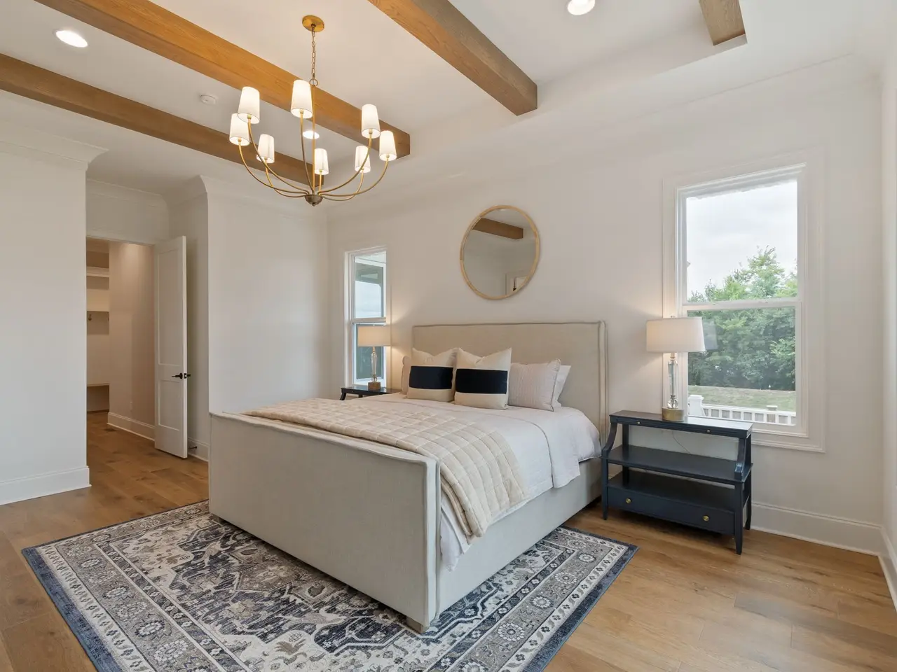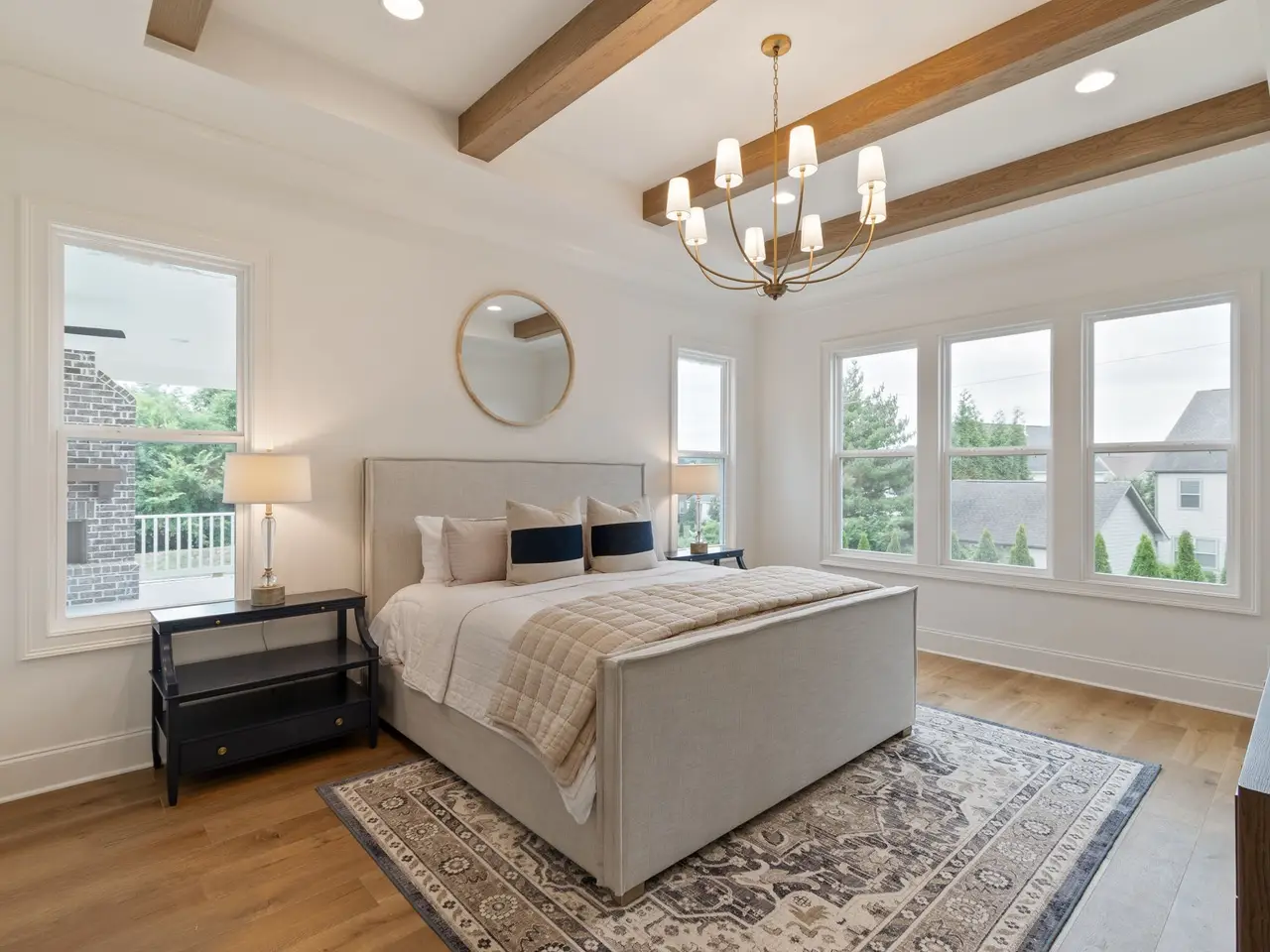 This stunning four bedroom, 4.5-bath home offers the perfect blend of elegance, comfort, and functionality--inside and out. Ideally situated on a desirable corner lot in the sought-after Southbrooke community, the charming exterior sets the tone for the thoughtfully designed interior filled with high-end finishes, custom details, and exceptional craftsmanship throughout. Step inside to discover a bright, open layout with amazing natural light, hardwood flooring on the main level, and crisp white finishes accented by warm natural wood tones, creating a clean yet inviting aesthetic. The chef's kitchen is a true showstopper, featuring ceiling-height custom cabinetry, a full-height tile backsplash, upgraded appliances, a spacious center island, and a walk-in pantry with built-in shelving. The adjacent living room exudes character with a coffered ceiling, built-ins flanking a gas fireplace, and large windows that flood the space with light. Just off the kitchen is a functional drop zone with built-in hooks, bench seating, and cubbies--perfect for keeping daily life organized. The main-level primary suite is a serene retreat with a natural wood beam ceiling, a spa-like bath featuring a standalone soaking tub, an oversized walk-in shower with floor-to-ceiling tile, double vanities with ample storage, and a custom walk-in closet. For added convenience, the laundry room is located just steps away. A private office on the main floor provides the ideal work-from-home setup, while the upper level offers three generously sized bedrooms, three full bathrooms, plus a spacious bonus/rec room perfect for relaxing or entertaining. Enjoy outdoor living year-round on the covered back porch with a wood-burning fireplace, overlooking the fully fenced backyard. The covered front porch offers yet another cozy space to enjoy Middle Tennessee's beautiful seasons. This meticulously maintained, move-in-ready home truly has it all--luxury, livability, and location.