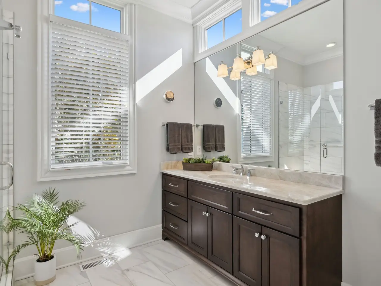 • Spa-like marble primary bath