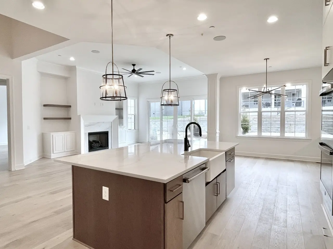 Wow - Major Price Reduction - Stunning Open Floor Plan in Prime Location! Step through elegant double doors into an extended foyer that welcomes you into this thoughtfully designed home. A spacious formal dining room connects seamlessly to a stylish Butler's pantry--perfect for entertaining. The dedicated office features a cozy built-in fireplace, ideal for remote work or quiet reading. The heart of the home is the open-concept kitchen, complete with under-cabinet lighting, an industrial-style gas stove, a large island, and a generous walk-in pantry. It flows effortlessly into the inviting family room with a fireplace and the casual dining area, which opens by glass sliding doors to a covered porch--complete with a third fireplace for year-round enjoyment. The main level also features a luxurious primary suite with a spa-like bath and two walk-in closets. A guest suite on the main floor includes a private en suite bath, providing comfort and privacy. Upstairs, you'll find three additional bedrooms, each with their own en suite bath, a loft area, a spacious bonus room, and unfinished storage space with potential to be finished as a future media room or flex space. This home also offers a three-car garage as well. Lot 5 is the largest homesite in Laguna and at the end of a cul-de-sac, a beautiful setting. Laguna is an excellent location--conveniently close to the interstate, restaurants, and downtown Franklin shops. Hurry--there's still time to select your interior colors!