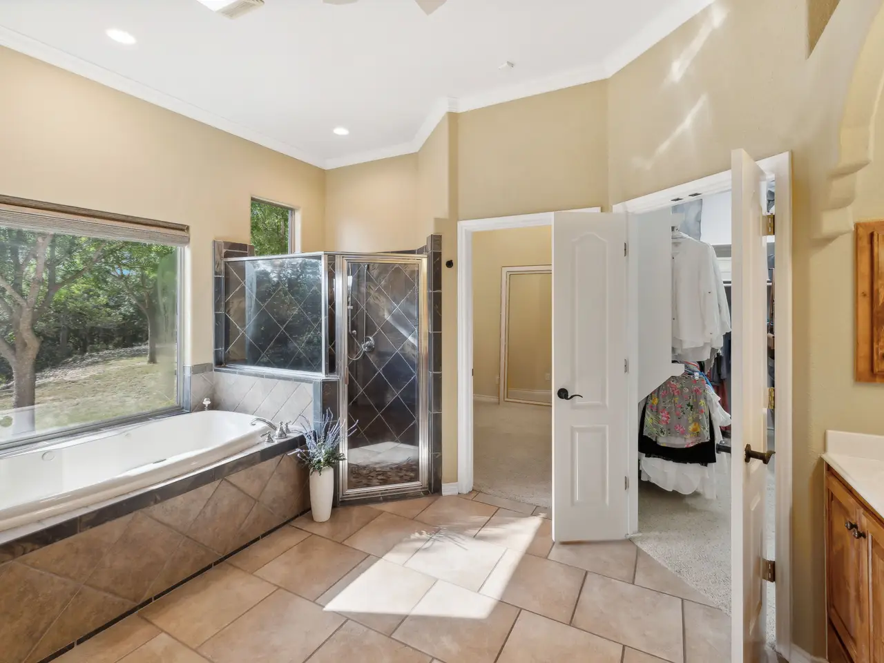 Primary suite with whirlpool tub