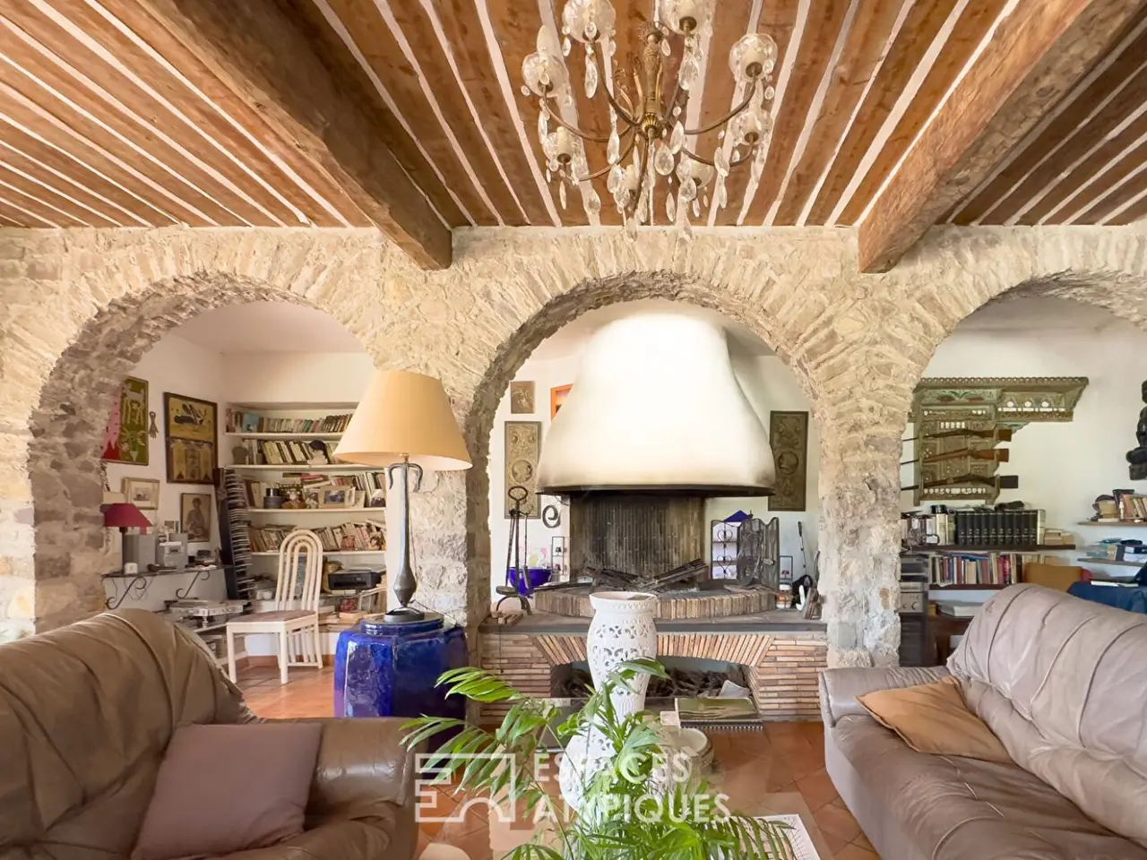 Emblematic Villa of the Tour de Mare*PRICE DROP*Sublime property steeped in a fascinating history and unrivaled charm, nestled on the peaks of the Tour de Mare, in the heart of the charming town of Frejus.This villa, which was once the famous restaurant 'La Pizzeria Rustique', represents a unique opportunity to acquire a real real estate gem, full of tradition and prestige.This villa has also been the place of stay of many celebrities, charmed by its warm atmosphere and its enchanting setting.This sumptuous residence offers an exceptional living space spread over a generous area of 500m2, nestled in the heart of a vast green plot of 2390m2.The main part, extending over 226m2, reveals a bright living room of 70m2 with a mezzanine, a spacious kitchen equipped with a pizza oven, adjoining a bedroom with its bathroom. These spaces open onto a terrace bathed in sunlight, offering a breathtaking view of a 12x6m swimming pool, ideal for moments of relaxation and conviviality.A gallery with stone arches leads to four independent studios, and upstairs, a charming two-room apartment offering privacy and comfort to your guests. The ground floor porch gives access to another bedroom with private bathroom, as well as a two-room loft apartment of approximately 120 m2. This apartment consists of a bright living room, an open kitchen, a comfortable bedroom and a modern bathroom.The dominant position of this property offers breathtaking panoramic views of the surrounding area, making it truly unique. At the top of this residence proudly stands the belvedere, a place imbued with magic and history, decorated with an orientation table signed by the renowned ceramic artist Roger Pelissier. Although only a few fragments remain, this element adds a touch of authenticity and character to this exceptional ensemble.This exceptional property embodies a true architectural gem, steeped in history and memories. Its idyllic living environment, harmoniously combining tradition and modernity, offers a unique opportunity to create unforgettable moments and shape your own story in this emblematic place of the Tour de Mare.TGV at 4kmBeach at 15minShop and marina at 10minSchool at 8minHighway at 5minAirport at 56KmENERGY CLASS: C (96kWh/m2/year) / CLIMATE CLASS: C (16kg CO2/m2/year). Estimated average amount of annual energy expenditure for standard use, established using energy prices for 2015: between EUR1,784 and EUR2,401.Vincent DURAND - AdvisorRSAC : 828 209 809 - FrejusREF. 11609Additional information* 12 rooms* 7 bedrooms* 2 bathrooms* 6 shower rooms* 1 floor in the building* Outdoor space : 2390 SQM* Parking : 4 parking spaces* Property tax : 3 318 €Energy Performance CertificateEPC : 96 kWhEP/m2.year* A 450GHG : 16 kgeqCO2/m2.year* A 80Agency feesThe fees include VAT and are payable by the vendorMediatorMediation Franchise-Consommateurswww.mediation-franchise.com29 Boulevard de Courcelles 75008 ParisInformation on the risks to which this property is exposed is available on the Geohazards website : www.georisques.gouv.fr