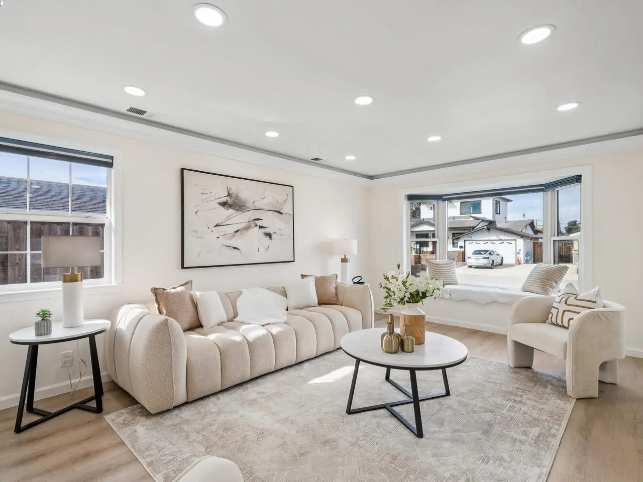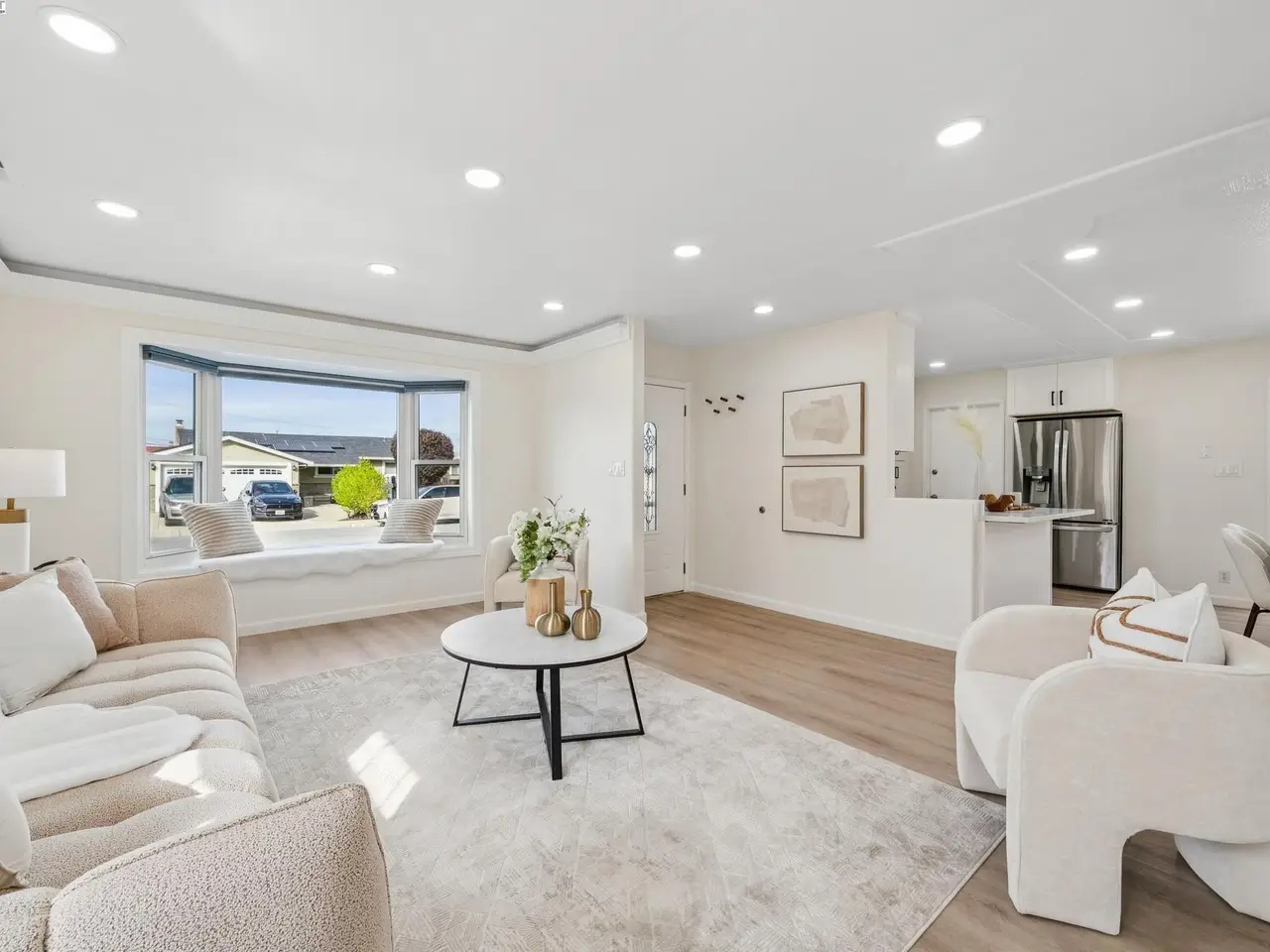 Pristine NORTHWEST facing home with beautiful upgrades! This light-filled residence boasts an open-concept design which blends style, function, and comfort in one. The heart of the home is the brand-new gourmet kitchen featuring sleek stainless-steel appliances, modern cabinetry, and elegant finishes that flow seamlessly into the spacious family room—perfect for both everyday living and entertaining. Both bathrooms have been tastefully upgraded, and every detail of this home has been thoughtfully curated, from new honeycomb blinds on all windows to smart switches and recessed lighting throughout. Enjoy year-round comfort with a complete HVAC upgrade—including a new furnace, new A/C, ductwork, and smart thermostat. Copper plumbing throughout. Step outside to a spacious, professionally landscaped backyard featuring stamped concrete and plenty of room to relax or entertain. The flex space in the yard is perfect for a home office or creative studio, complete with new flooring and paint. The epoxy-finished garage floor adds the final touch of polish and practicality. Easy access to 880, Dumbarton Bridge, 237, BART, and major tech hubs. You don't want to miss this!