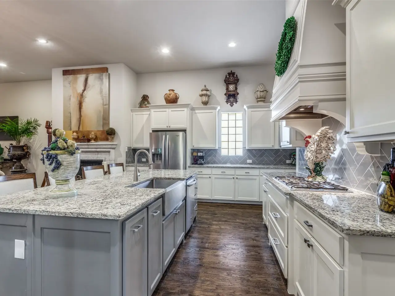 Welcome to this meticulously kept SINGLE STORY charming home by Darling Homes w 3-car garage located across from a scenic greenbelt in The Canals at Grand Park! This home offers luxury and over-the-top upgrades throughout. Open concept floor plan with hand-scraped hardwood floors from the foyer through the study, living & kitchen areas. The chefs kitchen features white shaker cabinets, a custom vent hood, gas cooktop, double ovens, stainless steel appliances and a large island for entertaining. Two kitchen pantries, a separate laundry room & mudroom with built-ins provide excellent storage. The living and dining areas flow seamlessly into a newly constructed entertainer's Dream den, offering an add'l 634 sq ft equipped with wood burning fireplace, chimney, Central air & heat, BULL 6 burner gas grill & vent hood, 2 beverage fridges, ceiling fans, space heaters, recessed lighting, 2 folding Marvin doors, rich stone flooring and ample bar seating. Other features of this home include a split bedroom layout, spacious master & secondary bedrooms, walk-in closets, and private baths. A private double door study offers flexible uses for music or fitness. Other home upgrades include a new Class 4 shingle roof, gutters & vents; Generac 26KW whole-home generator with 200 AMP automatic transfer switch; artificial turf backyard with 3 hole putting green; new stone flowerbeds & new landscaping; 6 newly planted trees; dusk to dawn front porch & landscape lighting; remote-controlled motorized driveway gate;newly installed garage doors, motors & fans; epoxy-coated garage floors; newly installed side yard fencing plus extensive restaining; 3 newly installed chandeliers & ceiling fans. HOA maintains front yard landscaping for easy living. Frisco ISD A Rated schools. Optional Founders Hall membership offers clubhouse, pools, and fitness center. Minutes to The Star, Legacy West, PGA Headquarters & Dallas North Tollway. This immaculate, move-in ready 1 story beauty is waiting for you!