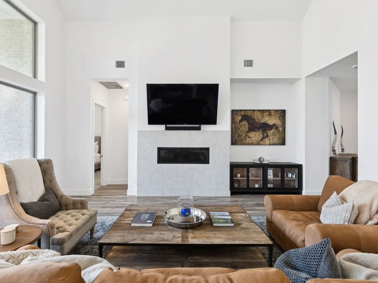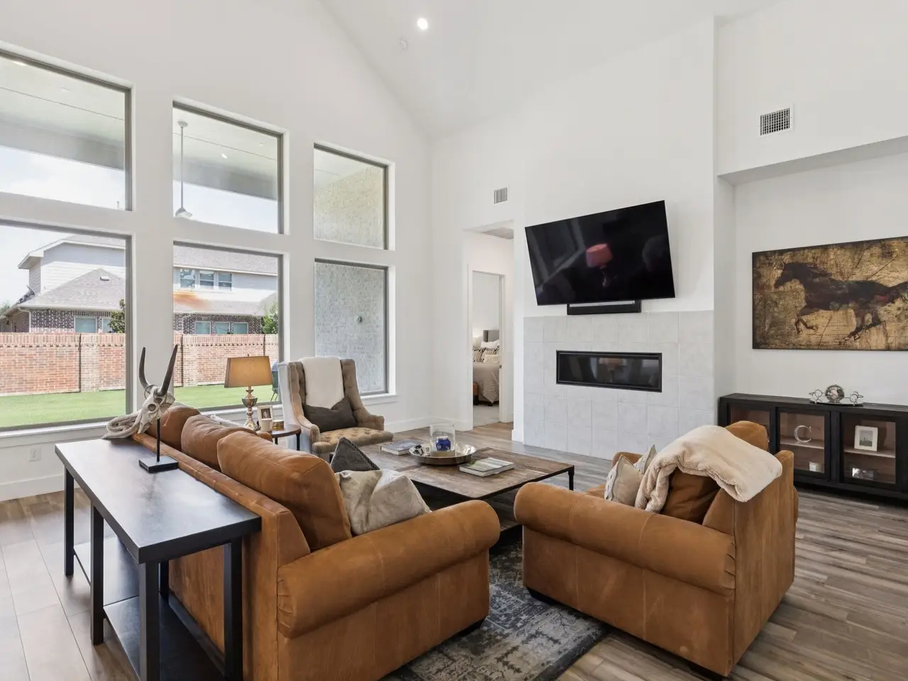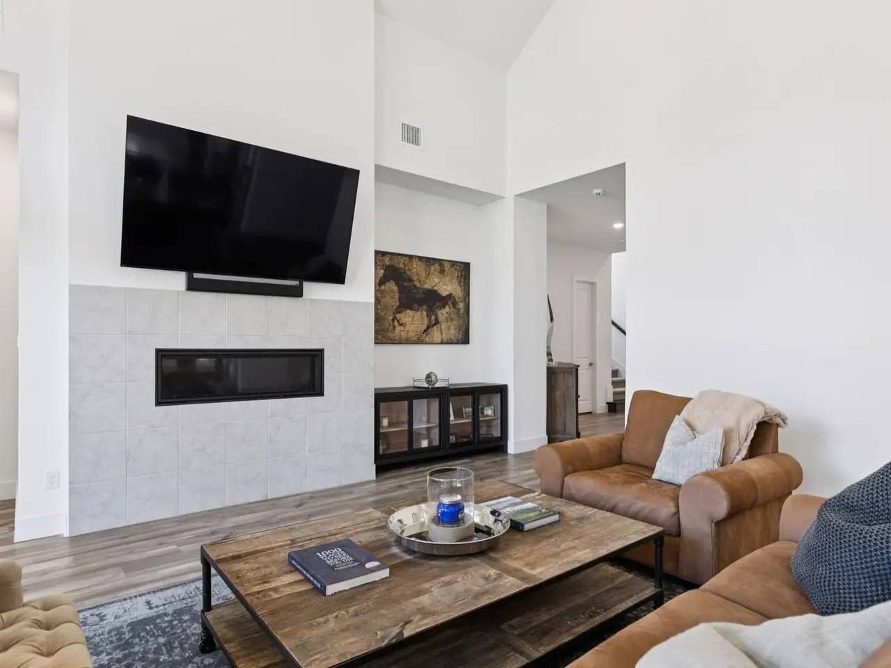 Stunning Like-New Southgate Home Madison IV Floor Plan! Located just steps from Newman Elementary and directly across from beautiful open green space, this exceptional Southgate home offers modern elegance, functionality, and space to grow. Featuring an open-concept layout, this home is filled with natural light thanks to a wall of floor-to-ceiling windows and a sleek sliding door. The modern Mezzo fireplace adds warmth and sophistication to the main living area. The gourmet kitchen is a chef’s dream - equipped with double ovens, a 6-burner gas cooktop, transom cabinets, a walk-in pantry, and even a built-in trash drawer. The space is pre-wired for surround sound in both the kitchen and patio, perfect for entertaining. Downstairs you'll find a media room, guest bedroom, and a spacious laundry room with built-in cabinets and sink. The primary suite boasts a luxurious bath with a huge walk-in shower, freestanding tub, and dual vanities. Upstairs offers two additional bedrooms - one with an ensuite bath - plus a versatile game room and ample attic storage. Three-car garage! Don't miss this opportunity to own a thoughtfully designed, move-in-ready home in a prime location!