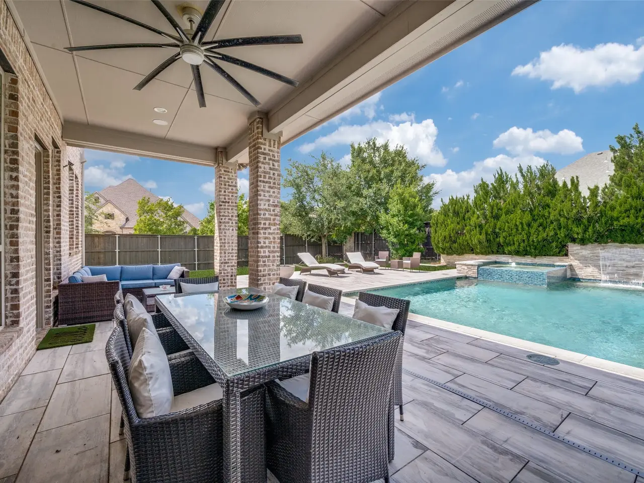 Impressive Home in highly sought-after Park Place Estates with Resort-Style Backyard Located on a beautifully landscaped corner lot, this stunning home showcases a backyard oasis with a sparkling pool, relaxing spa, and soothing water feature, all surrounded by lush greenery for ultimate privacy and tranquility. This exceptional setting perfectly complements a home that offers an ideal blend of luxury, comfort, and functionality. The open floorplan is filled with natural light from walls of windows that frame picturesque views of the backyard oasis. Inside, the chef's kitchen features a large island, double ovens, a butler's pantry, and seamlessly opens to the spacious family room with a walk-in wet bar, perfect for entertaining. Rich wood floors, tall ceilings, custom lighting throughout a handsome study, and a dramatic winding staircase add elegance throughout. The large primary suite is a private retreat with a spa-like bath offering dual vanities, a soaking tub and separate closets. A secondary bedroom downstairs provides flexible living, while upstairs you'll find a game room, media room, and three generously sized bedrooms with en-suite baths. With abundant storage, a thoughtfully designed layout, and an unbeatable location, this home truly has it all.
