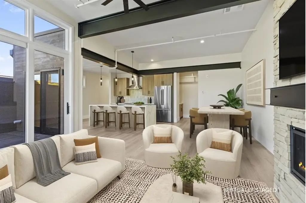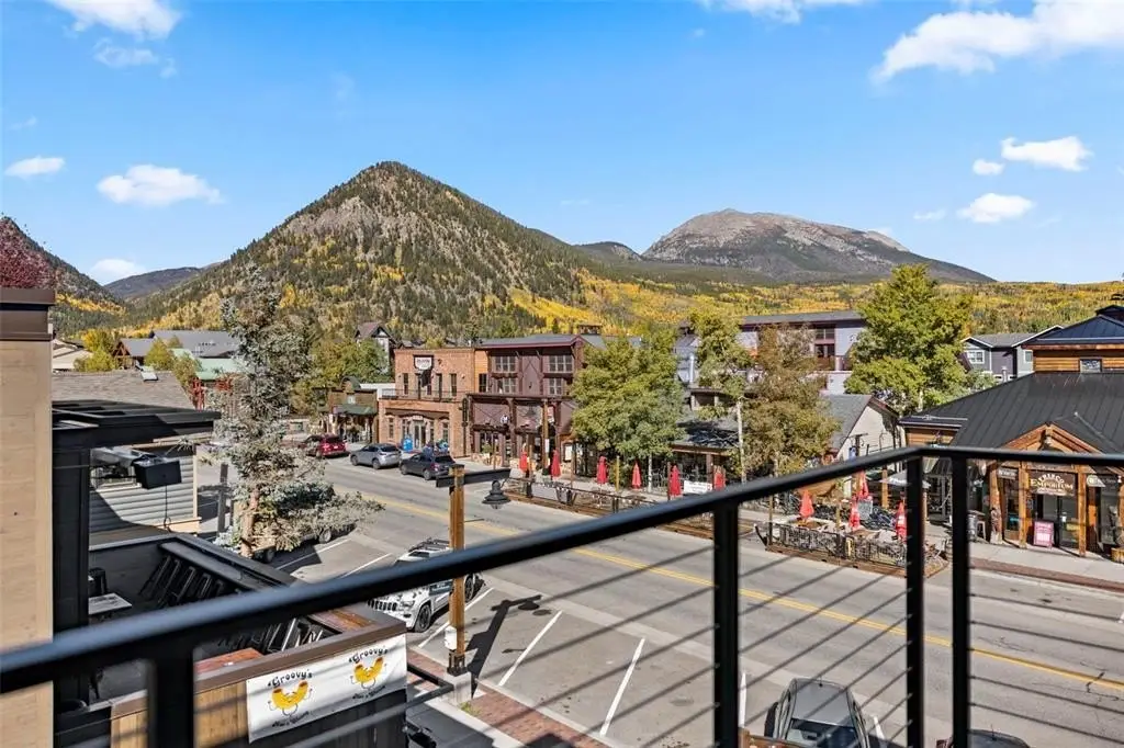 Experience urban mountain living with sweeping views from Buffalo Mountain to Peak 1. This corner one-bedroom features vaulted ceilings, exposed steel beams, radiant in-floor heating, and a gas fireplace. Upstairs, the kitchen offers Thermador appliances, an induction range, and a large island, with a powder room off the great room. Enjoy the private deck and parking that includes a heated garage plus a covered tandem space. This Main Street condo is centrally located in Prospectors Marketplace. The marketplace combines local eateries including Crepes A La Carte, Back to Texas BBQ, Fresh Press’d, Kanto x Wasabi, Chucky’s Burgers, Chimayo Grill, Lazo Empanadas and Groovy’s Mac n’ Cheese with McCoy’s Bar on the lower-level location and another bar on the upper-level complete with arcade games and a rooftop patio. The marketplace is tastefully designed and inspired by the rich mining history of Summit County. Just steps away, enjoy all that Main Street has to offer including shops, additional dining, casual bars and bus stops, with easy access to Copper, Vail, and the rest of Summit County.