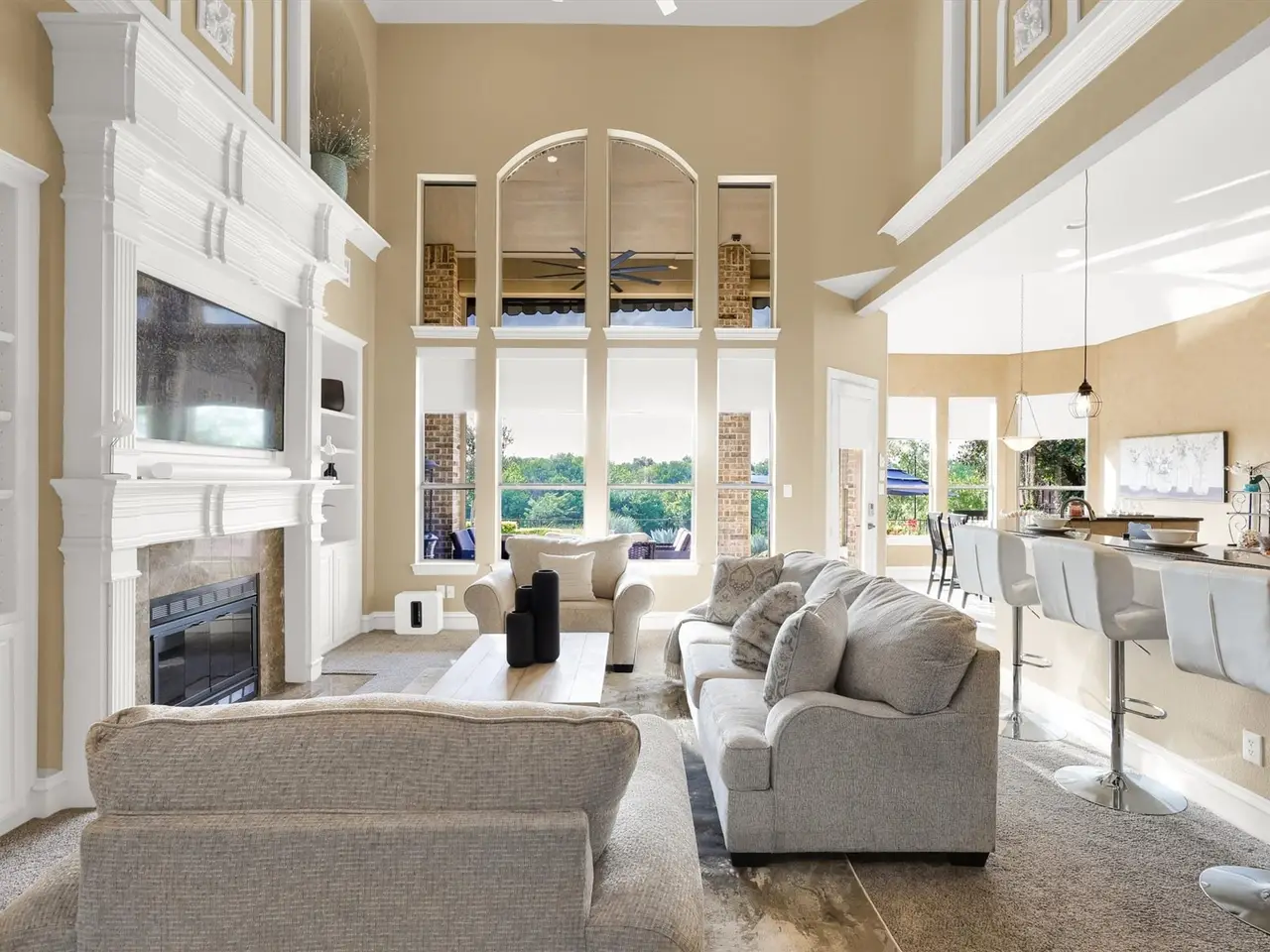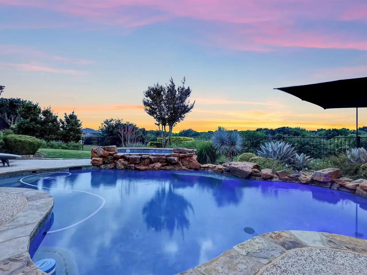 Welcome to luxury living in the prestigious 5-star neighborhood of The Trails of West Frisco! This stunning 5BR, 4BA masterpiece is perfectly situated on a premier golf course lot, offering breathtaking sunset views that will leave you in awe. Spanning over 5000 square feet, this meticulously designed home boasts an open-concept layout. The gourmet chefs kitchen features top-of-the-line stainless steel appliances, a spacious island, and custom cabinetry, seamlessly flowing into the expansive living area with a cozy fireplace. The primary suite is a true retreat, complete with a spa-inspired ensuite, dual vanities, and a walk-in closet. Each additional bedroom is generously sized, with ample natural light and access to beautifully appointed bathrooms. The home has automatic roller shades throughout, a large game room with a bar and sink, and a theater for those stay-at-home movie nights! Step outside to your private oasis, where a sparkling pool awaits, perfect for entertaining or relaxing while overlooking the lush fairways of the championship golf course. With a retractable awning, weather will not prevent the good times by the pool! The meticulously landscaped backyard offers ample space for outdoor dining and soaking in those unforgettable sunsets. Home features 2 newer hot water heaters and HVAC systems. The roof is less than 3 years old. Three-car garage with high-end, insulated garage doors and epoxy flooring. Located in a coveted community with sidewalks and beautiful trails, top-rated schools, and proximity to fine dining and shopping, this home is the epitome of elegance and comfort. Don't miss the opportunity to own this extraordinary property in one of the most sought-after neighborhoods!
