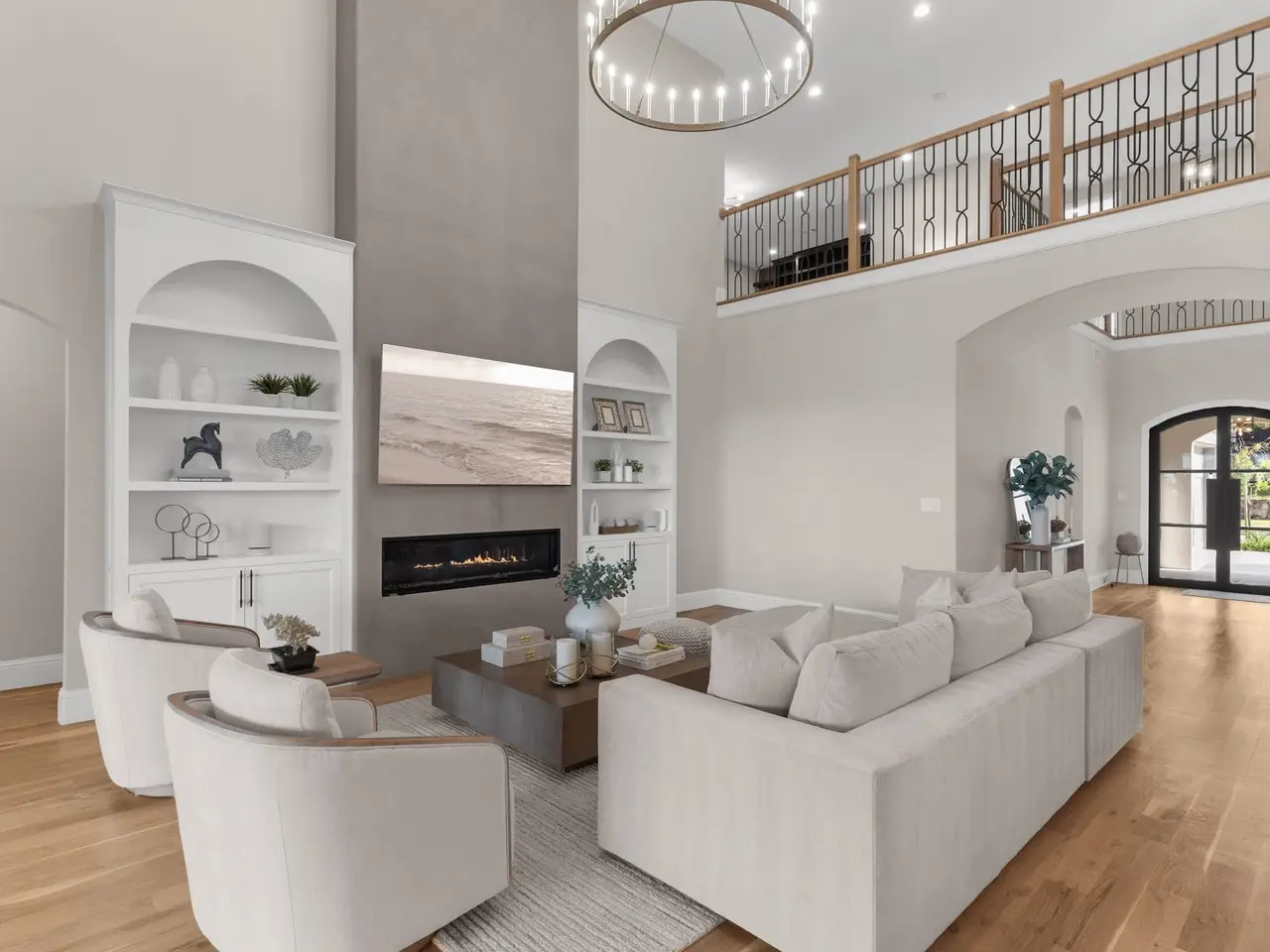 Exceptional luxury residence in the exclusive, gated community of Wyndsor Pointe! This beautifully appointed home offers a sophisticated living experience featuring 5 bedrooms, each with its own en-suite bath, plus 2 additional half baths designed for convenience and entertaining. The gourmet kitchen impresses with Wolf appliances, a built-in refrigerator, exquisite custom cabinetry, and expansive waterfall quartz island complete with integrated wireless charger. The primary suite features a luxurious spa-like bath, with a stand alone tub, separate vanities, spacious walk-in shower, and dual walk-in closets. Private office, half bath, expansive laundry room, and additional bedroom suite complete the downstairs. The second level offers 3 additional bedroom suites, along with a media room, half bath, and a spacious game room with a full wet bar, providing versatile spaces for work and leisure. Additional upgraded features include voice-controlled lighting, climate, and security, motorized shades, a Culligan water filtration system, and a whole-home water softener. Outdoors, enjoy year-round living on the oversized covered patio equipped with motorized exterior screens, outdoor kitchen, and a cozy outdoor fireplace - creating an ideal setting for gatherings, grilling, or relaxing in privacy. The oversized garage with epoxy floors ensures ample storage and functionality. Premier Frisco location, minutes from The Star, Legacy West, upscale shopping, dining, and convenient tollway access.