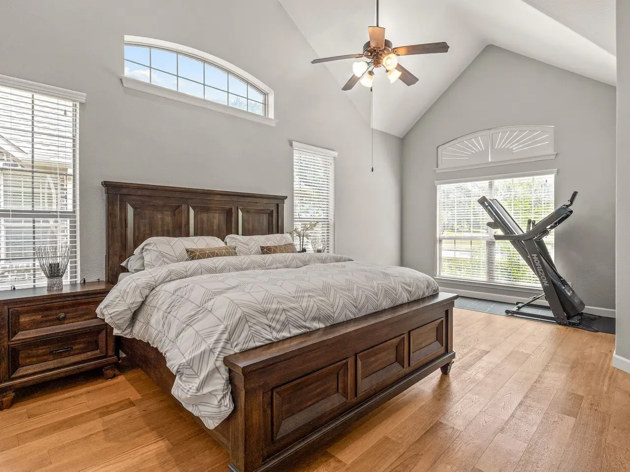 MOTIVATED SELLERS - Welcome to this beautifully upgraded home, meticulously maintained by its single owner. Boasting an open layout, this residence features a completely remodeled kitchen and family room area, perfect for entertaining and everyday living. The light wood flooring adds warmth and elegance, while abundant natural light pours in through the expansive windows, highlighting the home's stunning features. With five spacious bedrooms and four and a half bathrooms, this home offers ample space for family and friends. All bathrooms have been thoughtfully upgraded, ensuring comfort and luxury. The downstairs level is designed for relaxation and productivity, featuring a convenient office, a beautifully appointed primary bedroom, and a secondary bedroom. The upstairs level is a haven for recreation and leisure, with three additional bedrooms, two bathrooms, a lively game room, and a large media room perfect for movie nights or family gatherings. This home's thoughtful design, luxurious upgrades, and abundance of natural light make it an ideal retreat for those seeking a comfortable and stylish living space. This home is a rare find, offering the perfect blend of style, comfort, and functionality, schedule your appointment today.