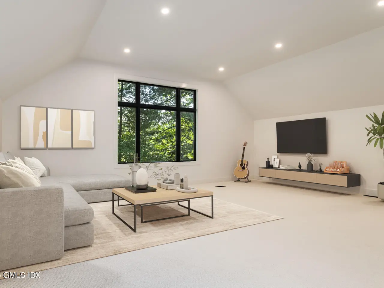 - Cathedral ceilings with floor-to-ceiling fireplace