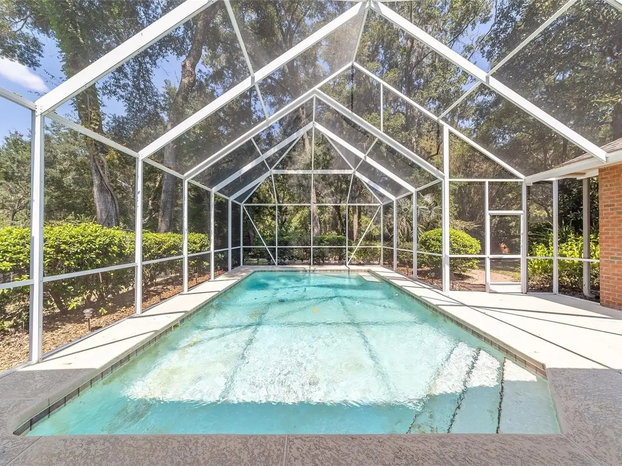 One or more photo(s) has been virtually staged. Welcome to this stunning EG Gonzalez all brick custom built home... 4 Bedroom, 3.5 Bathroom with Study/Den 3-way split floorplan, in the highly sought-after Millhopper Forest Gated Community. This 4 bedroom, 3.5 bathroom home is Florida living at its finest with low maintenance brick exterior, flexible living spaces and a quiet, relaxing setting. Located off scenic Millhopper Road. Millhopper Forest is a gated community near many parks, trails, private tennis and very close to shopping and with highly rated school zones. Entertain your guests in your huge screen enclosed lanai area with a 16 x 32 foot gorgeous pool and summer kitchen. This home boasts extensive wood moldings throughout, custom built-ins in family room and study/office, crown molding in most rooms and chair rail/picture molding in dining area. The kitchen area is a dream come true with all wood cabinets, granite countertops and breakfast area, all with a view of your pool! The family room has custom built-ins, a gas fireplace and a vaulted ceiling. Enjoy your spacious master suite with views of the pool area and soak in the jetted tub in the large master bath. This is a Florida lifestyle home that you and your family will love and enjoy. Don’t miss your chance to own this incredible home—schedule a private tour today!!!