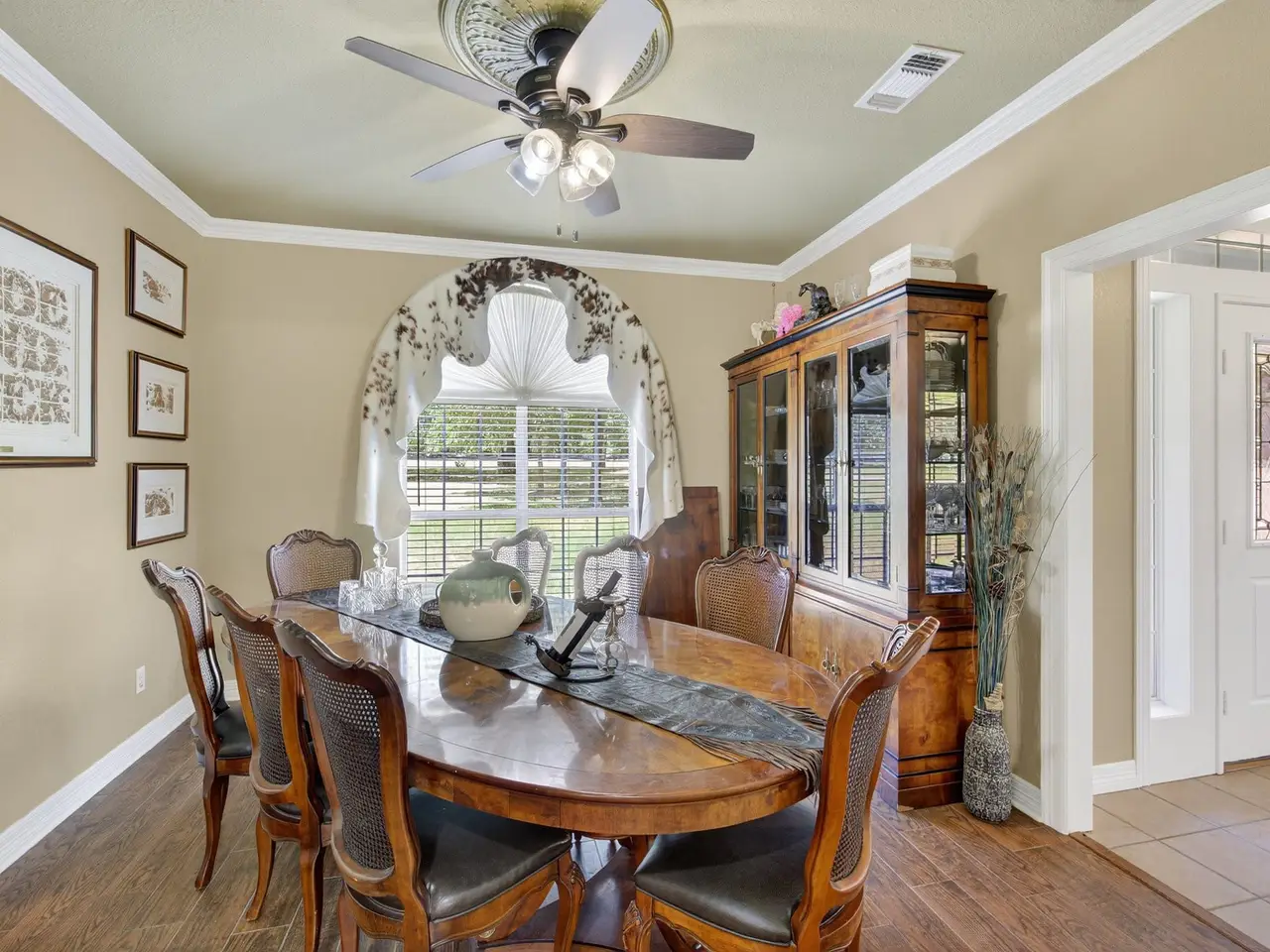 Peaceful setting abounds at this great property that is on a quiet cul-de-sac. Large Oak trees welcome you as you drive up the driveway and provide great shade around the home! Step inside and you will be impressed with the attention to detail throughout this home. Large family room with brick fireplace and a wall of windows that overlook your back patio and your pasture! Large open kitchen with wonderful appliances that any cook will love! Formal dining room for family gatherings! Two bedrooms and a bath are separate from the Primary Suite. Primary suite has large walk in closet, windows overlooking pasture and a bath that has recently been updated with paint, tile and a large dual headed shower!! Outside, there is a workshop with roll-up doors, RV or Trailer storage with plugs, full bath, hook up for washer and dryer and loads of storage. Horse barn with room for 3 stalls (12 x 16), tack room, wash rack, hay loft and overhang for implements. 150 x 250 arena pad with premium sand! In good years - 125-150 large rolls of Coastal Hay has been baled off pastures! 2 ponds that are spring fed (per previous owners). All this great property needs is YOU!!! Callisburg ISD!!!