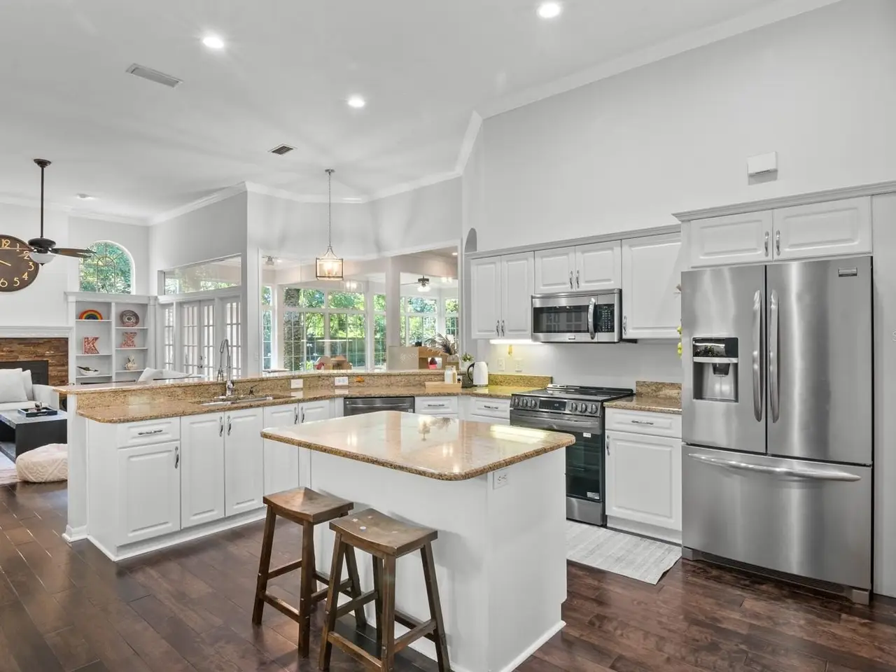 Brand New Roof! Impeccably Maintained Barry Bullard Home in SW Gainesville – Luxury, Comfort, and Location! Welcome to this stunning Barry Bullard residence, where timeless elegance meets modern convenience in one of Southwest Gainesville’s most sought-after neighborhoods. Tucked within a peaceful cul-de-sac just moments from the shops and restaurants of Haile Village Center, this beautifully maintained home offers the ease of true move-in readiness—with the fresh, pristine feel of new construction. Step inside to discover an expansive open layout filled with natural light and upscale finishes. The gourmet kitchen is a standout, boasting granite countertops, custom cabinetry, a generous island, new oven, dishwasher, and not one but two pantries—designed with both the casual cook and serious chef in mind. The kitchen flows seamlessly into the family room, dining area, and formal living room, creating an ideal space for entertaining or everyday living. Custom built-ins frame the living room’s elegant stacked-stone fireplace, creating a cozy yet refined focal point. Retreat to the luxurious owner’s suite, complete with a spa-inspired ensuite bath featuring dual vanities, a soaking tub, and a spacious walk-in shower. All bathrooms throughout the home showcase premium cabinetry, stone countertops, and travertine tile for a polished, cohesive aesthetic. A true highlight of this home is the fully enclosed, climate-controlled lanai—an incredibly versatile space that can serve as a home office, media lounge, playroom, or serene sunroom. With wraparound windows, it offers year-round enjoyment of the beautiful backyard views. Outside, enjoy al fresco dining or evening drinks on the paver patio, surrounded by a fully fenced, flat backyard—perfect for pets, play, or even future pool plans. Enjoy access to community amenities, including the nearby Hawkstone Club pool, and take advantage of nearby biking and walking trails. With the Haile Village Farmers Market and dining just a short stroll away, this home offers not only luxury living, but a lifestyle to match. New Washer, Dryer, and Oven! Don’t miss your opportunity to own this exceptional property—schedule your private tour today!